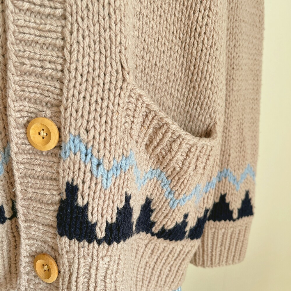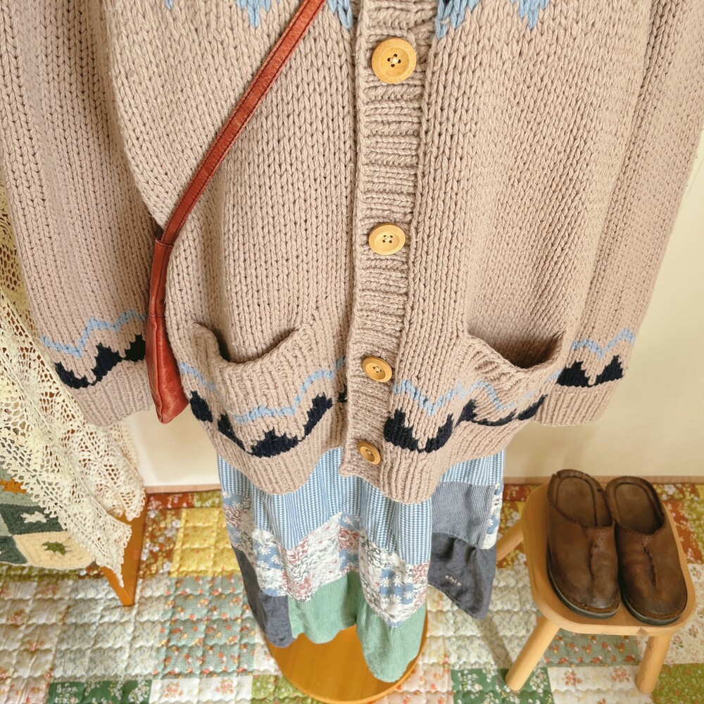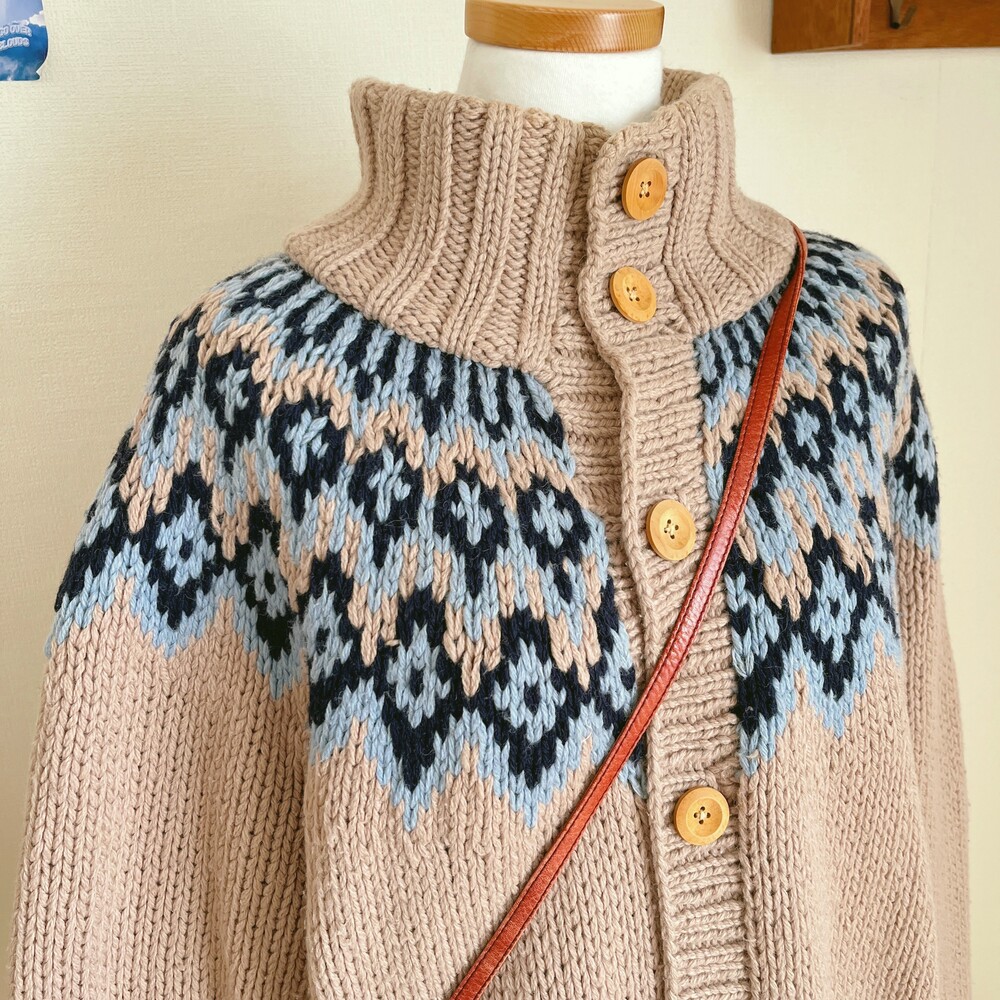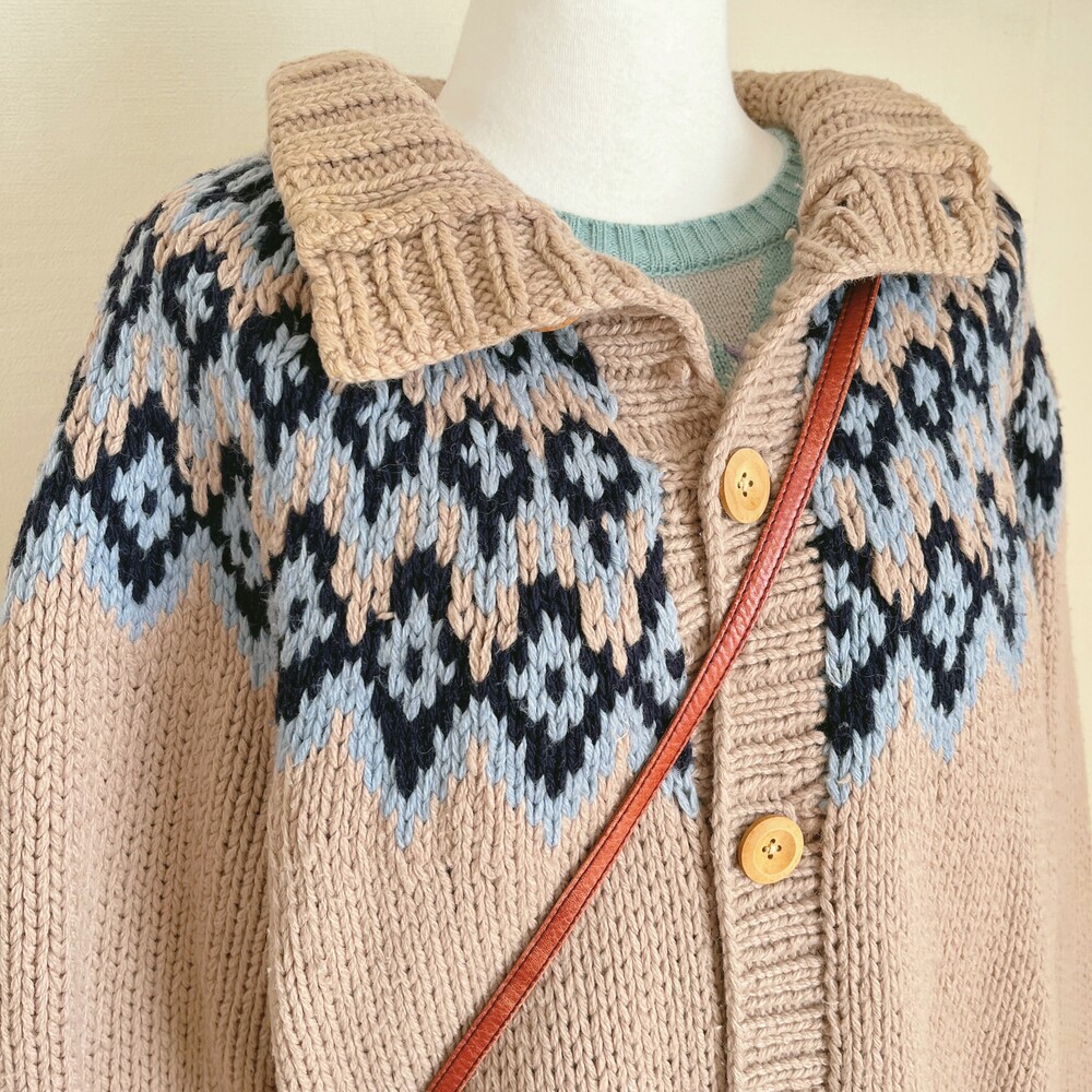 베이지 색감의 노르딕 카라 가디건이에요