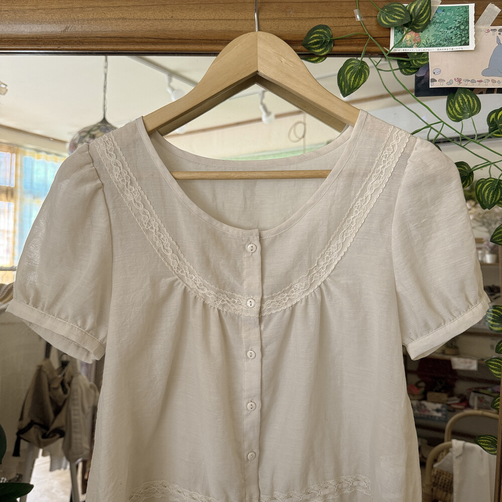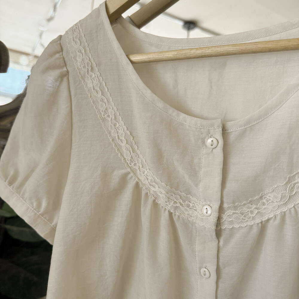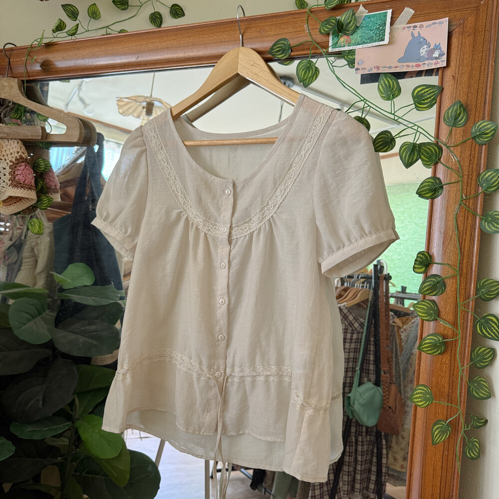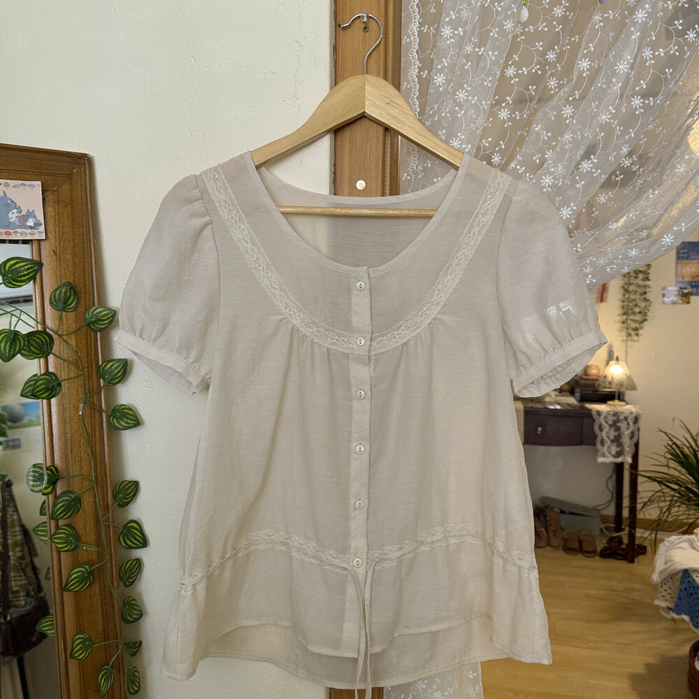 아이보리 색감의 버튼업 블라우스예요