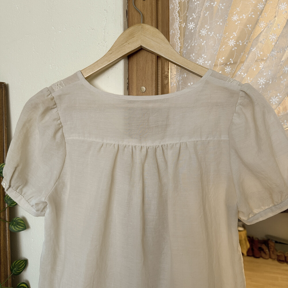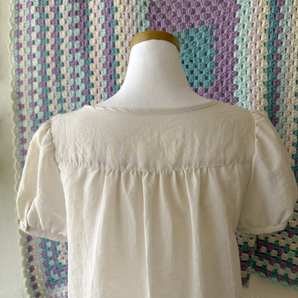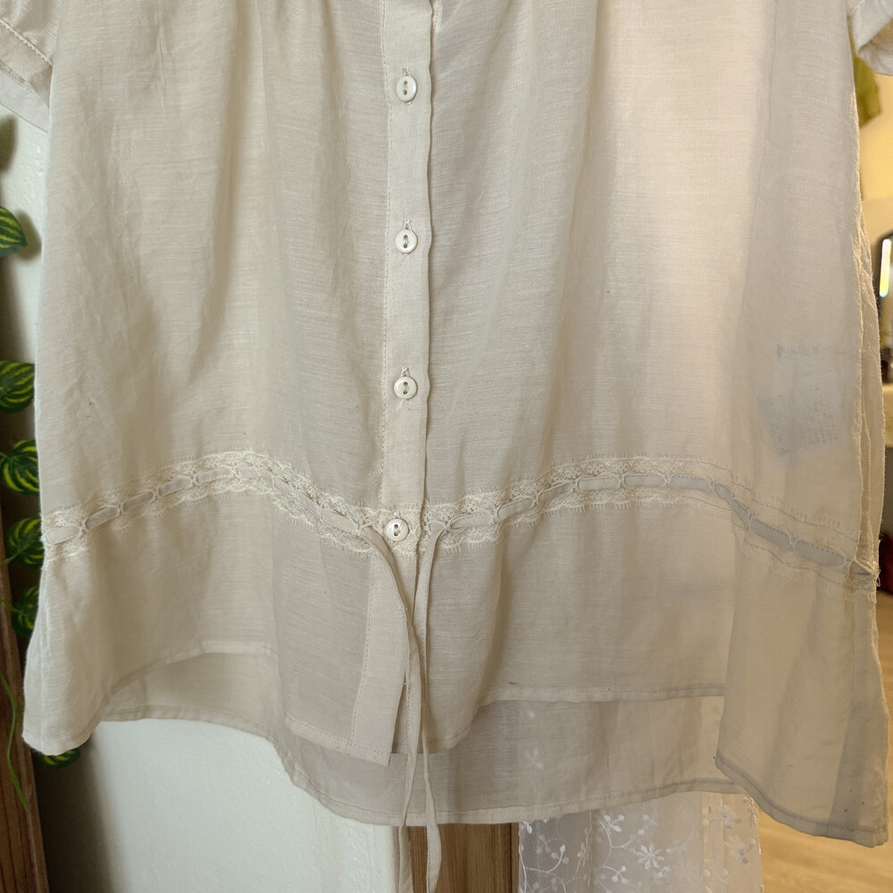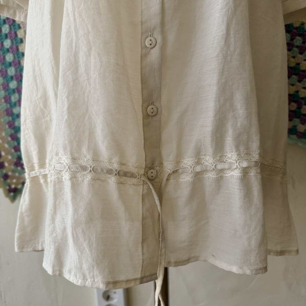 아이보리 색감의 버튼업 블라우스예요