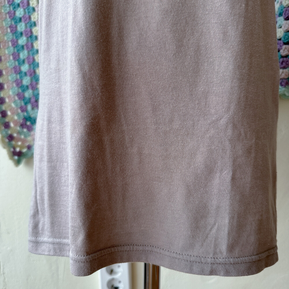 뮤트한 팥죽 색감의 슬리브리스 티셔츠예요