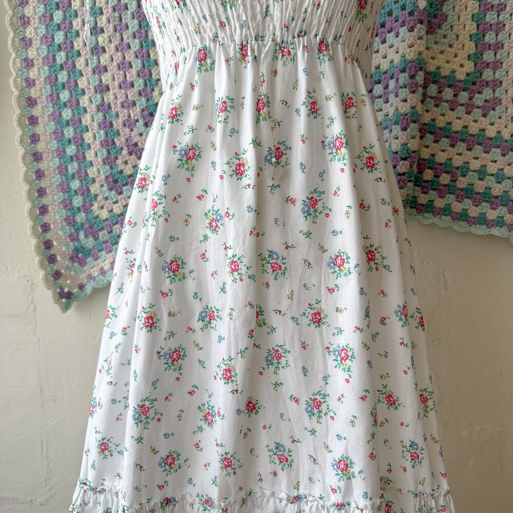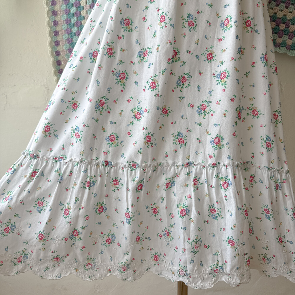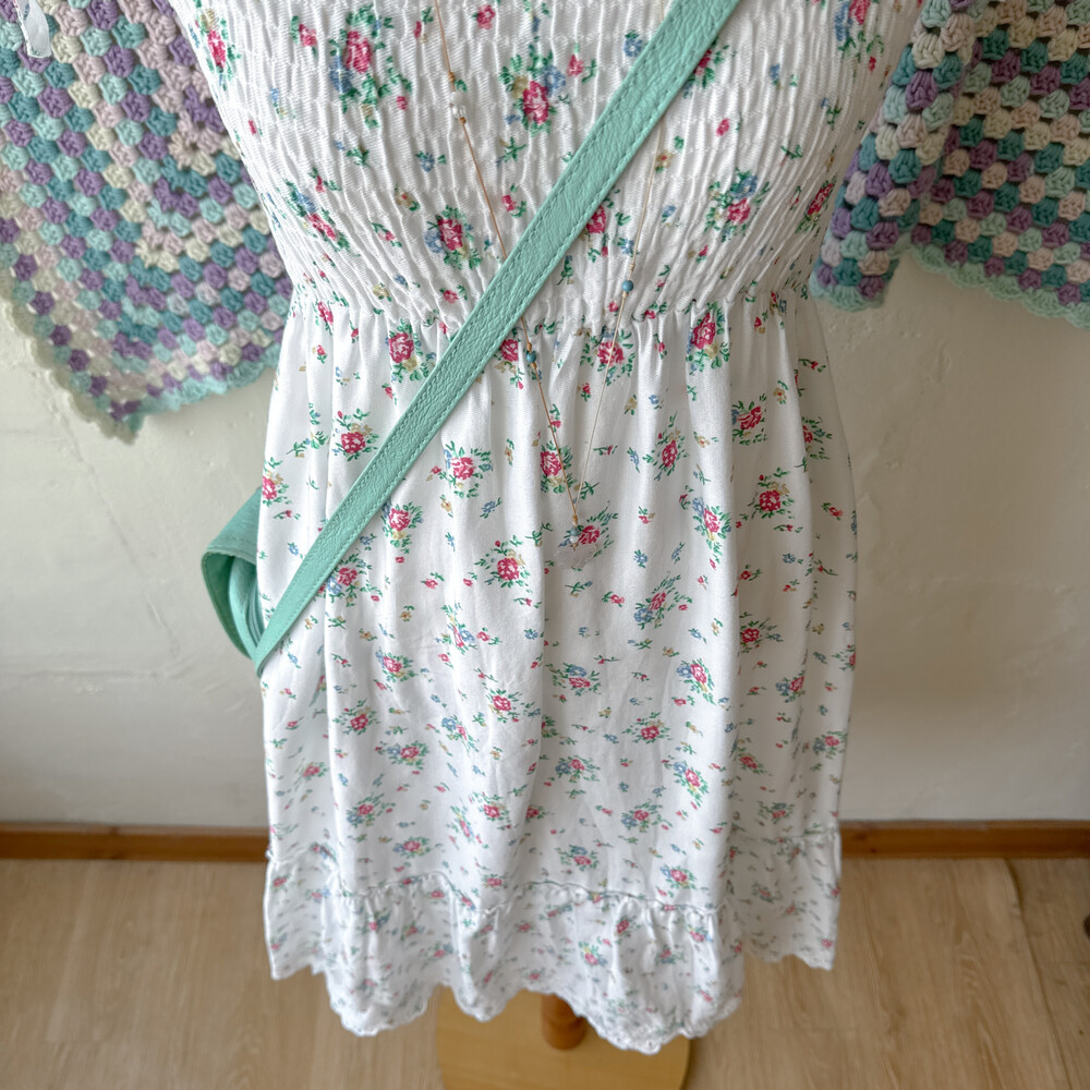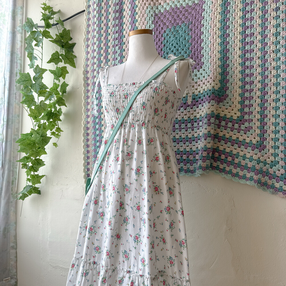 블루, 핑크 등 꽃무늬 패턴의 화이트 끈원피스예요