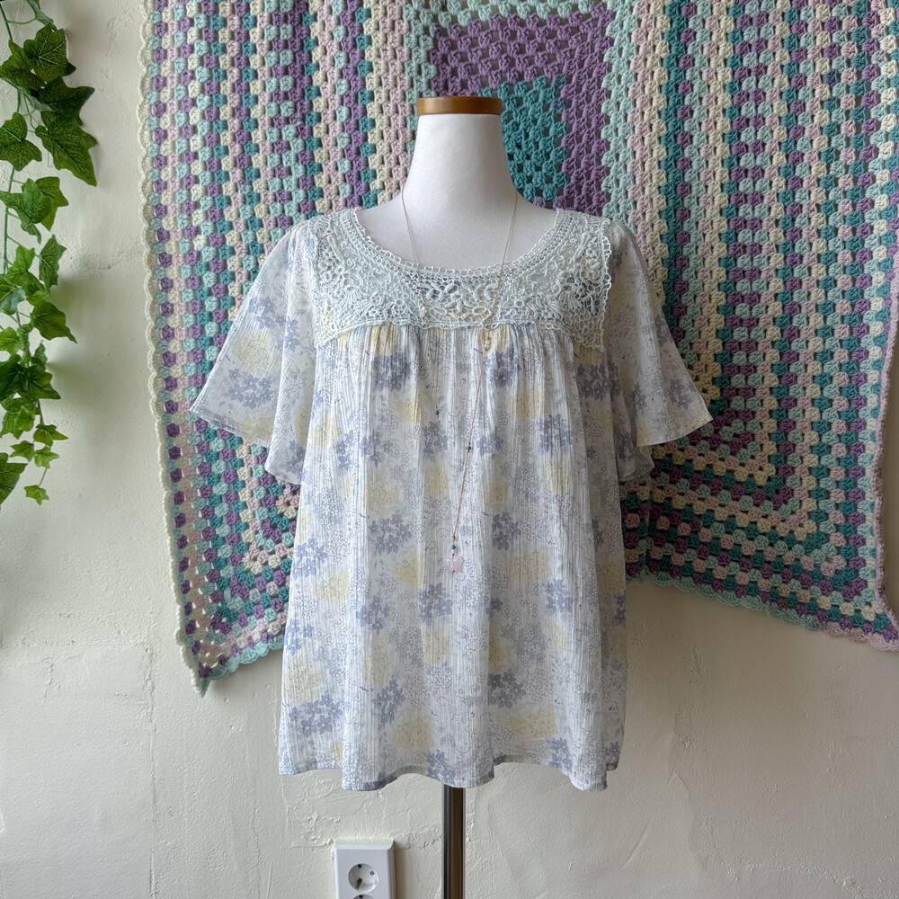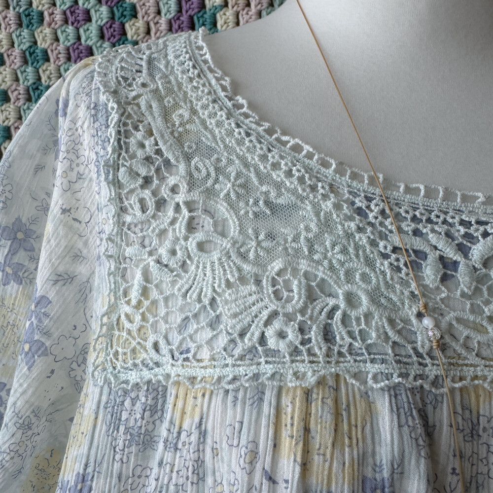 청보라 꽃무늬 패턴의 코튼 블라우스예요