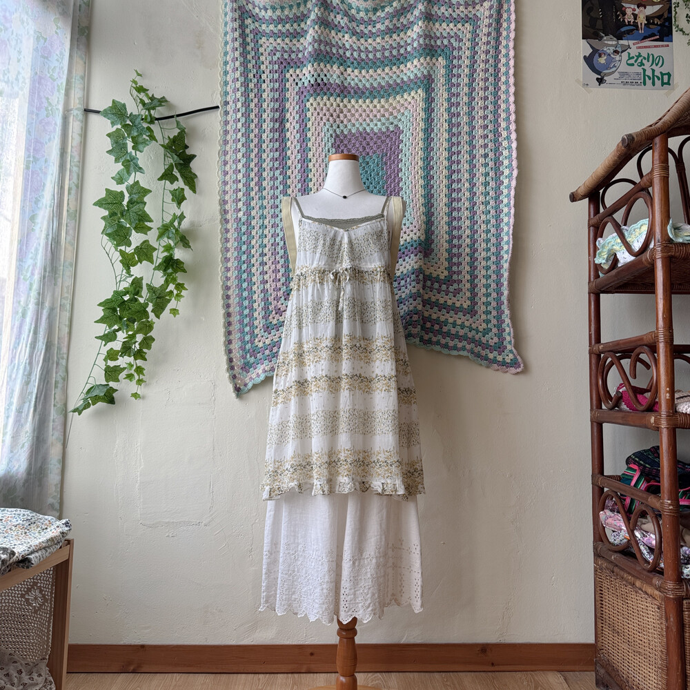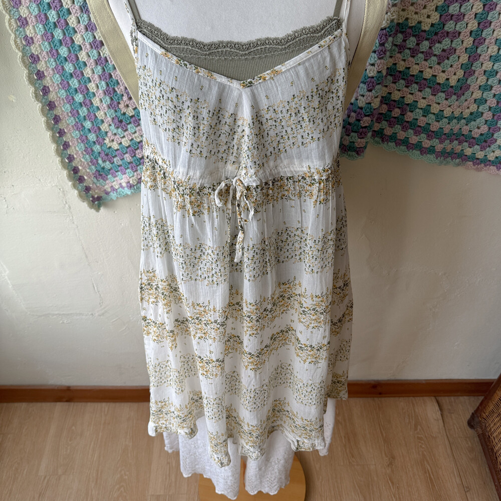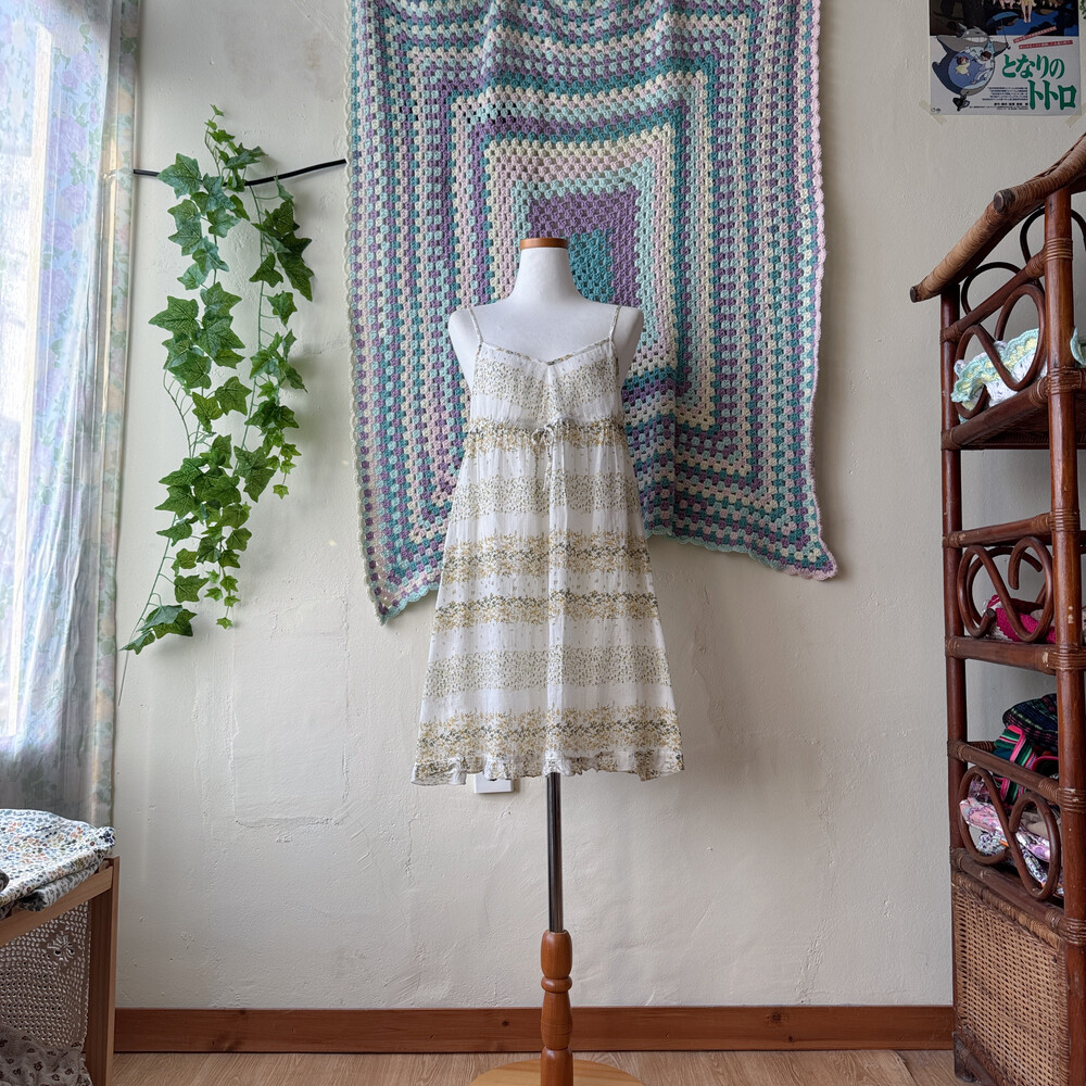 그리너리한 잔꽃 코튼 끈원피스예요