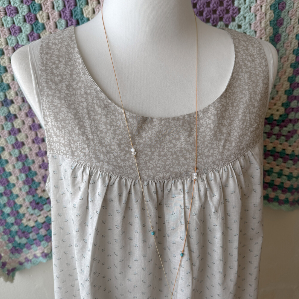 연그레이 바탕에 아쿠아블루 잔꽃이 가득 들어가 있고