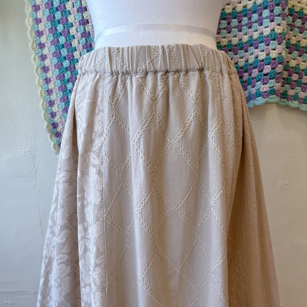 전체적으로 자수가 들어간 패치들이 조합되어 있어요