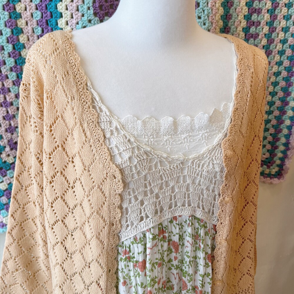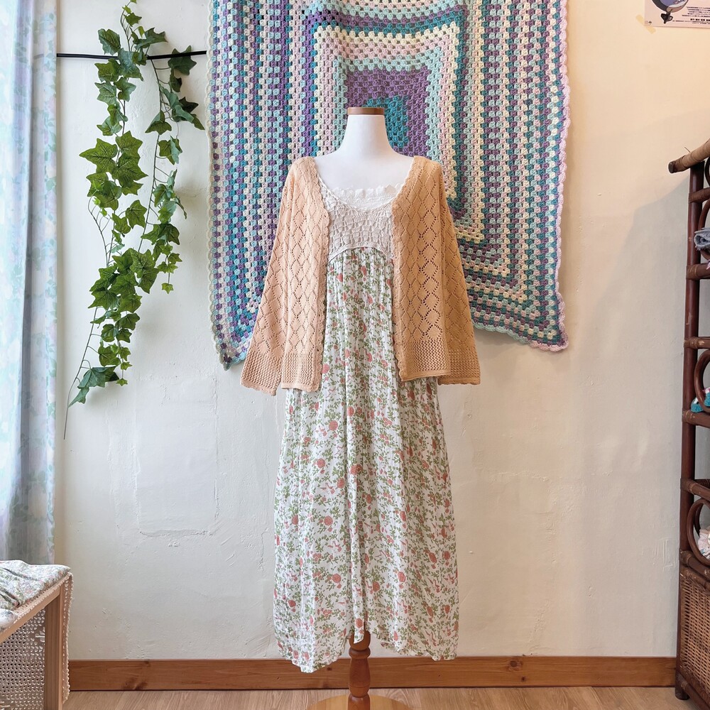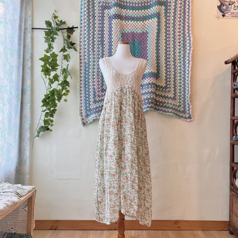 가슴 쪽 크로셰 디자인의 코튼 롱원피스예요