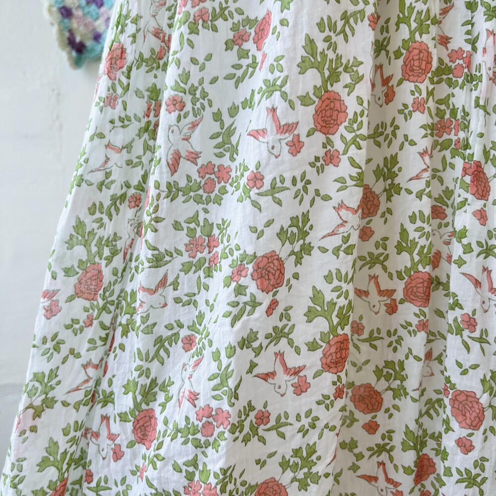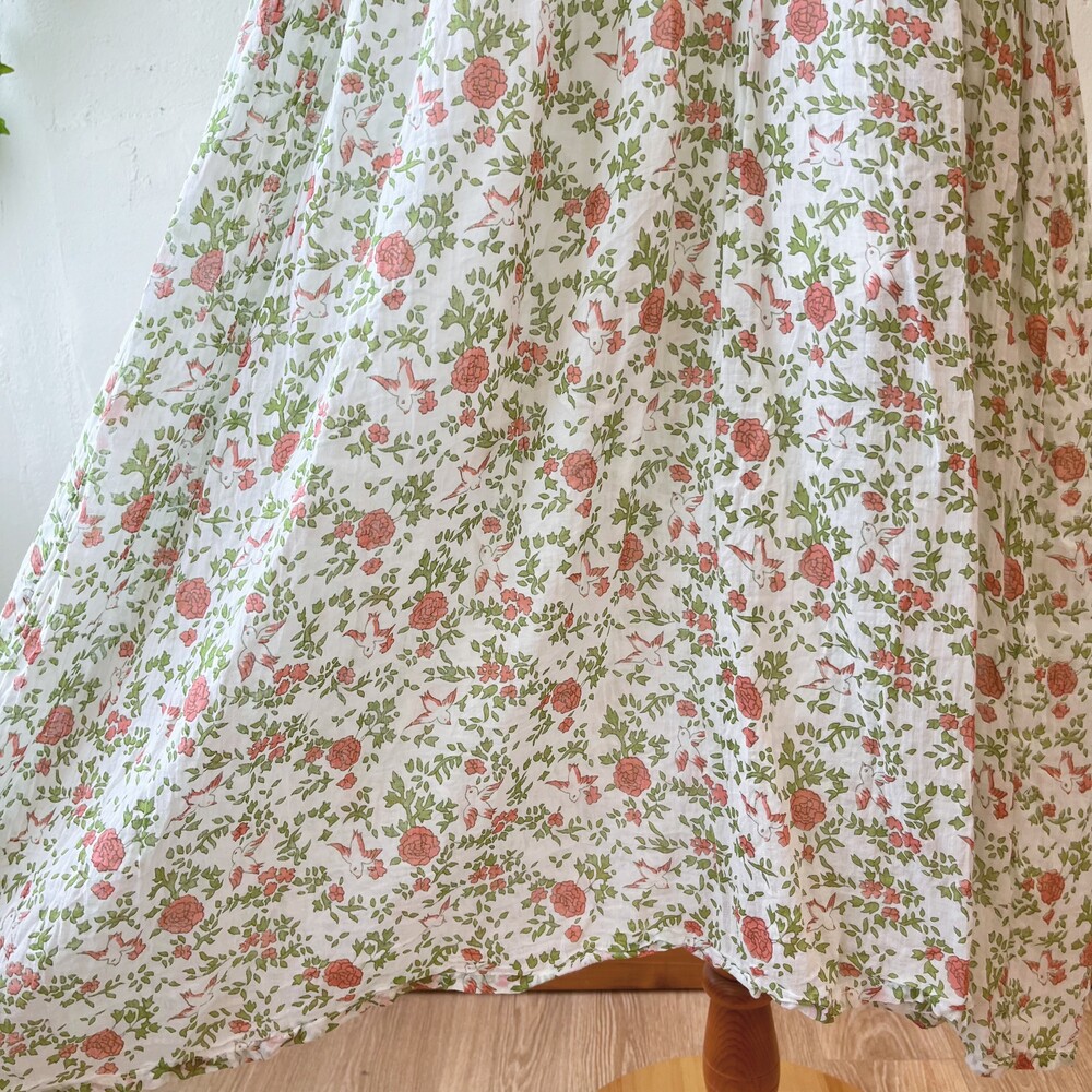 그리너리한 색감에 새와 꽃 무늬가 가득한 원피스랍니다