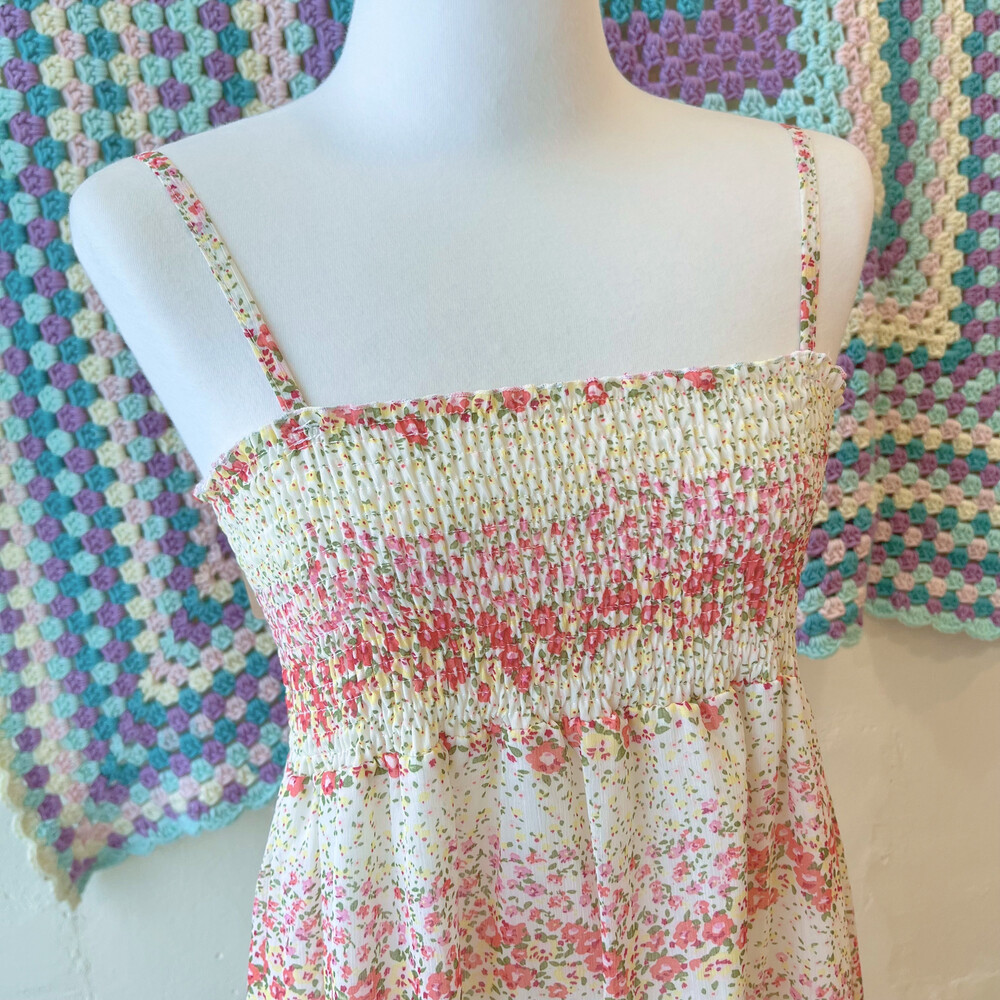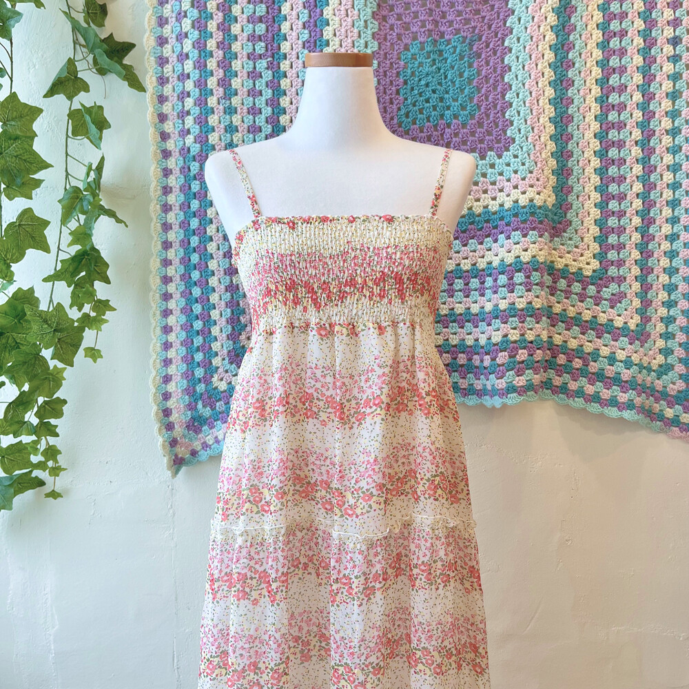 핑크 색감의 꽃무늬 쉬폰 끈원피스예요