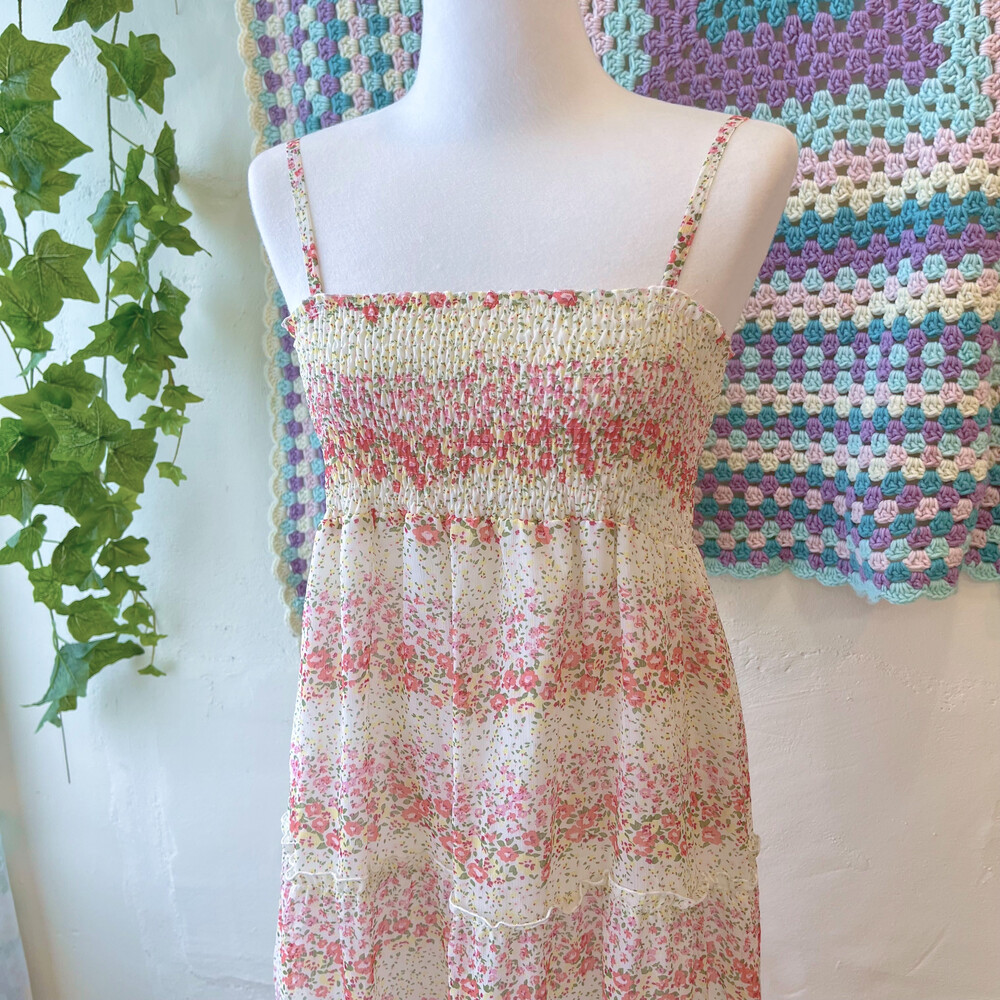 pink flower frill point chiffon ops