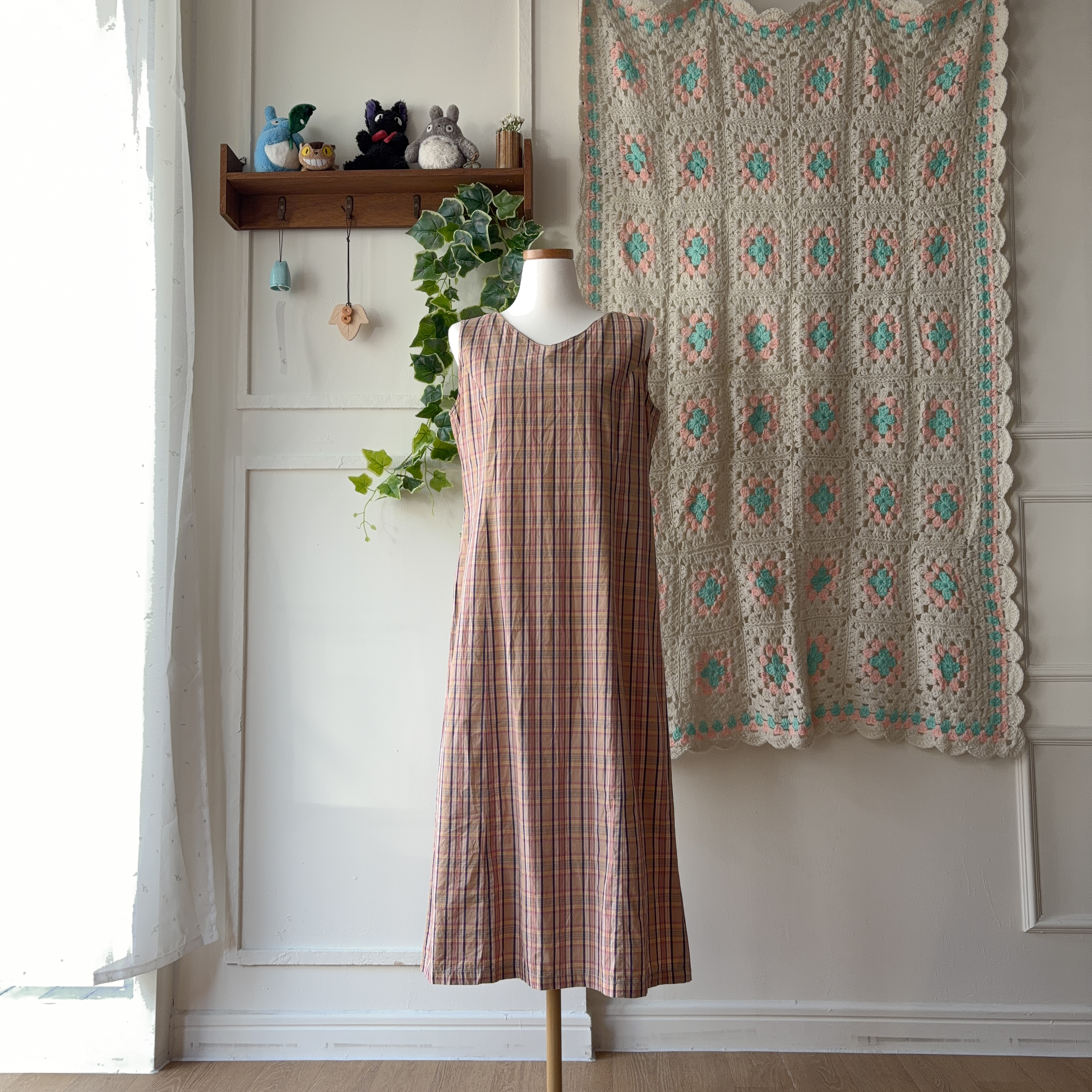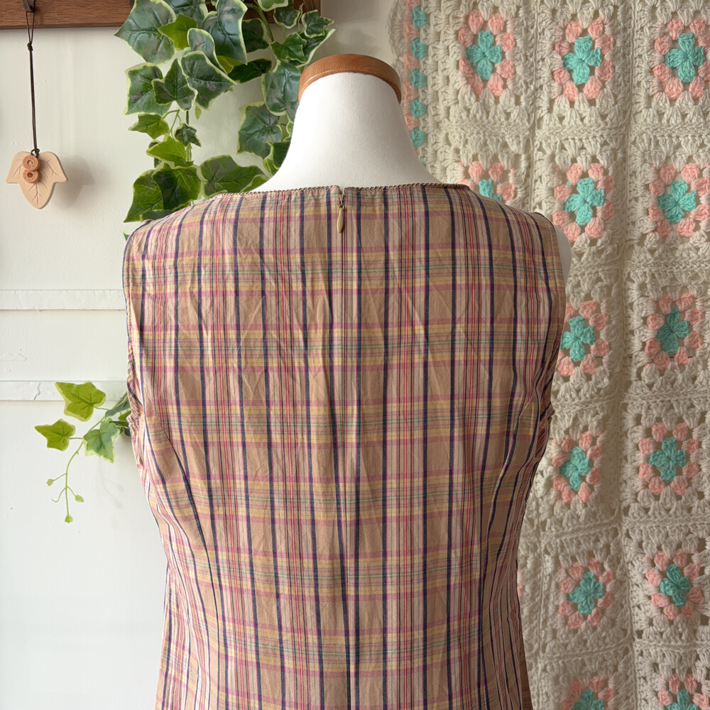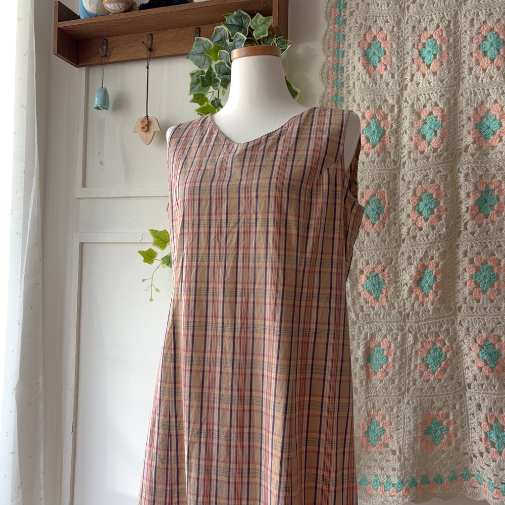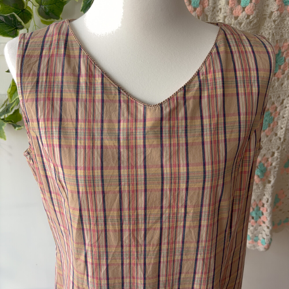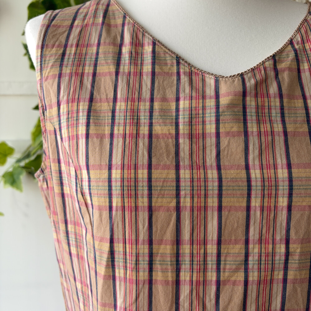 pink&navy check v-neck sleeveless ops