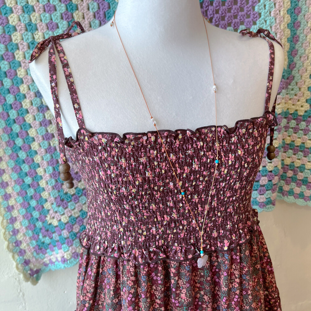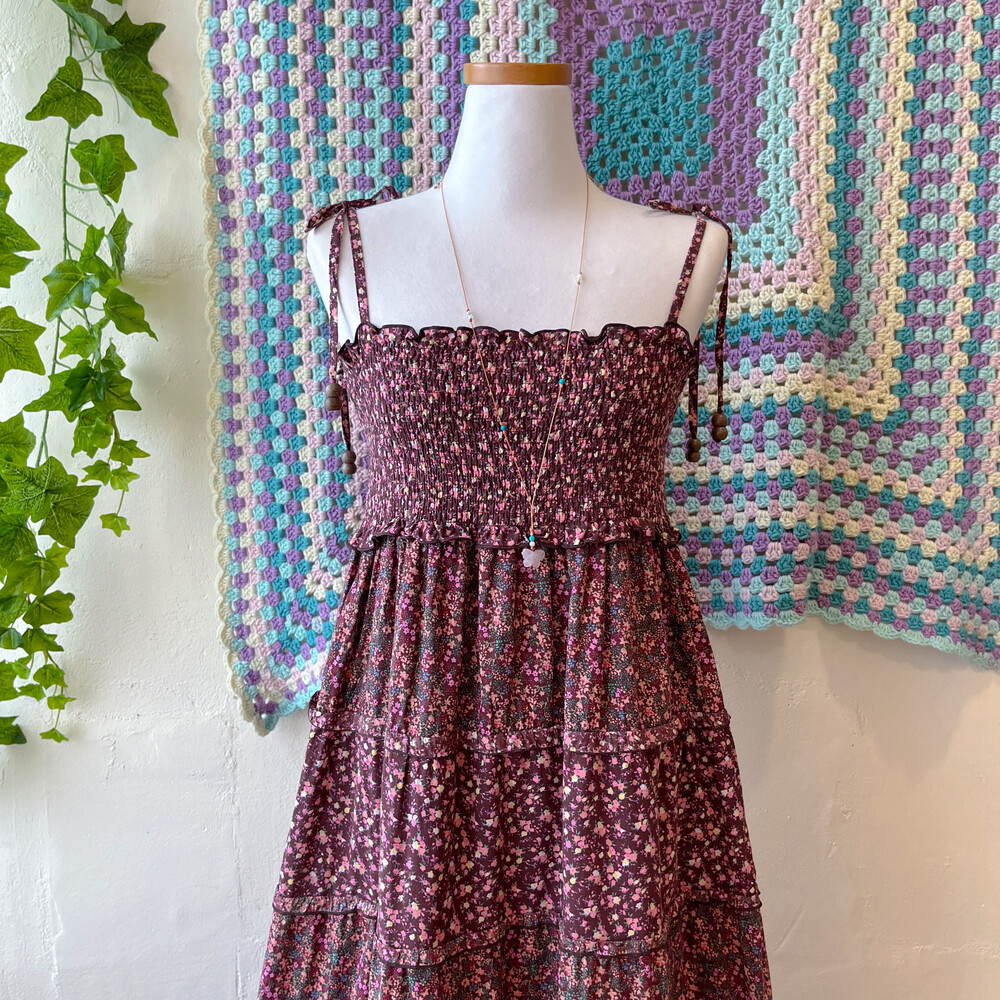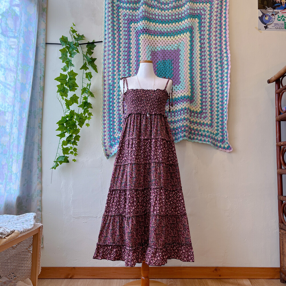 고동색 베이스의 패치워크 코튼 끈원피스예요