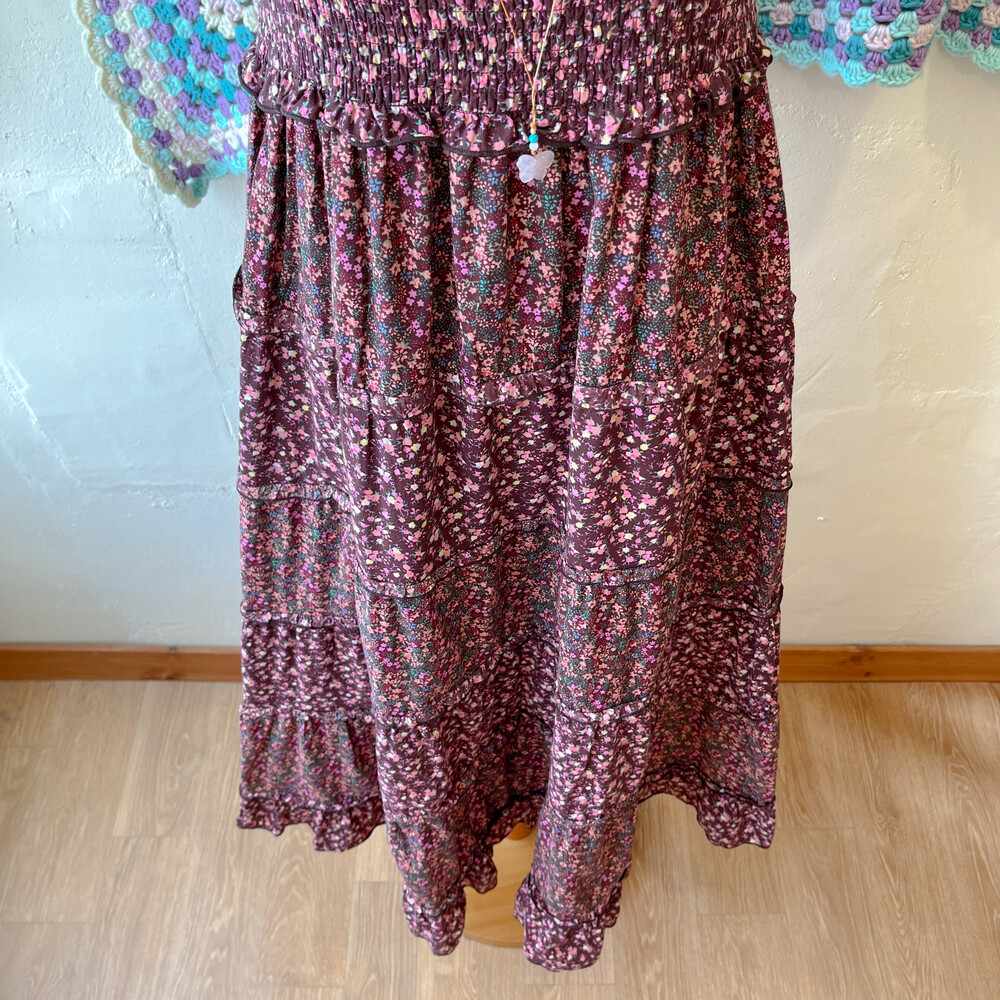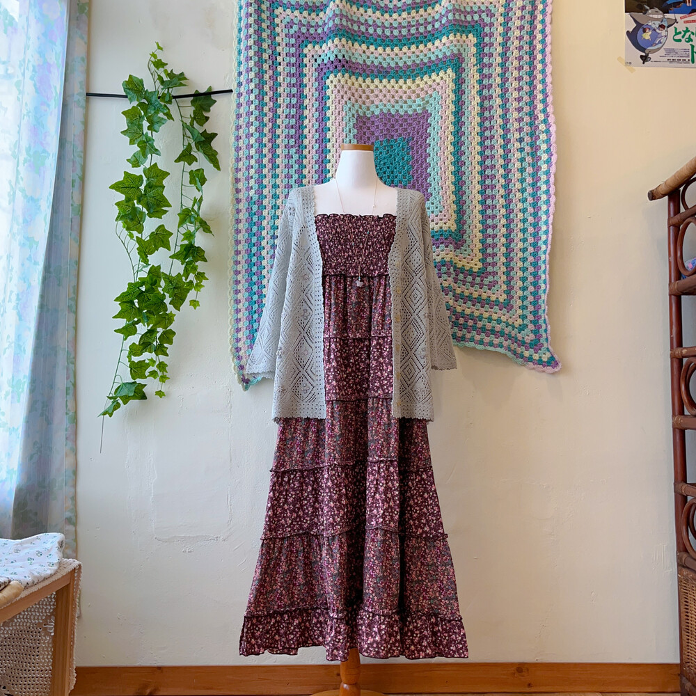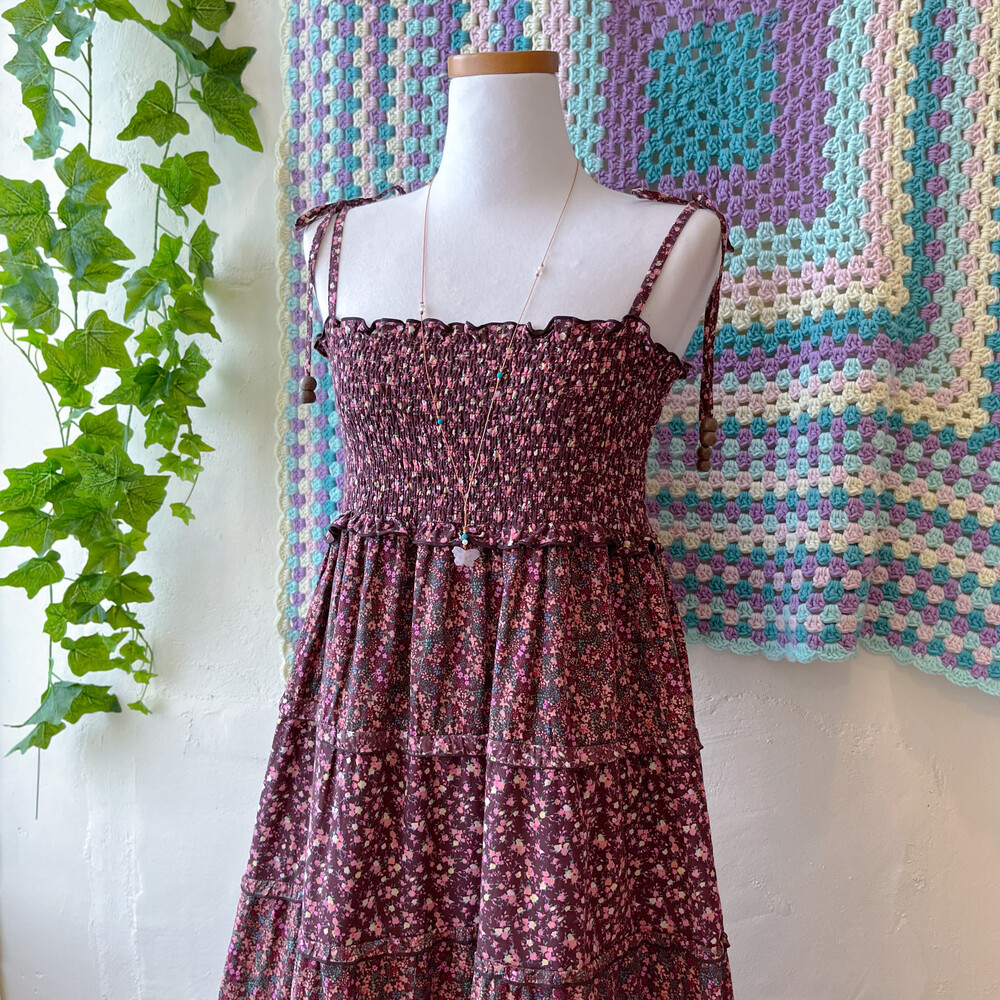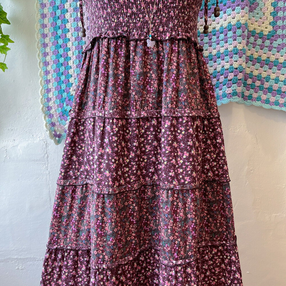 고동색 베이스의 패치워크 코튼 끈원피스예요