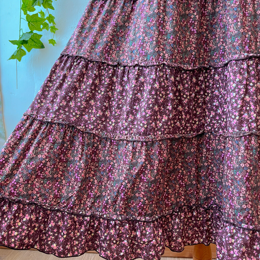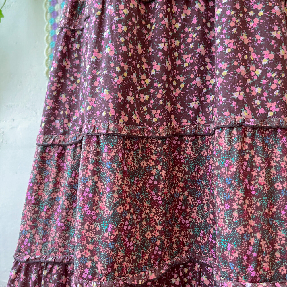 고동색 바탕에 분홍, 살구색 잔꽃들이 가득한 패치로 조합되어 있어요