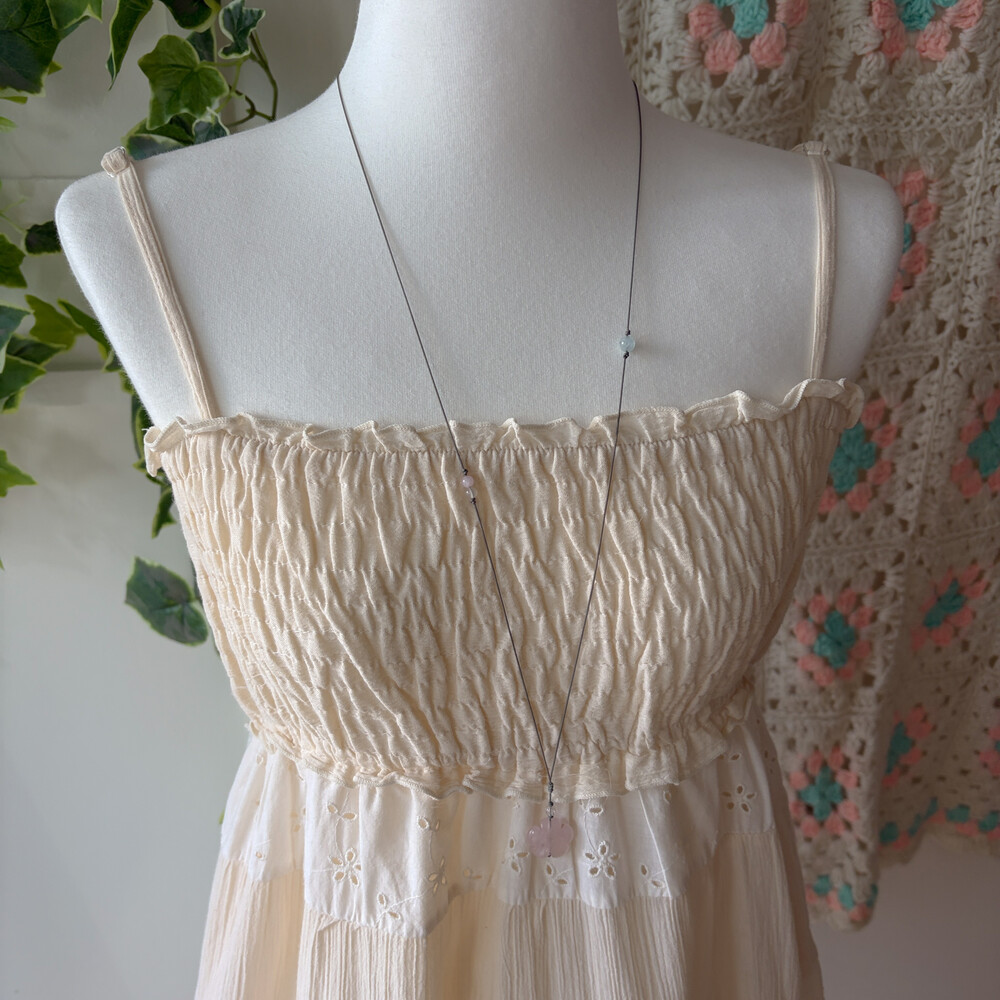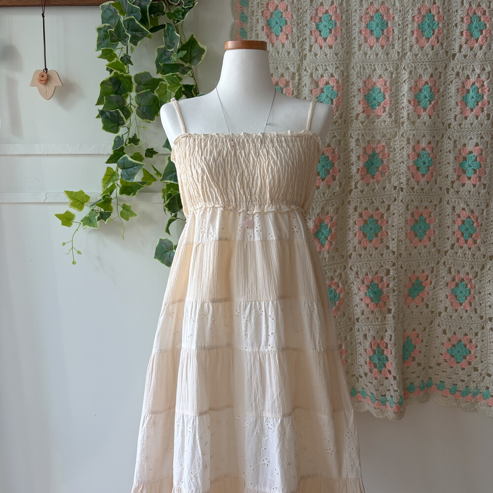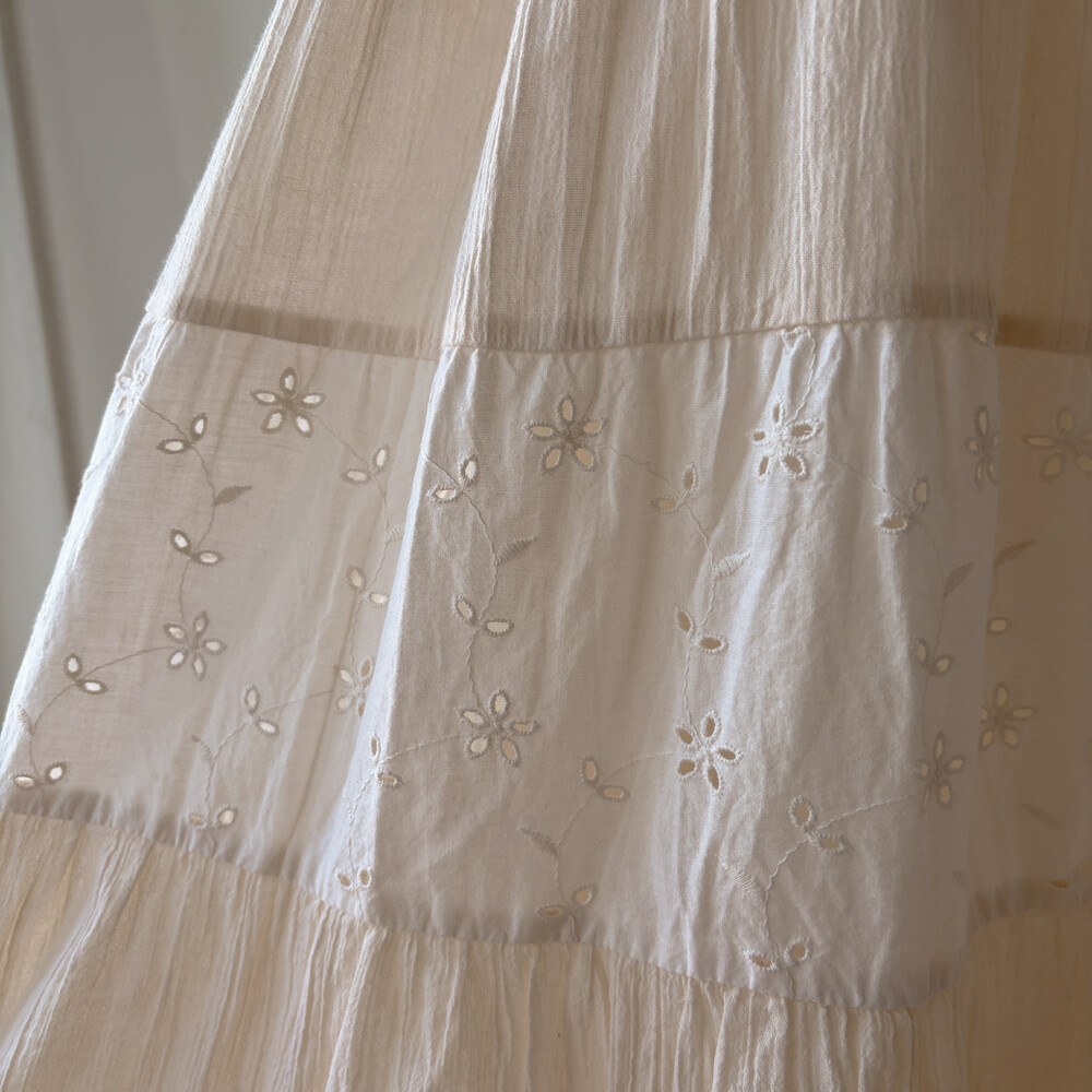 자수 패치와 교차로 붙어있는 패치워크 원피스랍니다