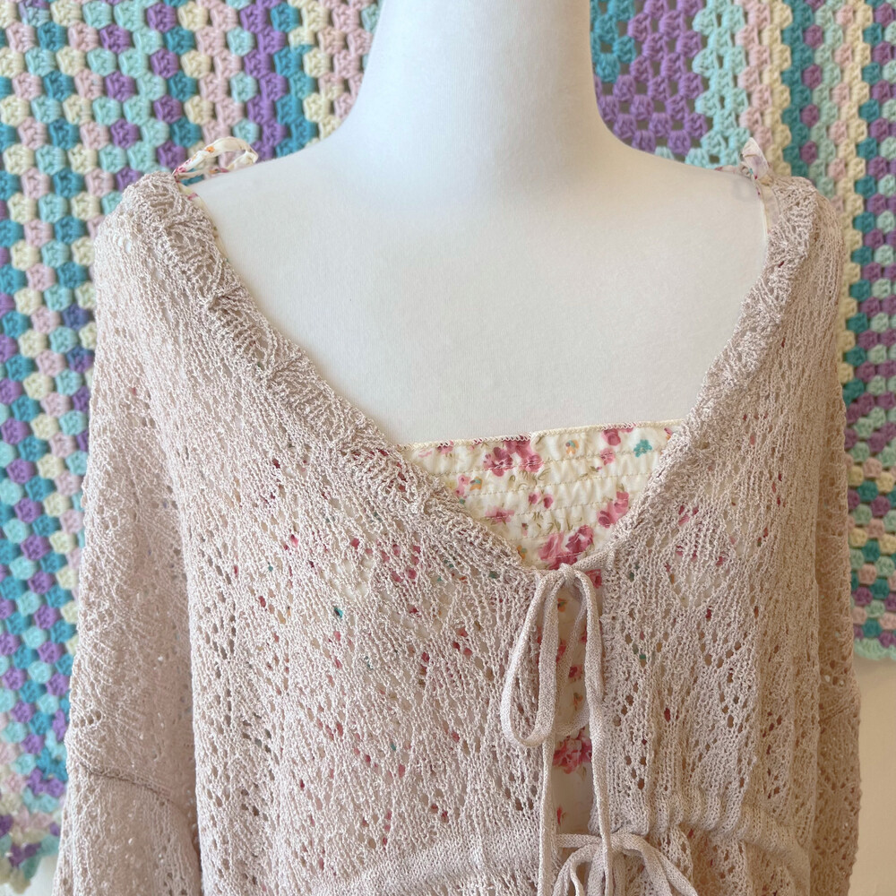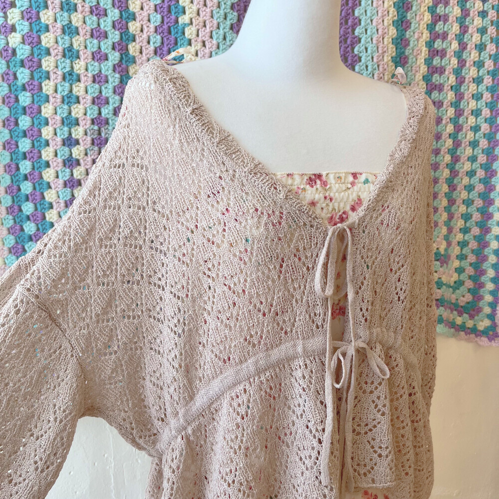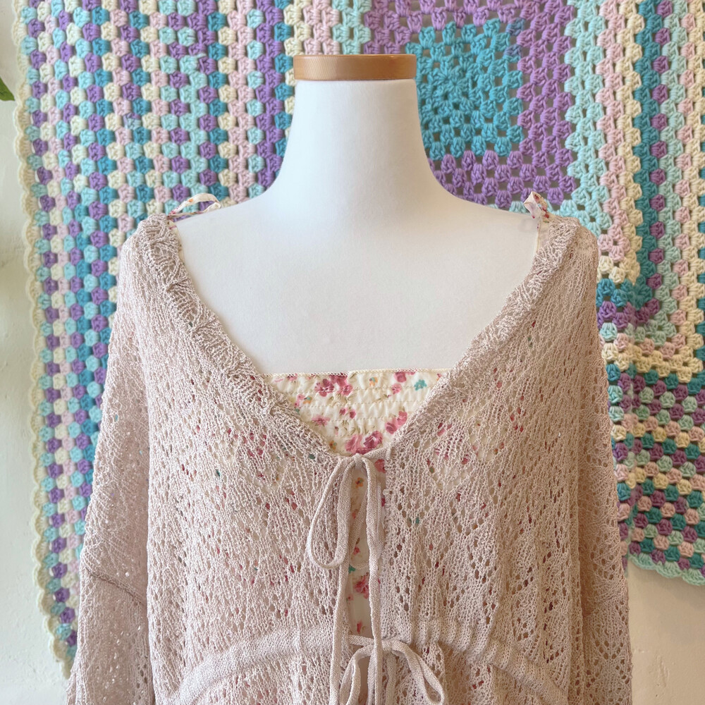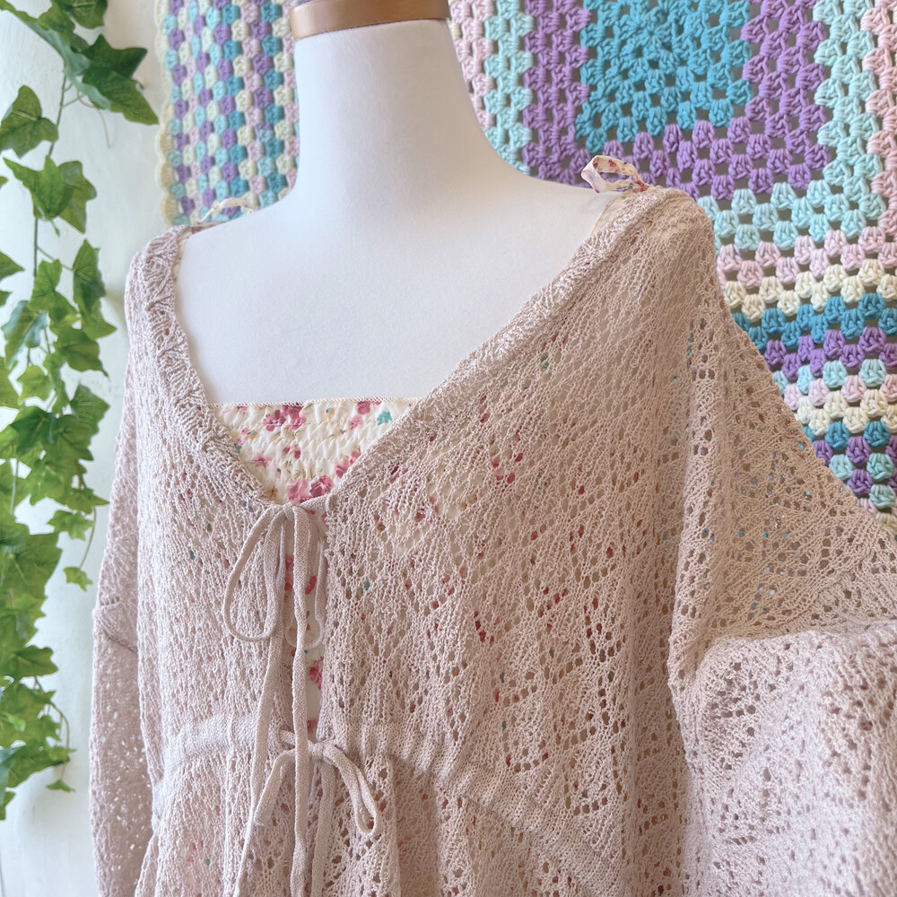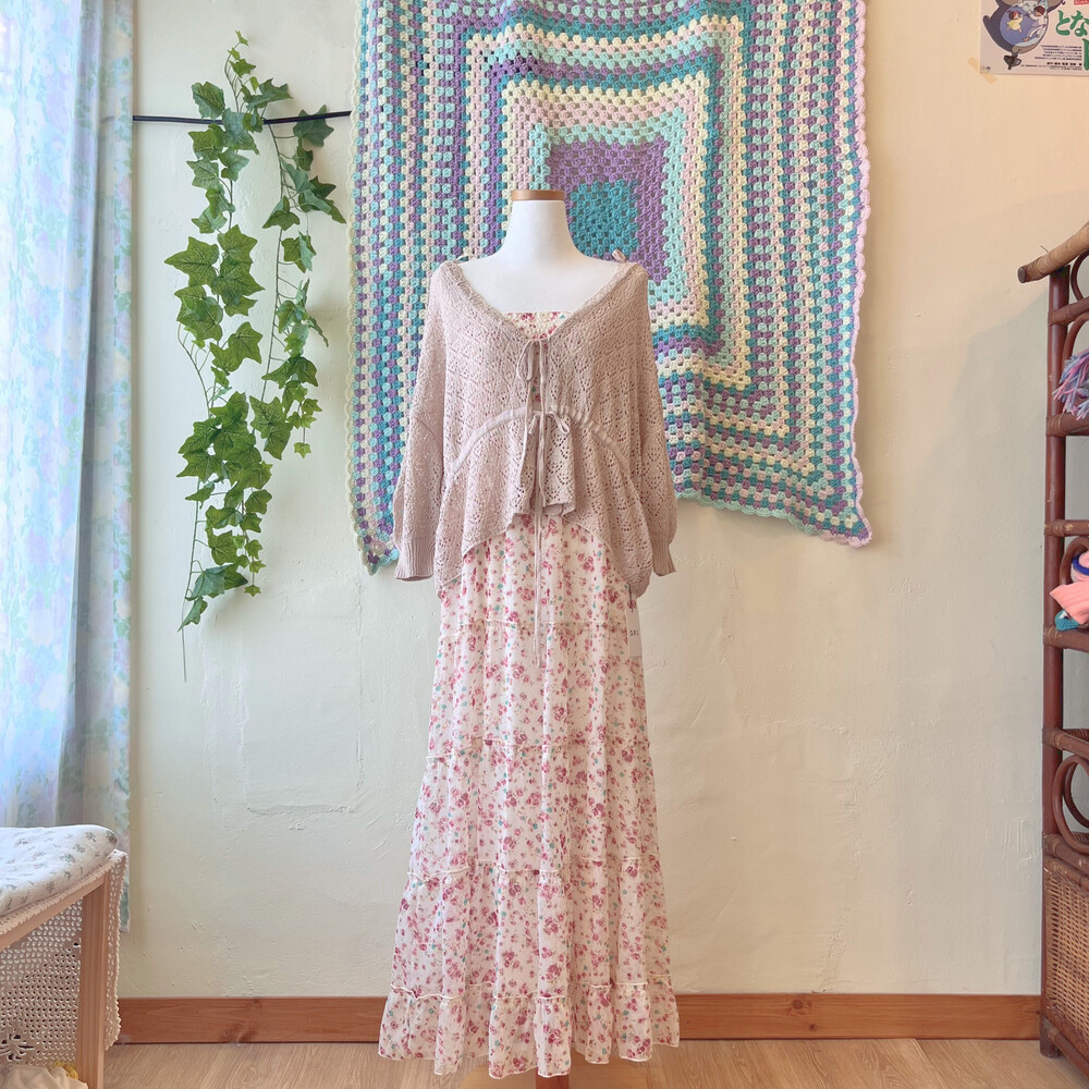 베이지 색감의 크로셰 가디건이에요