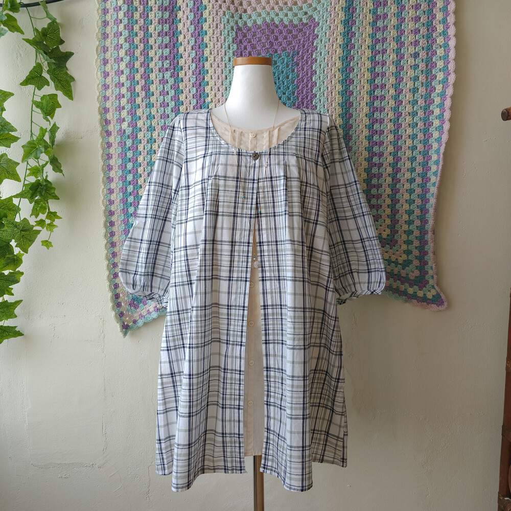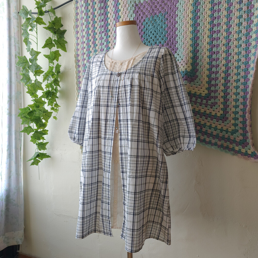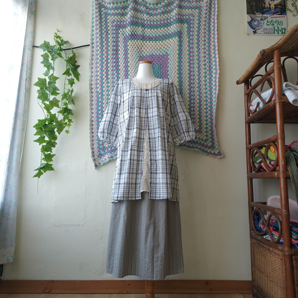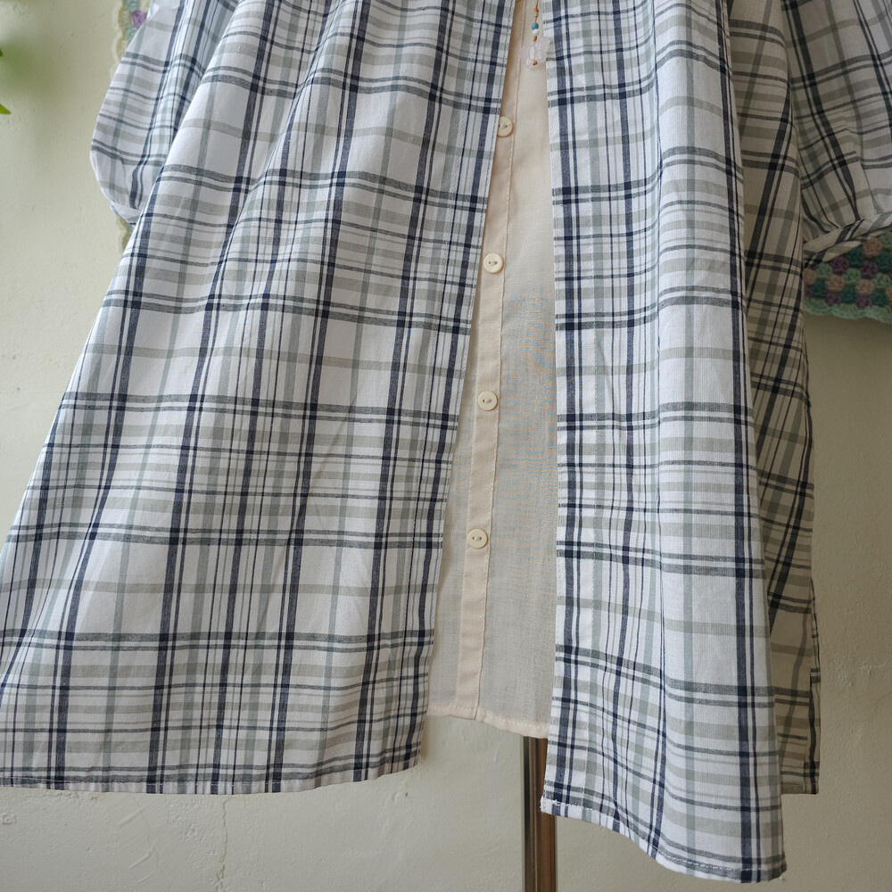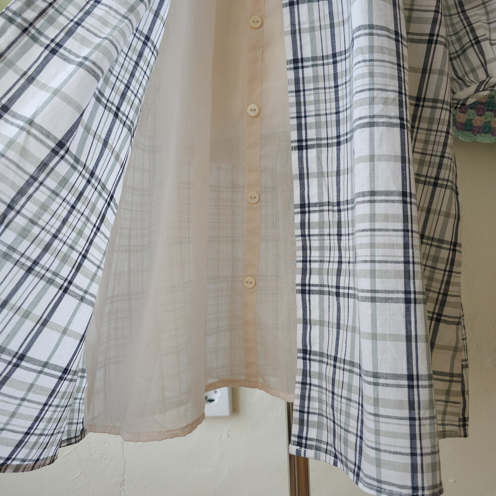 gray&navy check layered ops