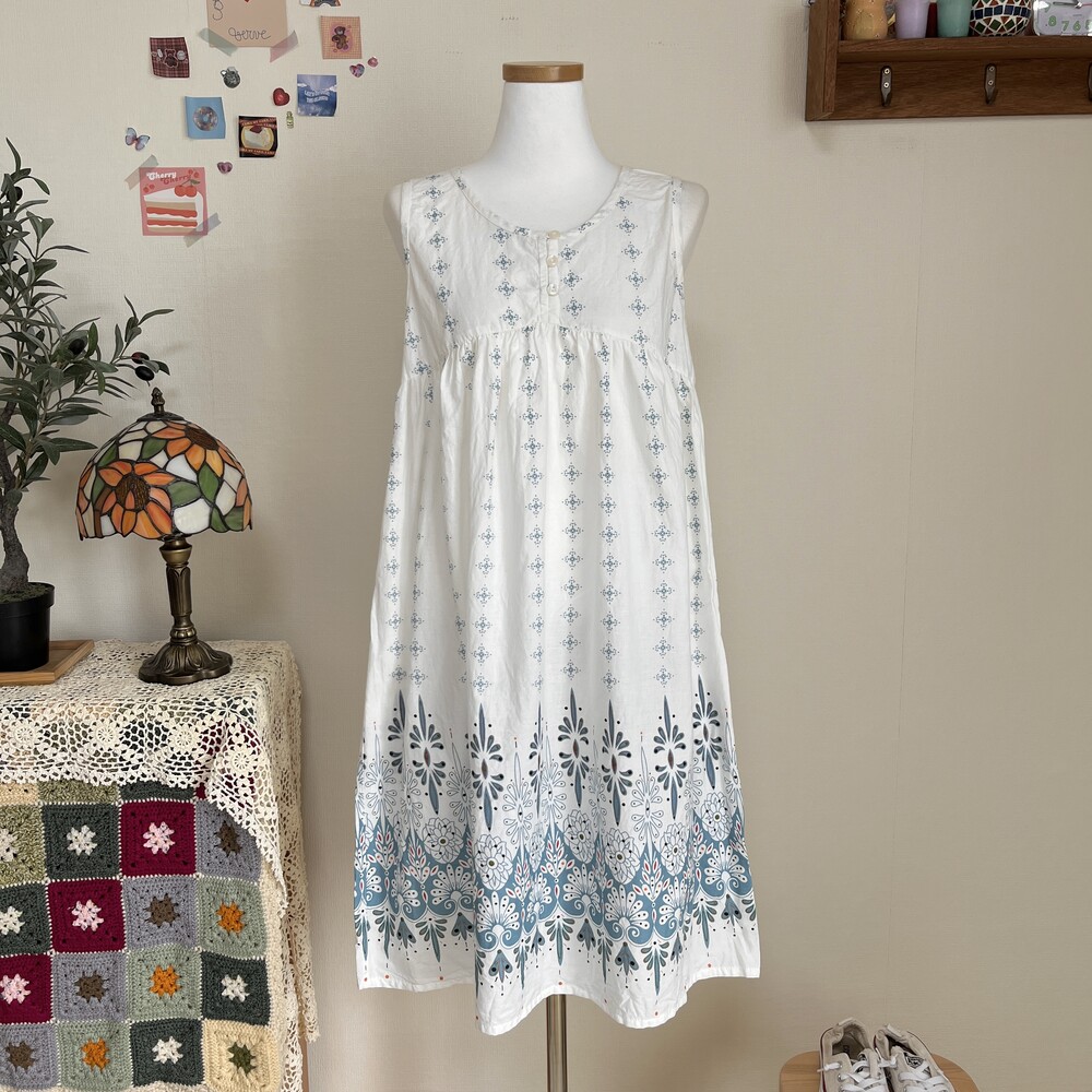 눈꽃 패턴의 민소매 코튼 원피스예요