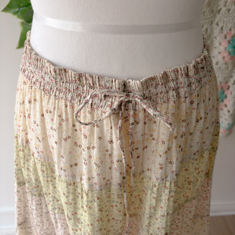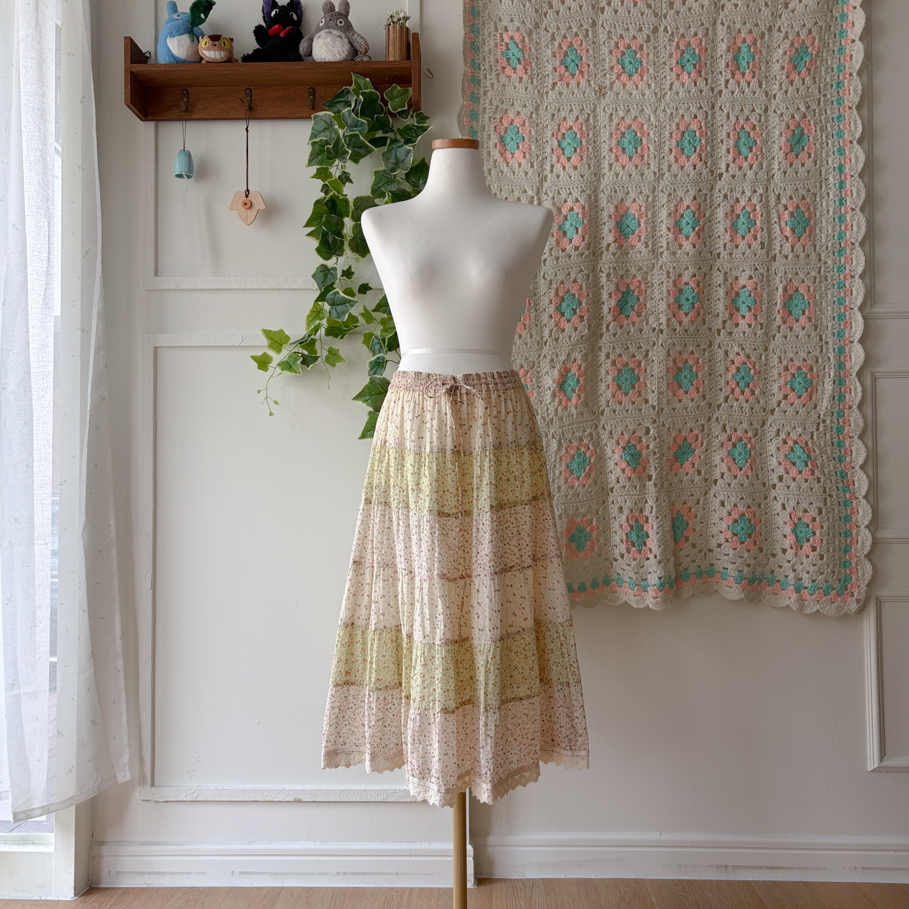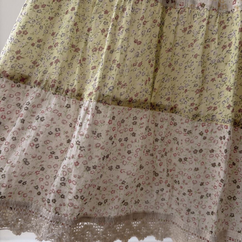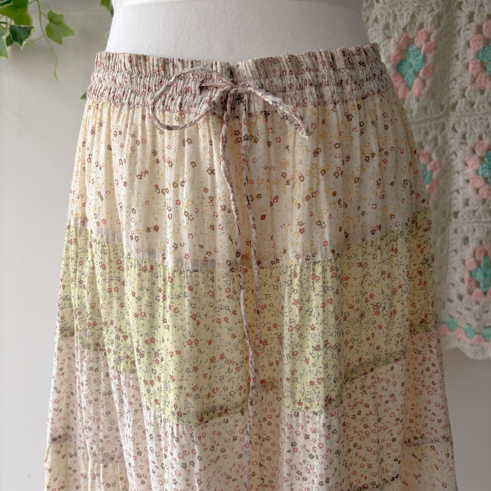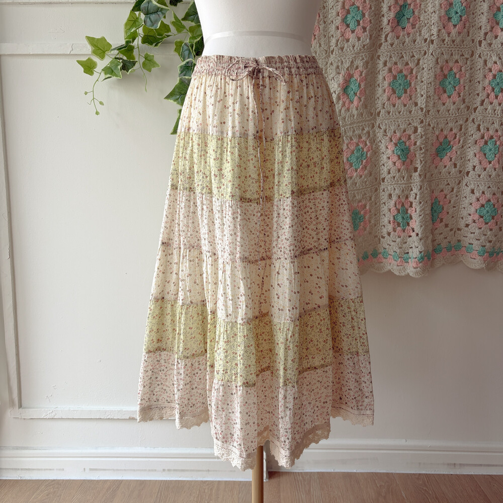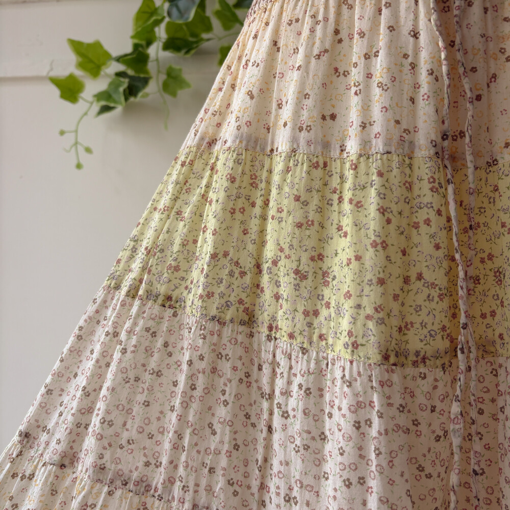 아이보리 색감 베이스의 잔꽃 패치워크 스커트예요