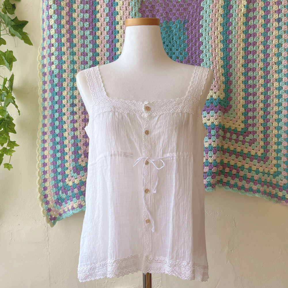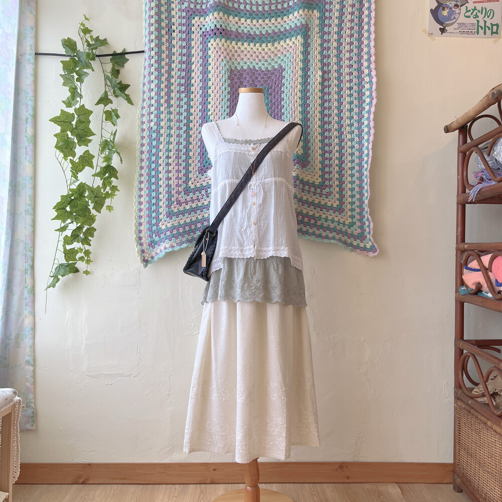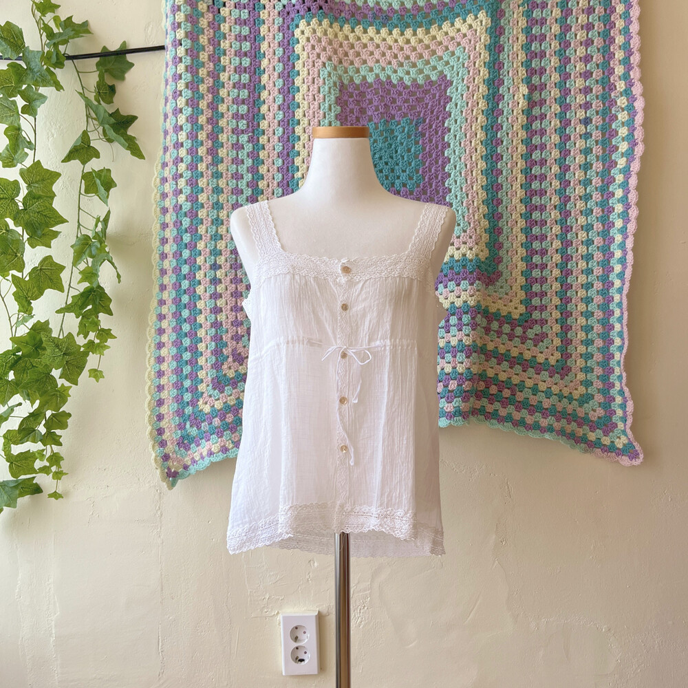 화이트 색감의 레이스 포인트 나시 블라우스예요