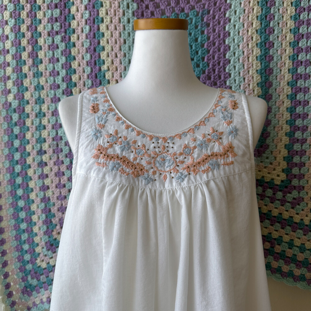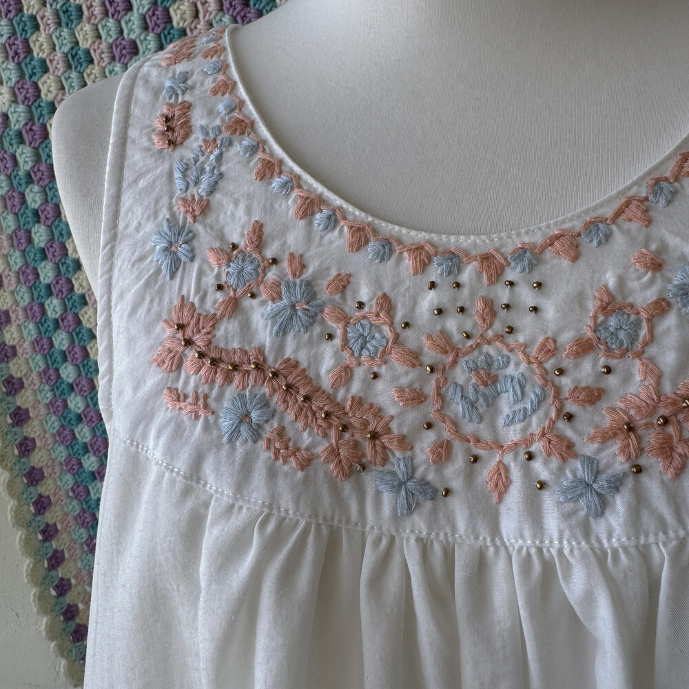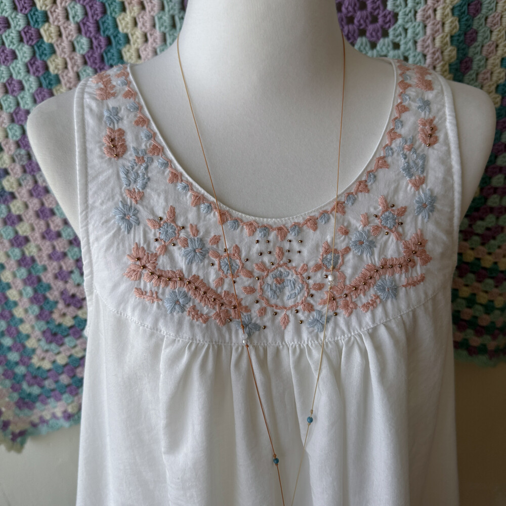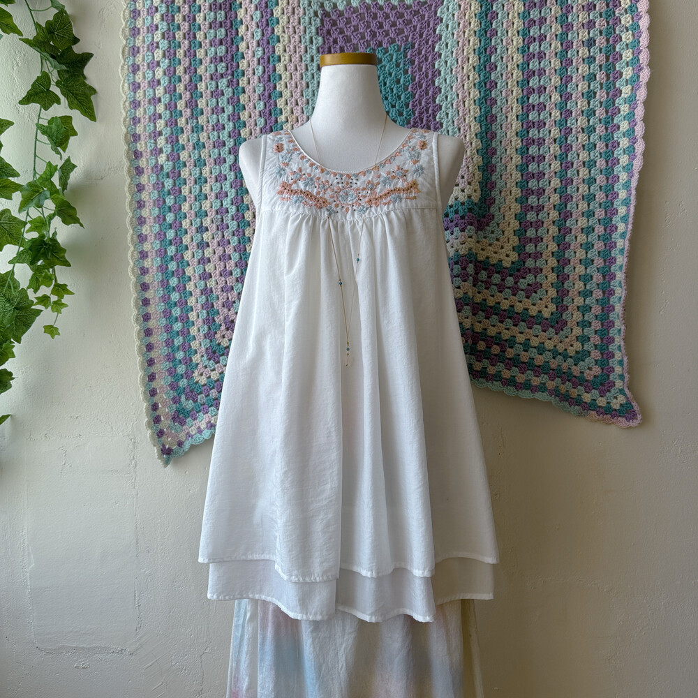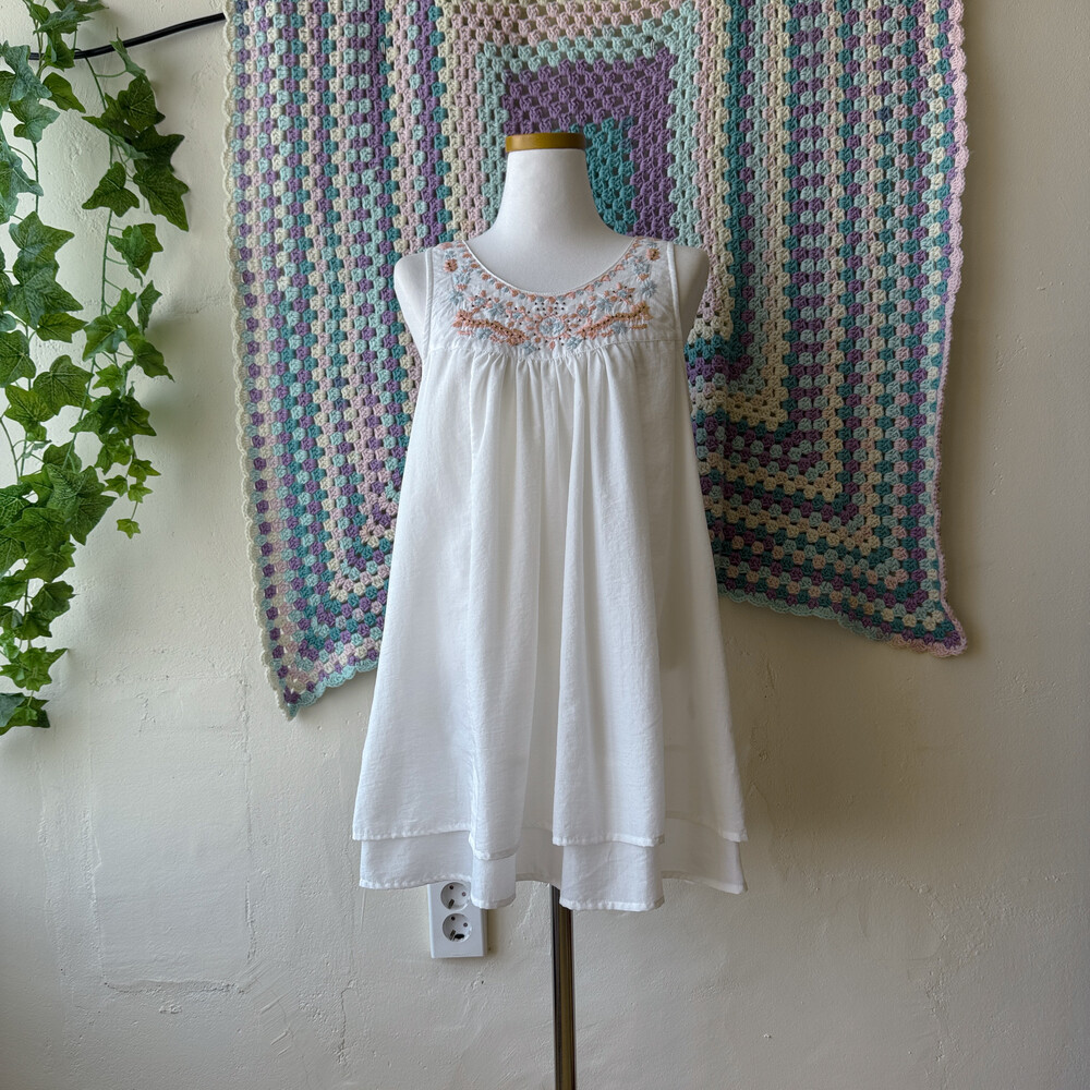 살구, 연소라 자수 포인트의 민소매 튜닉이에요