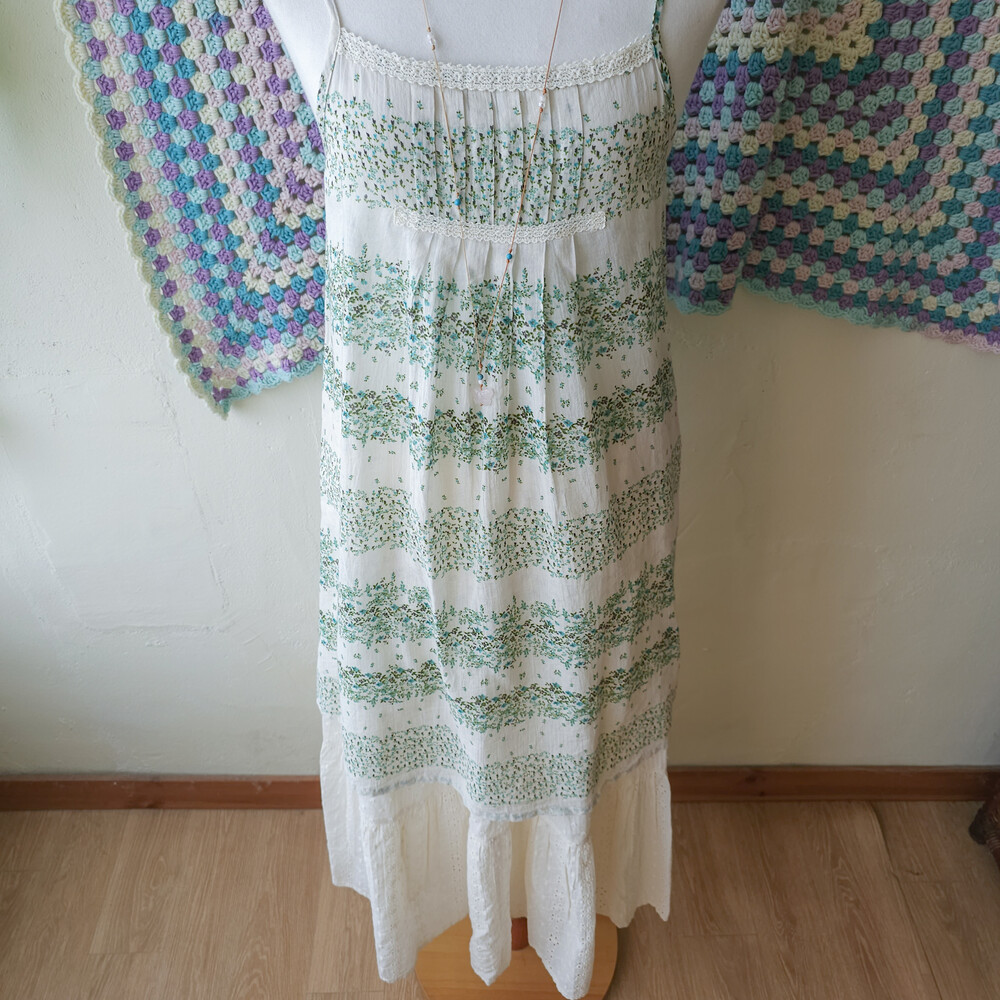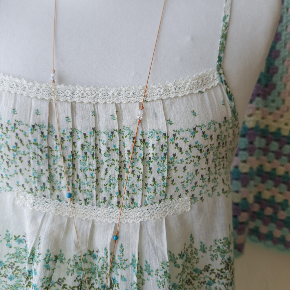그리너리한 잔꽃 끈 블라우스 튜닉이에요