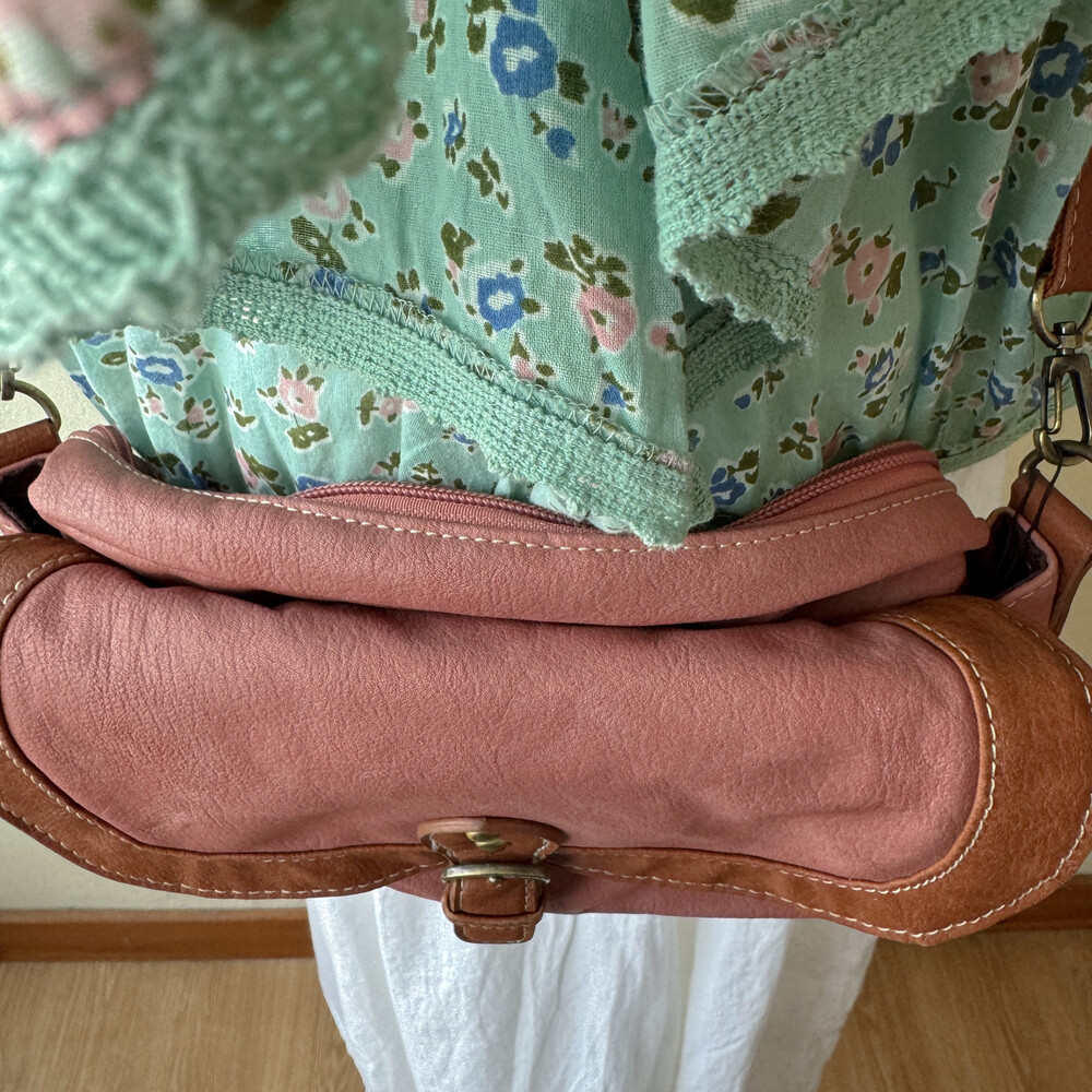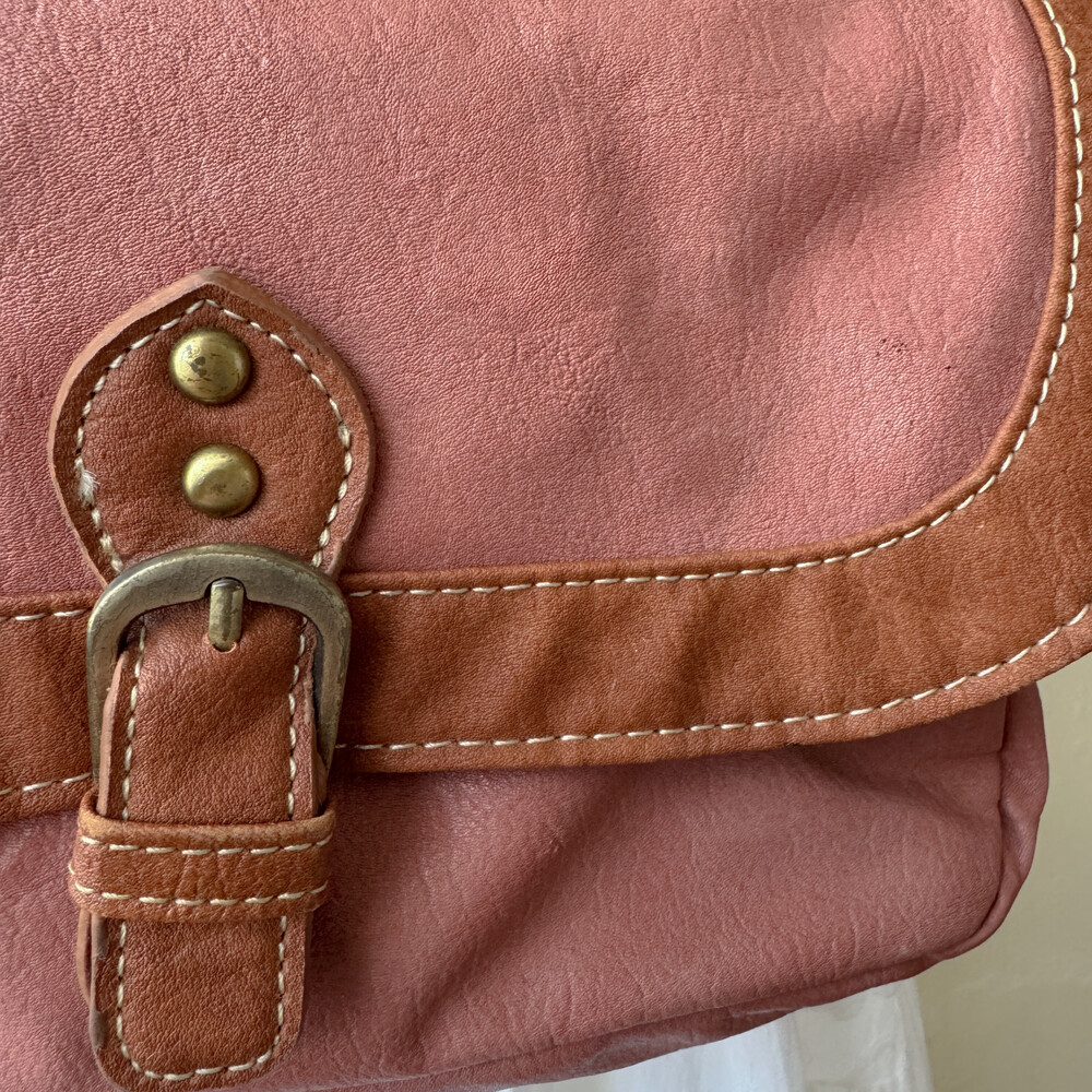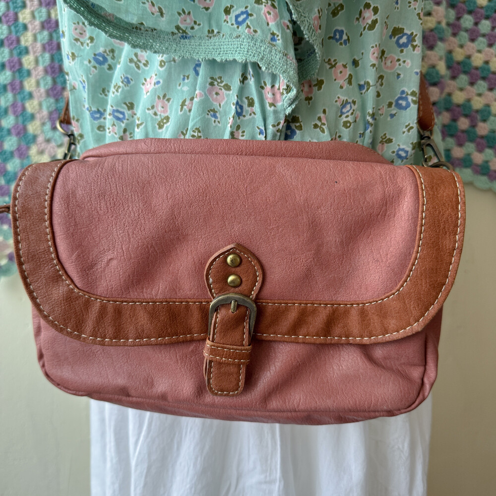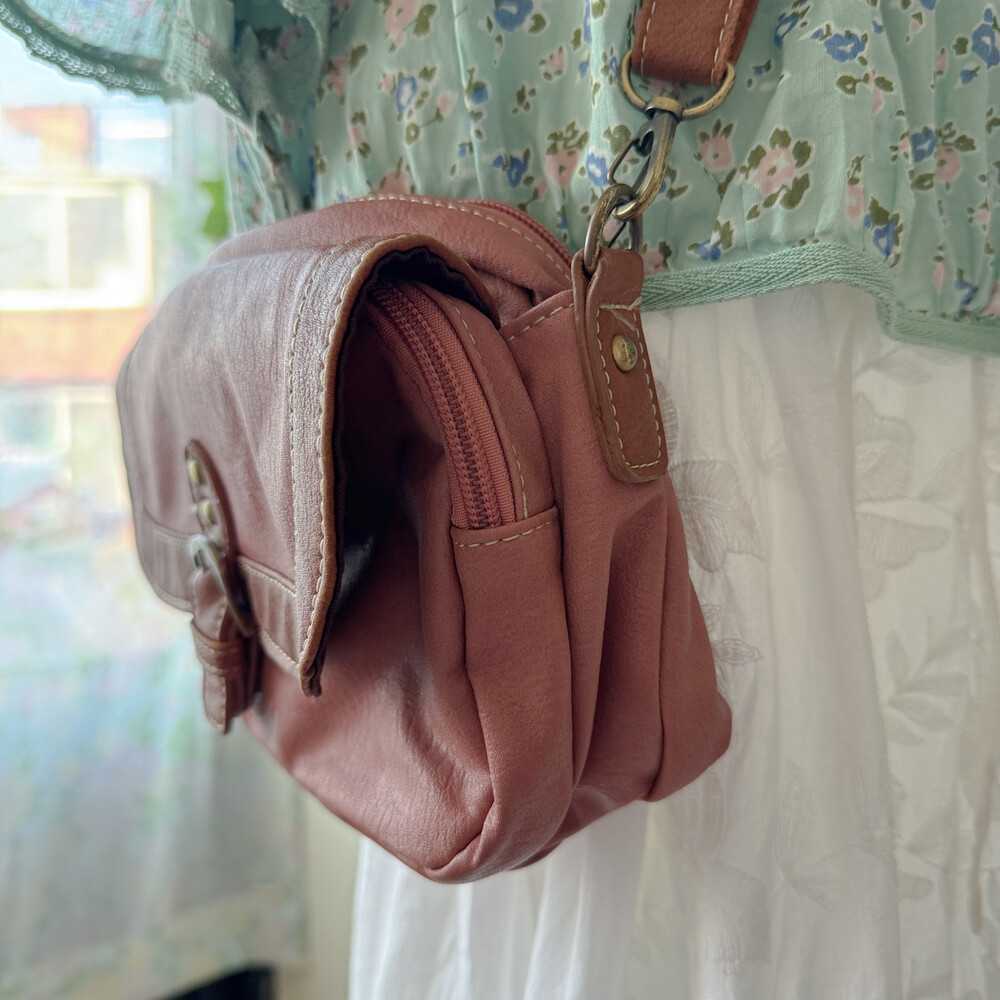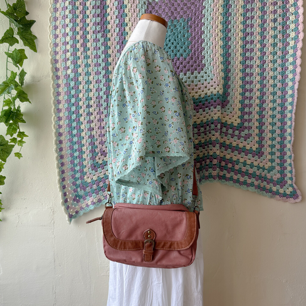 indie-pink&brown buckle cross bag