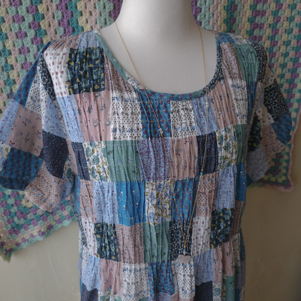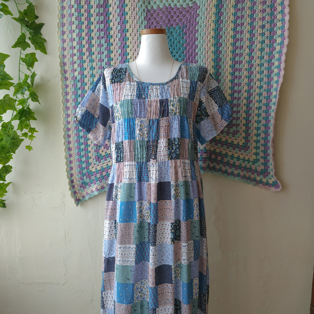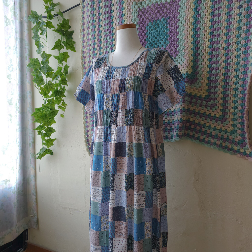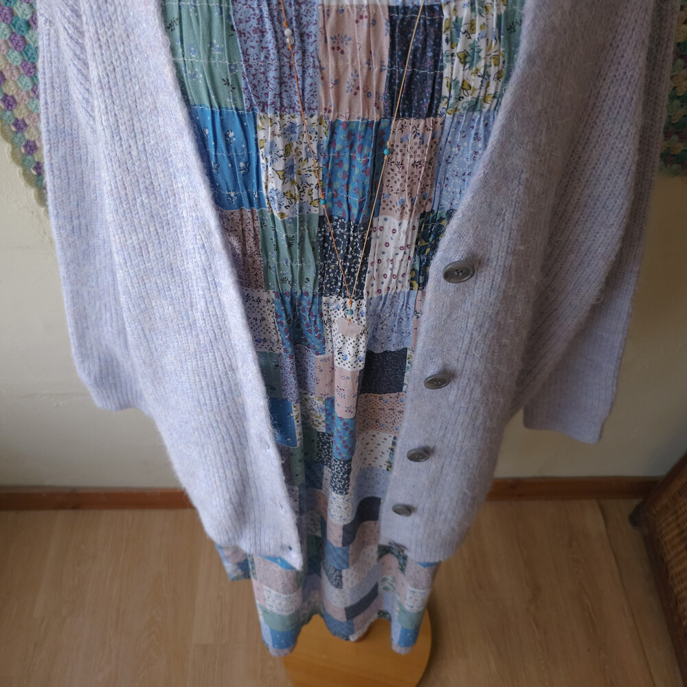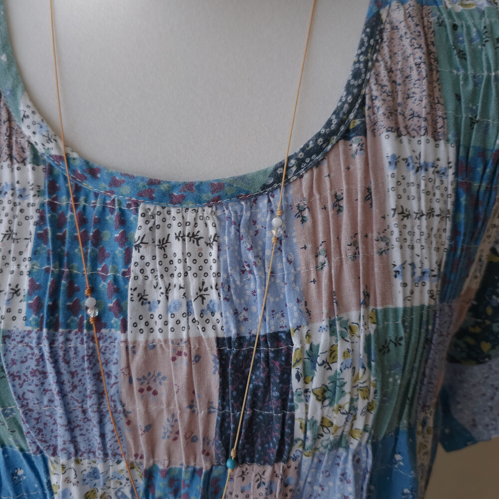 블루 색감 베이스의 잔꽃 코튼 원피스예요