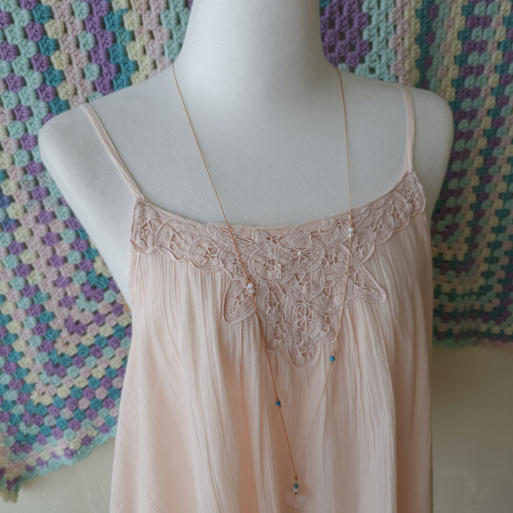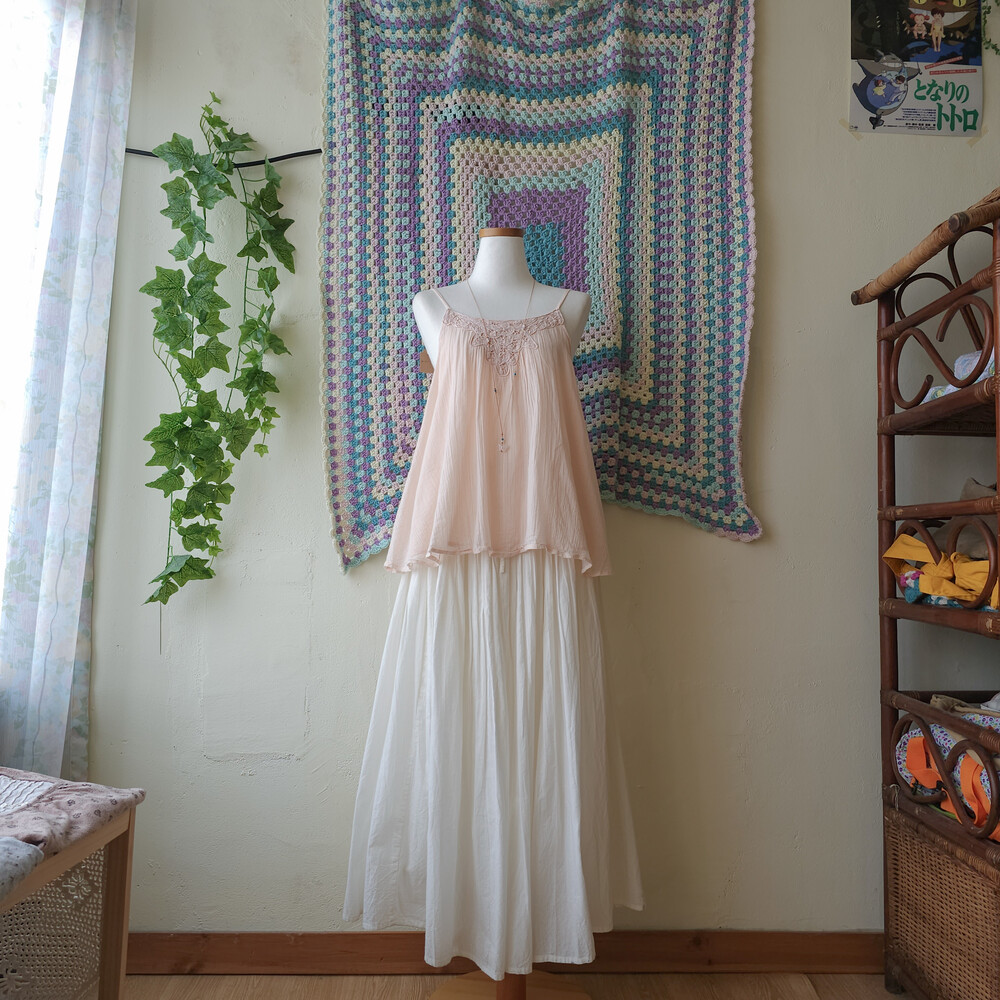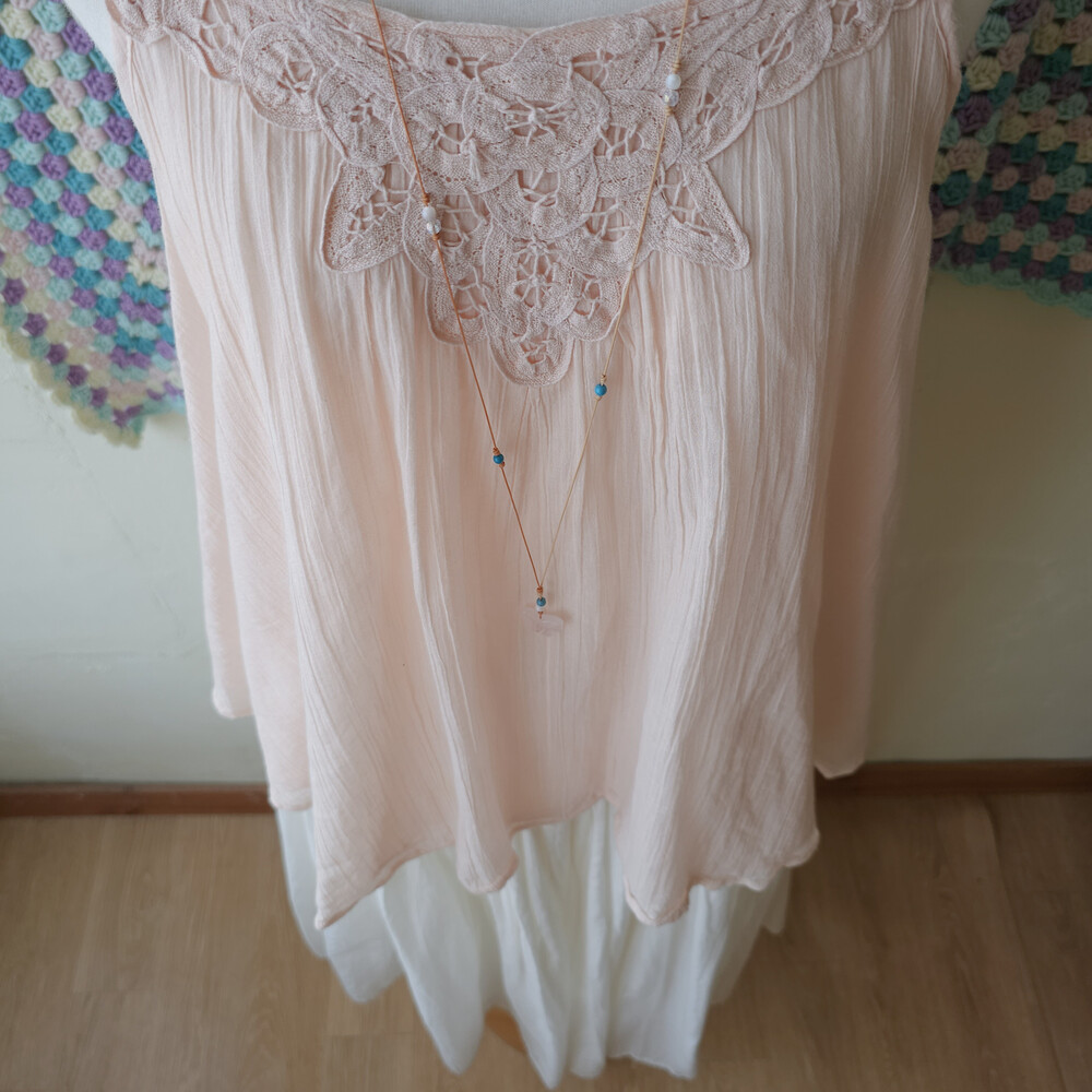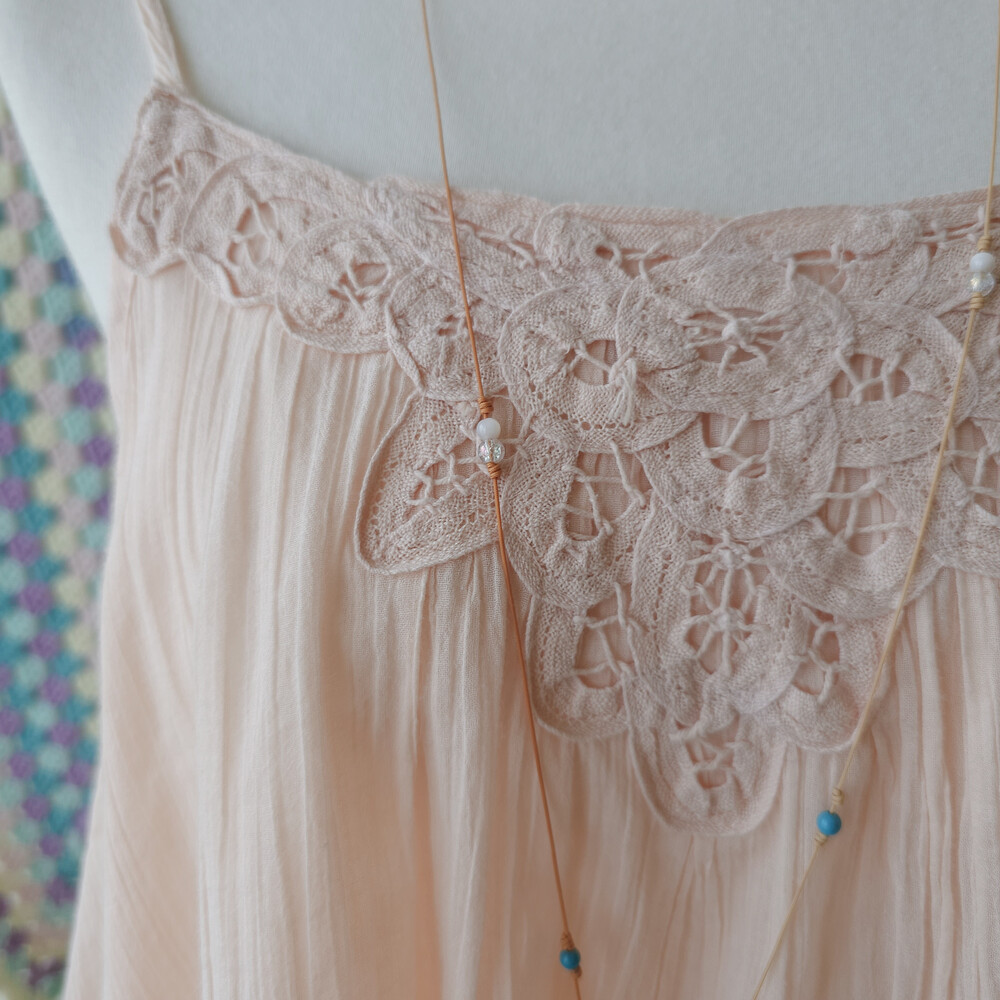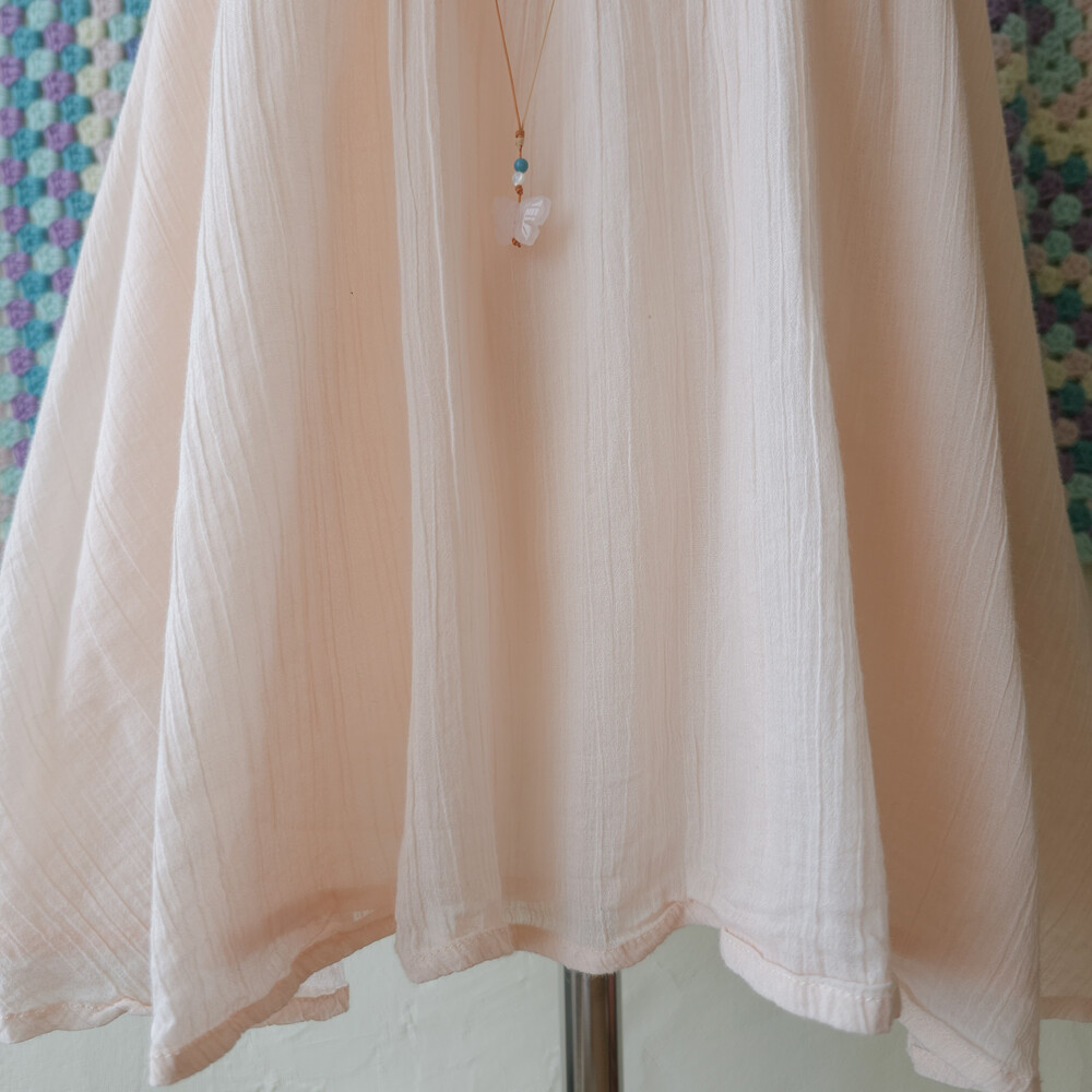 뮤트한 연분홍 색감의 코튼 끈블라우스예요