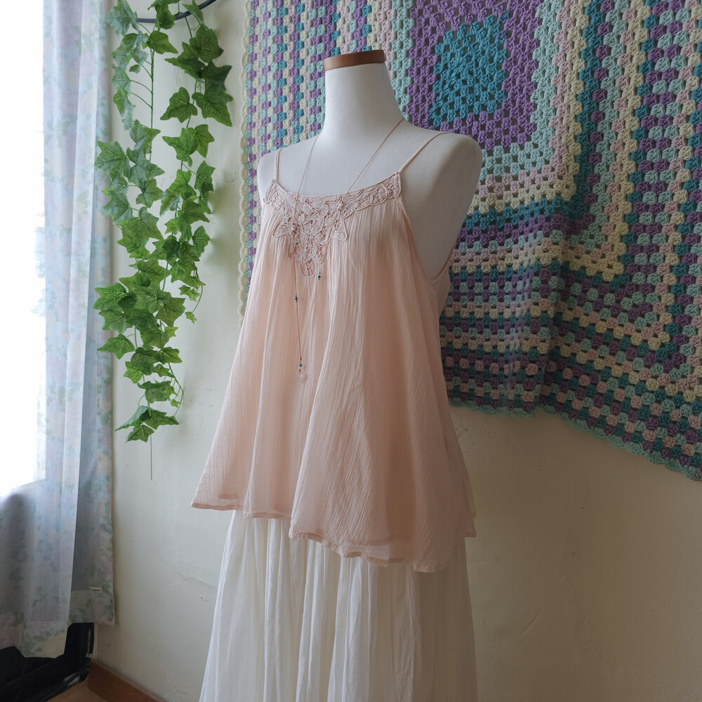 light pink flower patch sleeveless bl