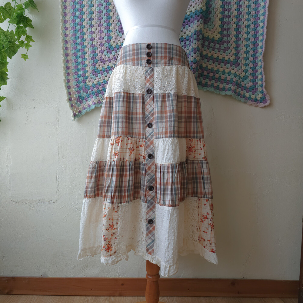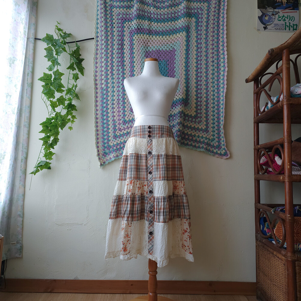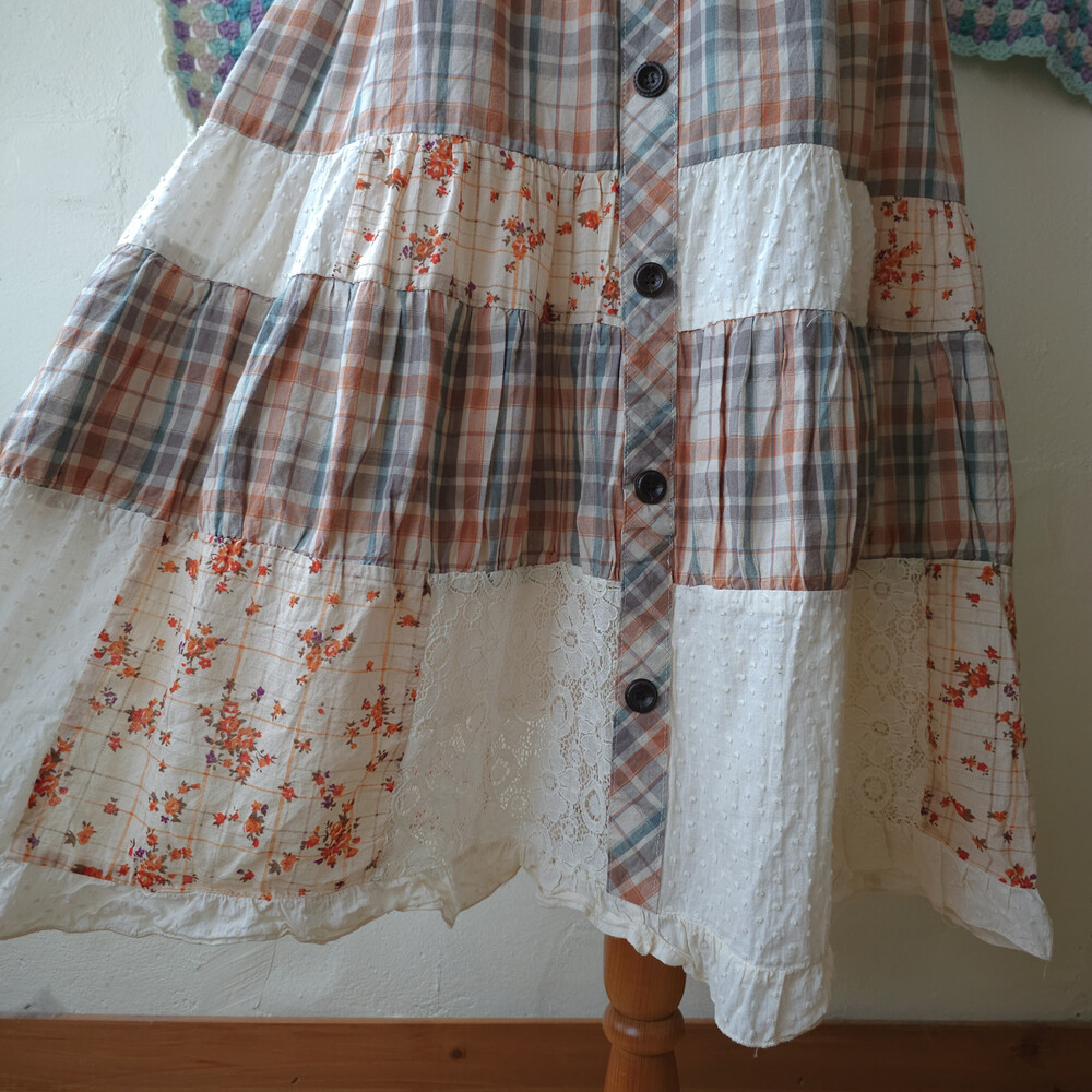 체크, 레이스, 꽃무늬 패치들이 조합되어 있고
