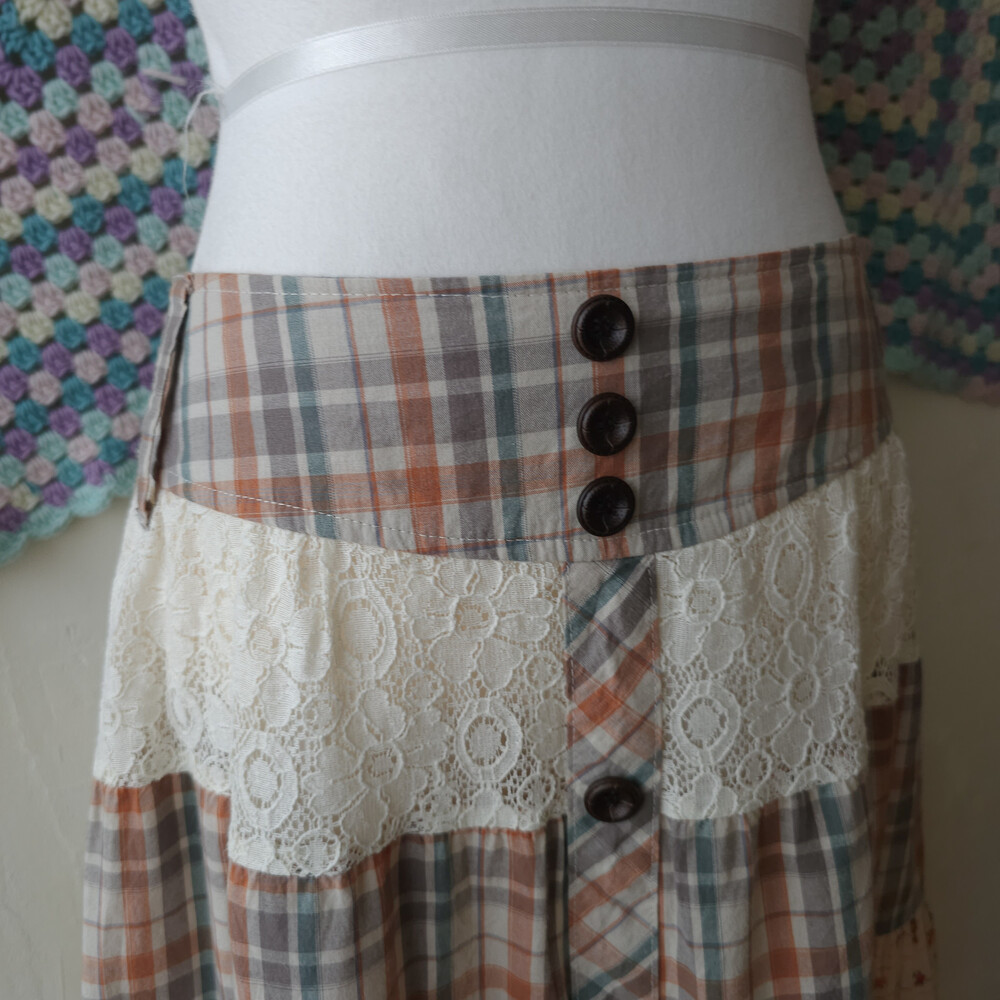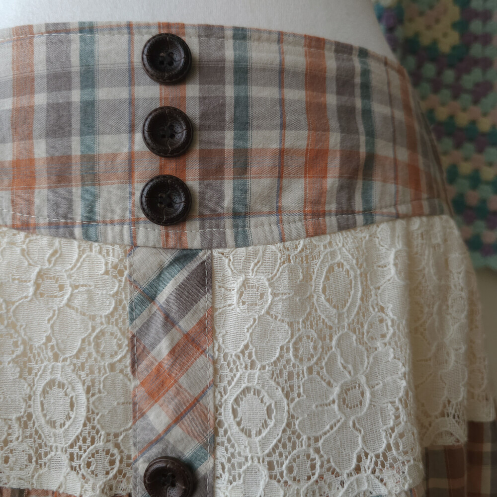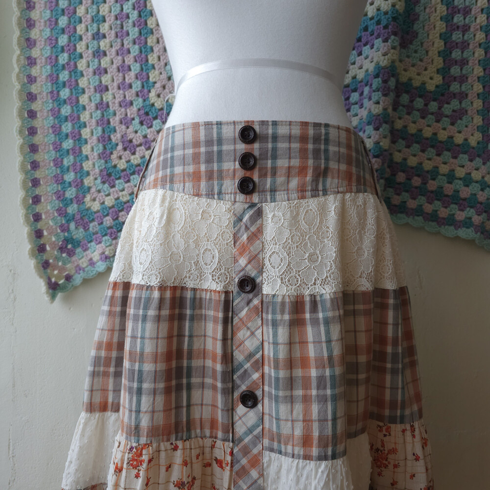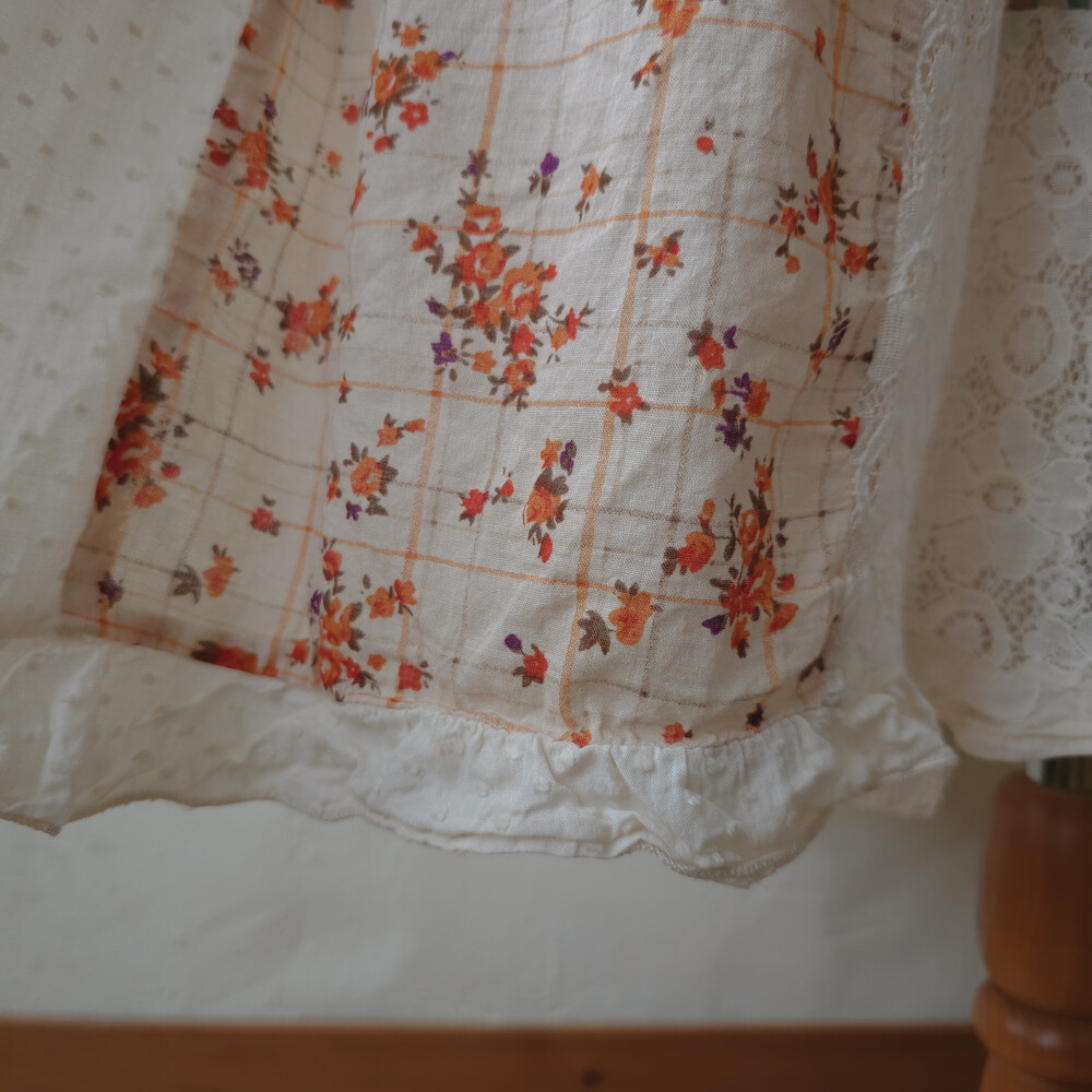 체크, 레이스, 꽃무늬 패치들이 조합되어 있고