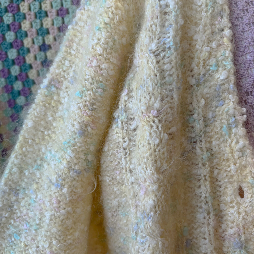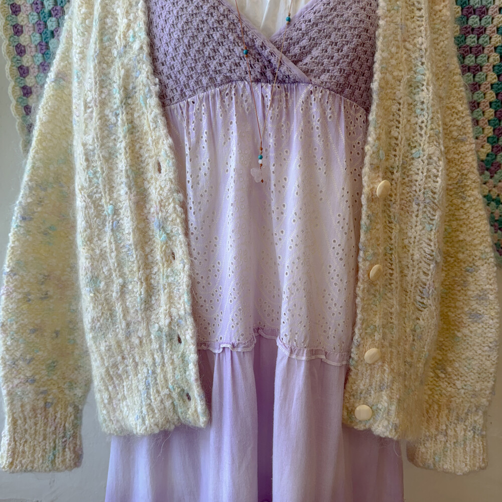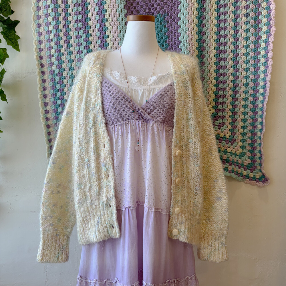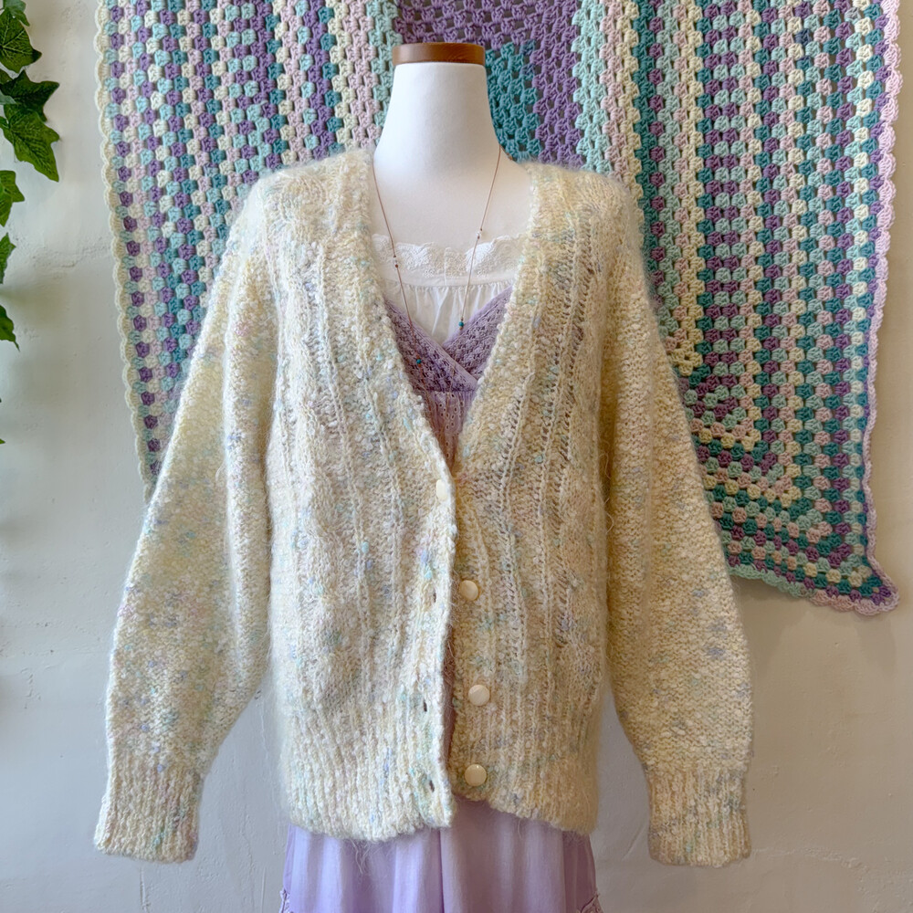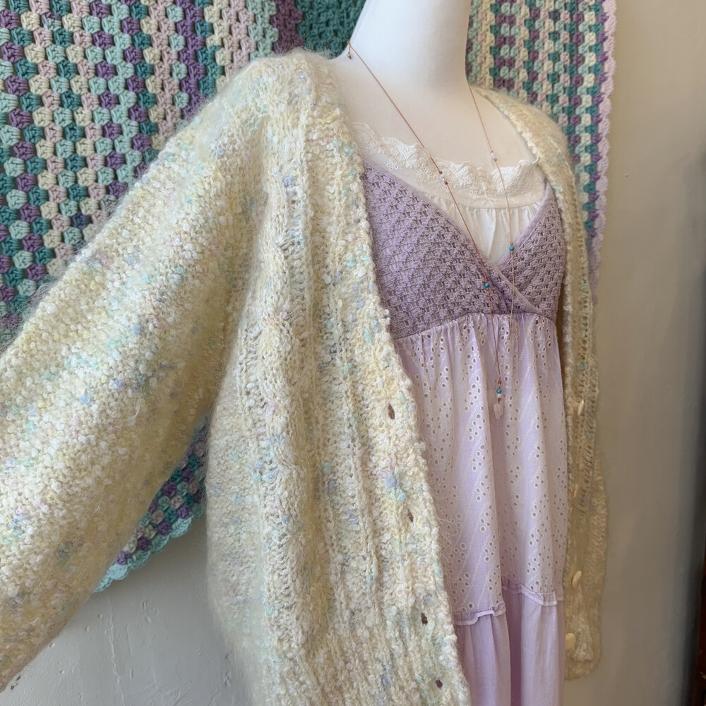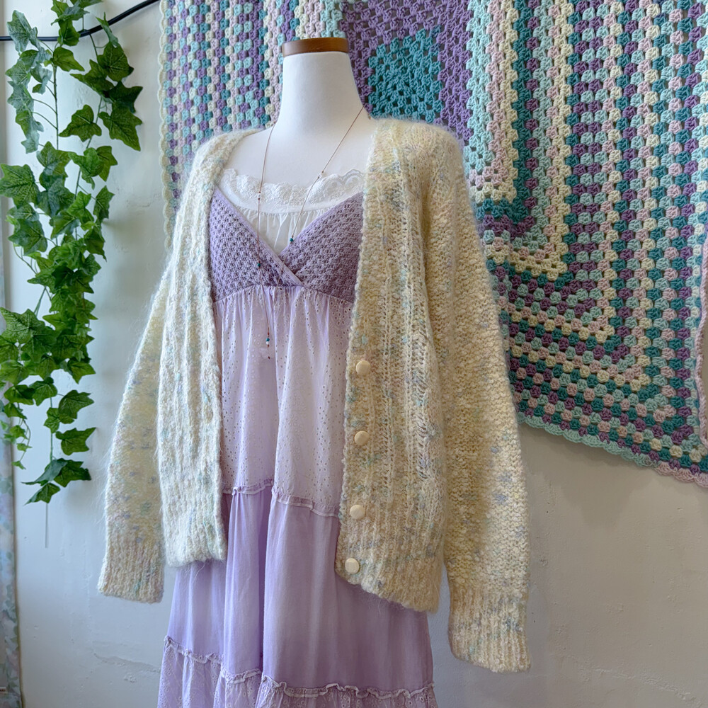 파스텔 색감의 폼폼들이 믹스된 가디건이에요
