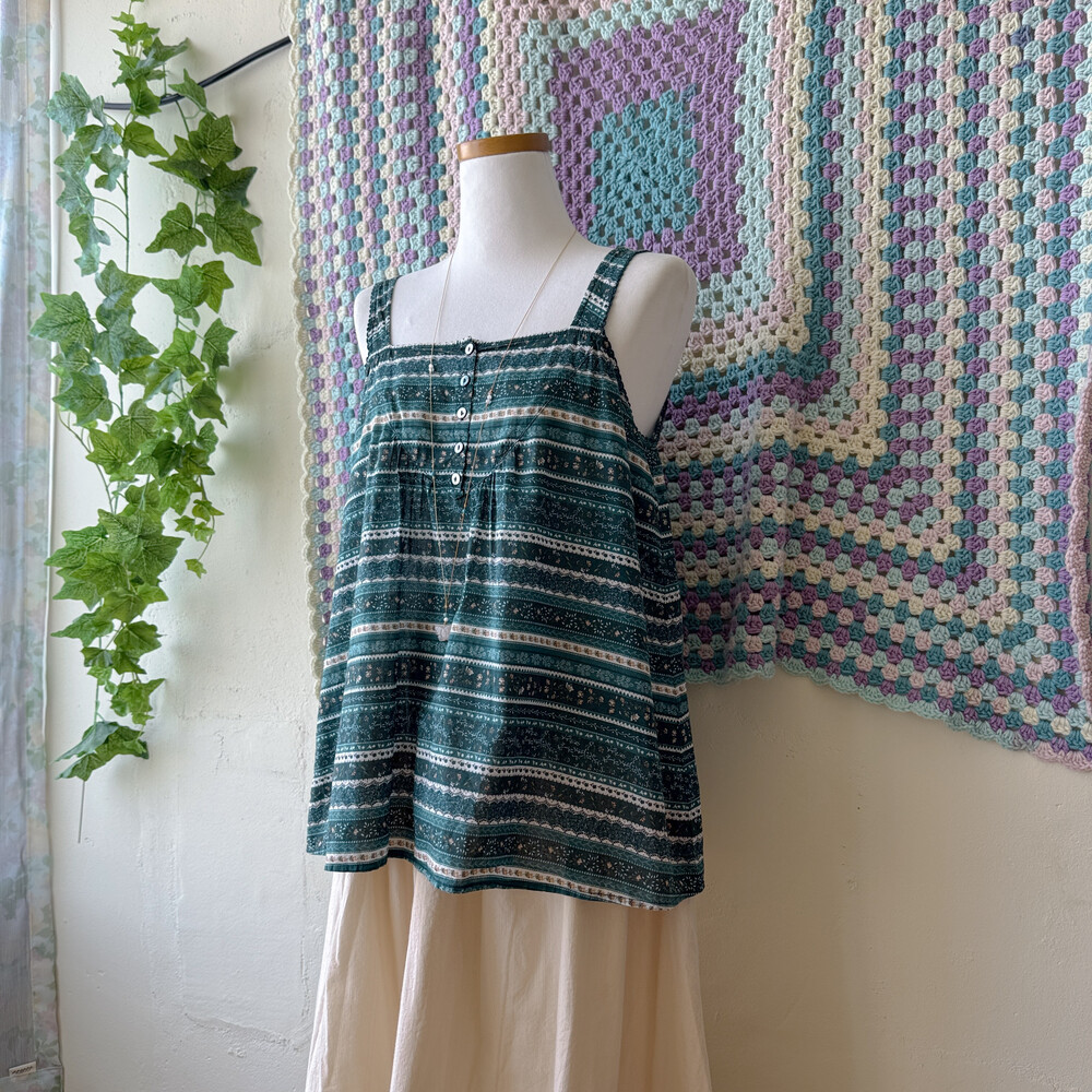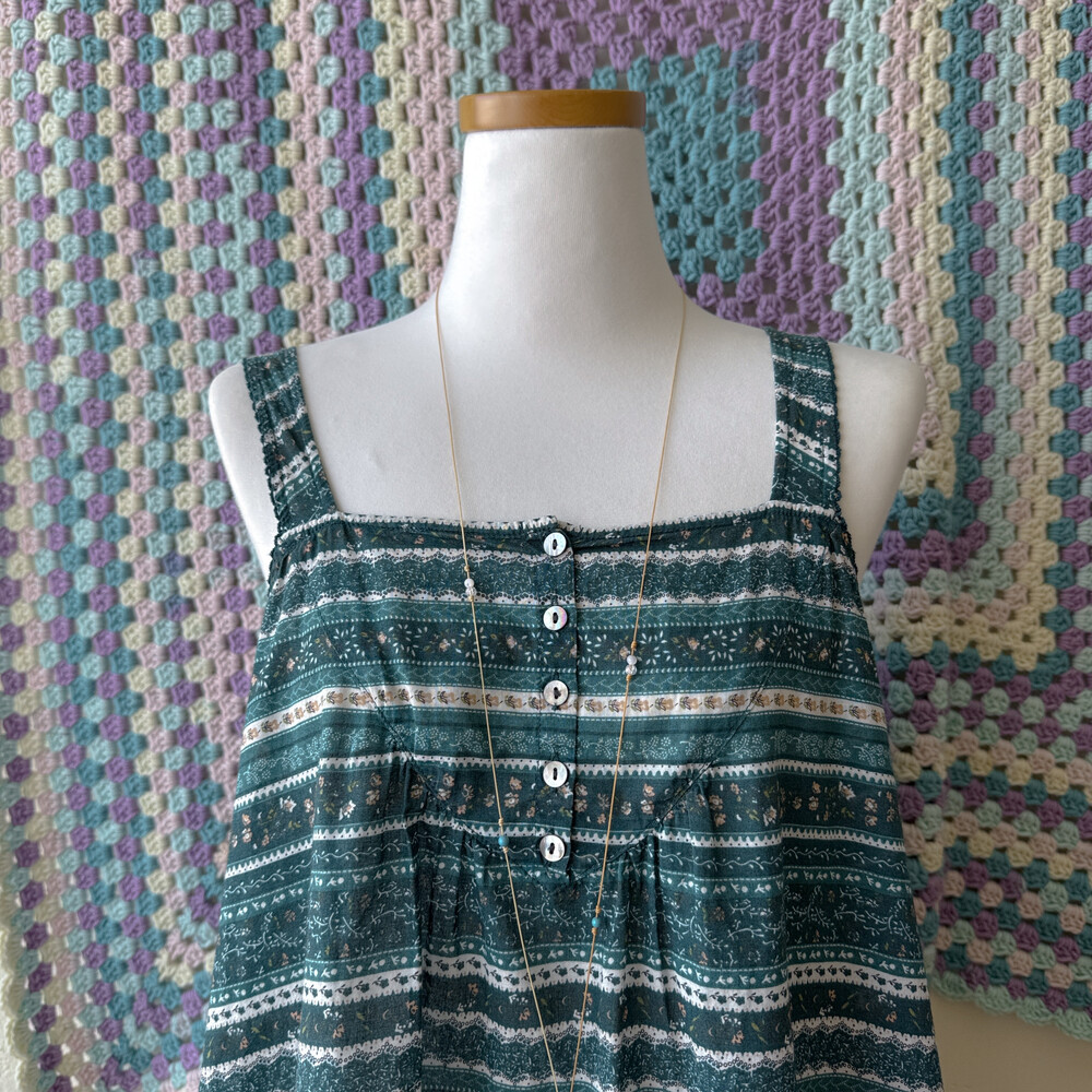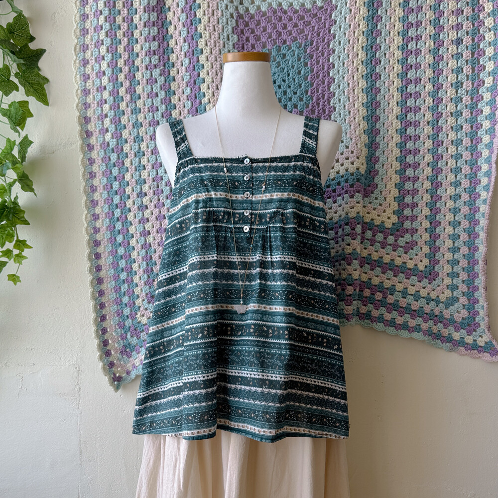 sm2의 청록색감 패턴의 민소매 블라우스예요