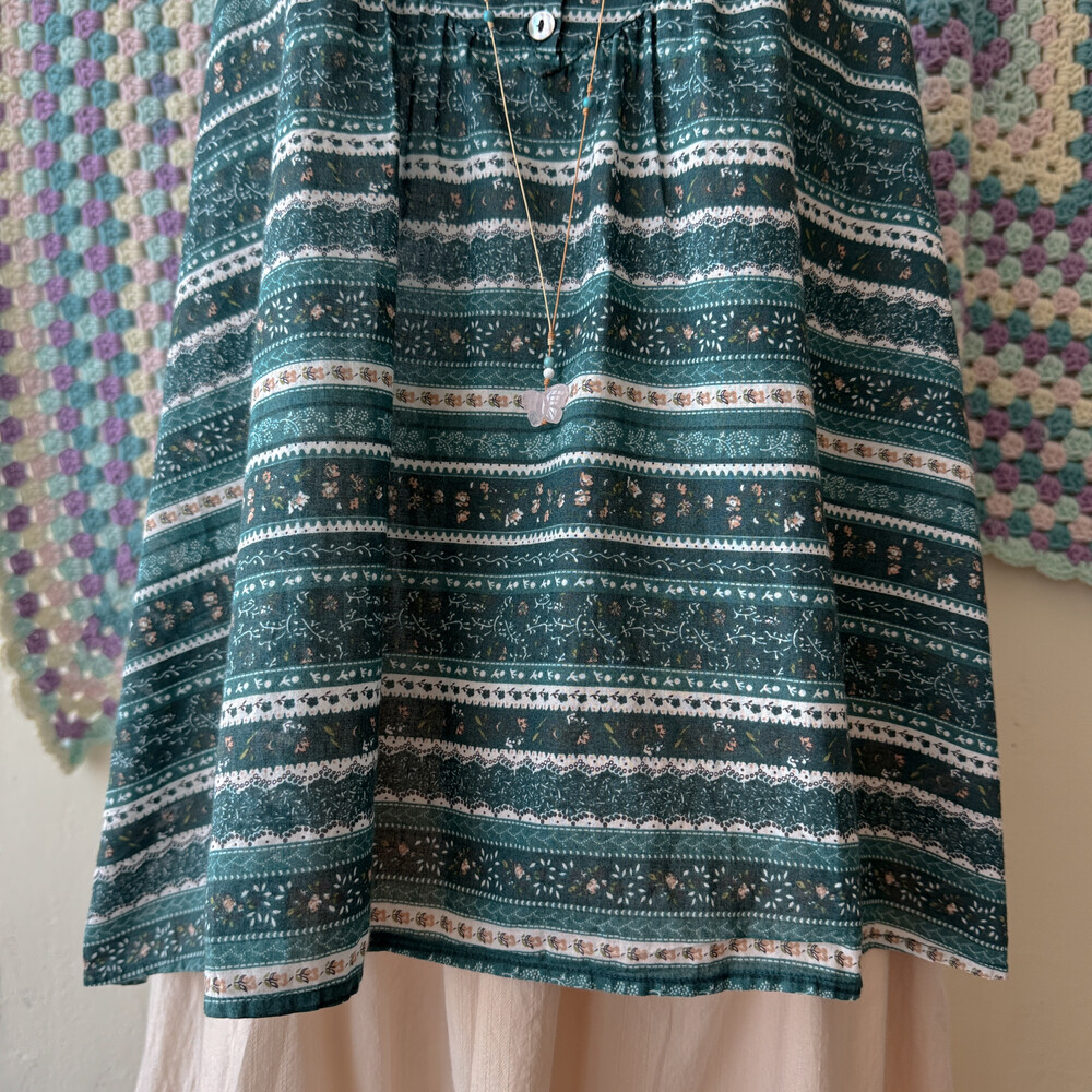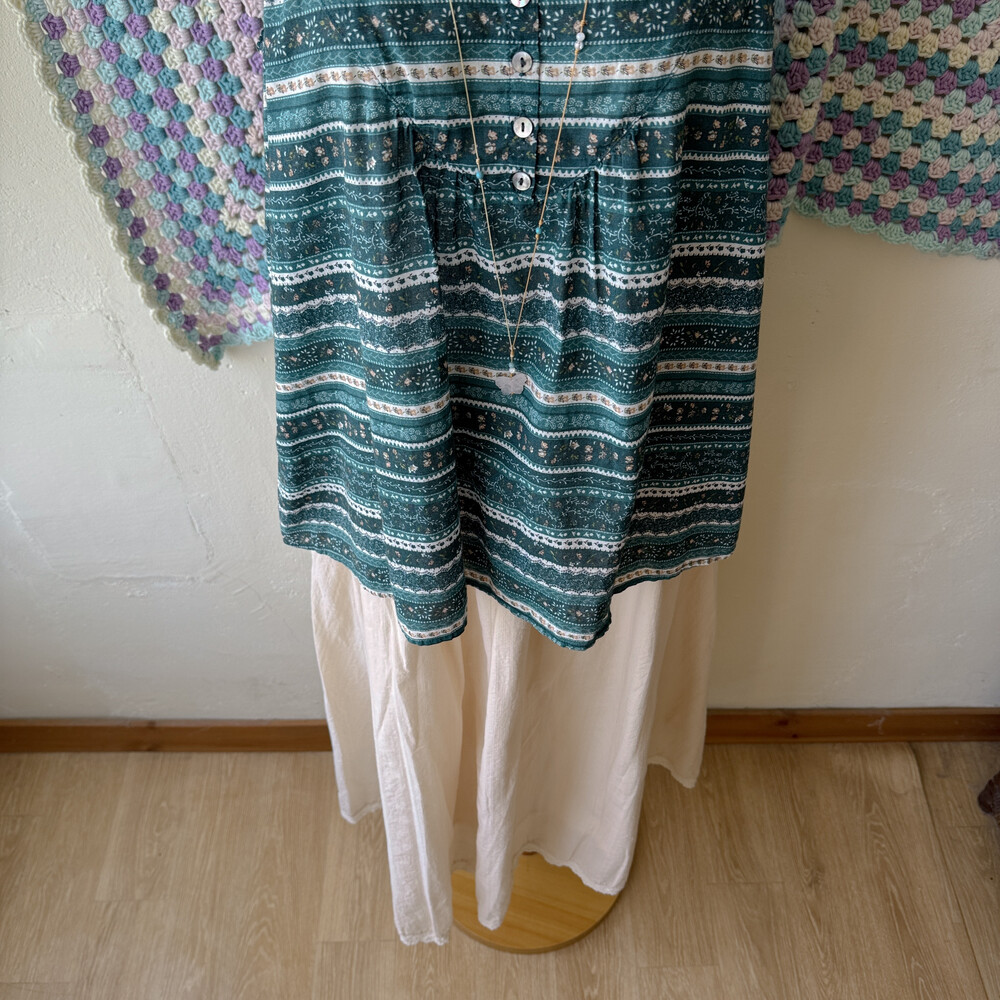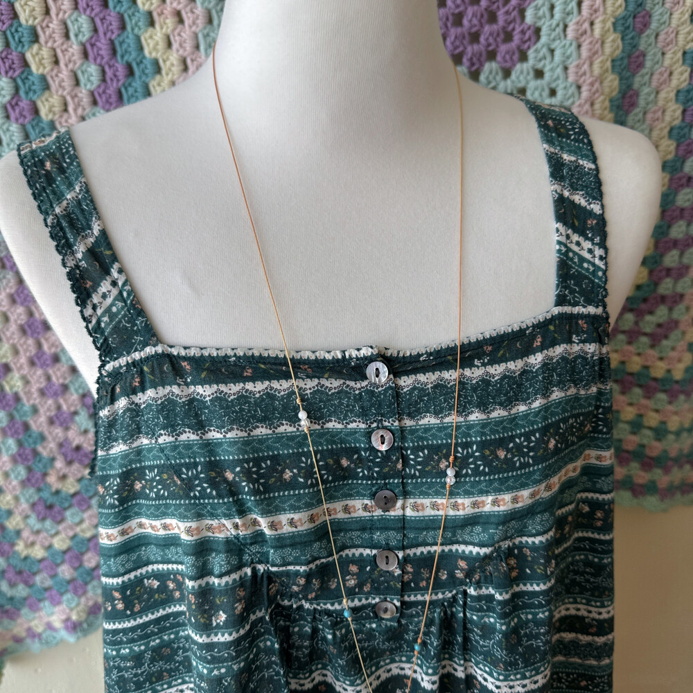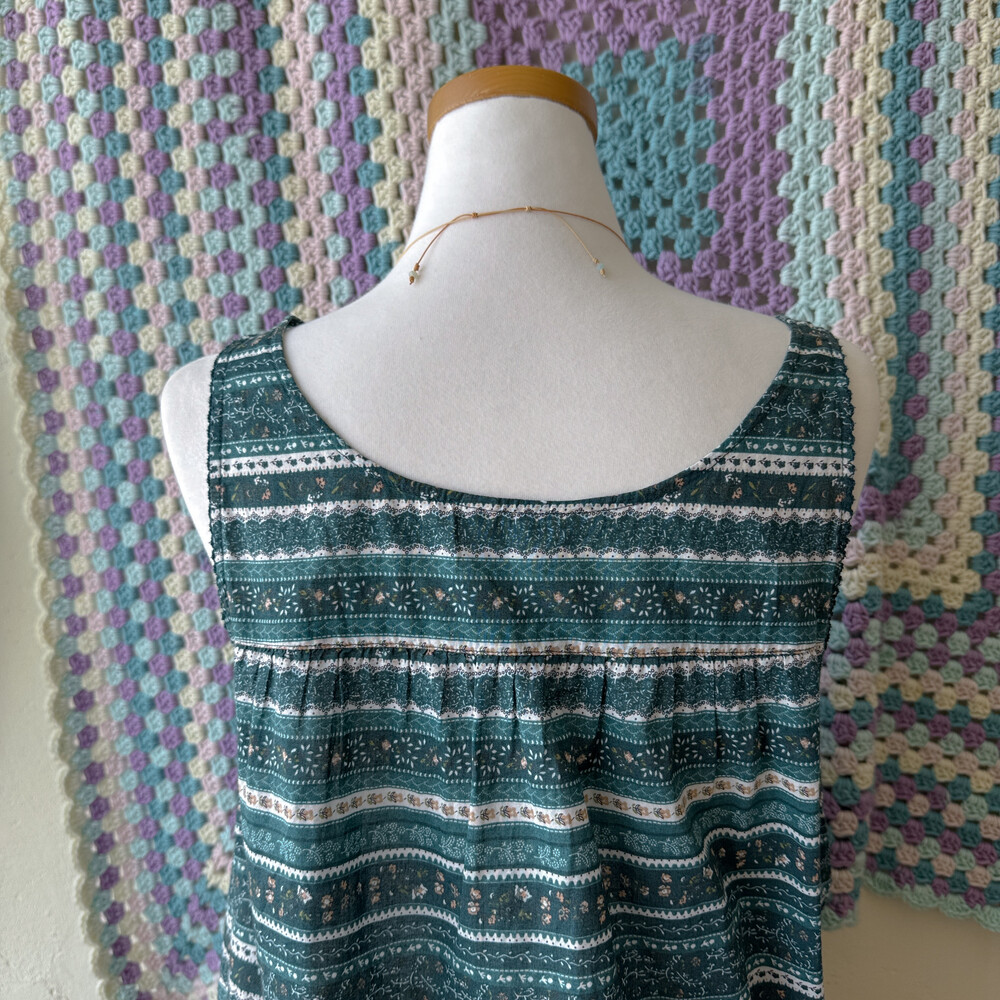sm2의 청록색감 패턴의 민소매 블라우스예요
