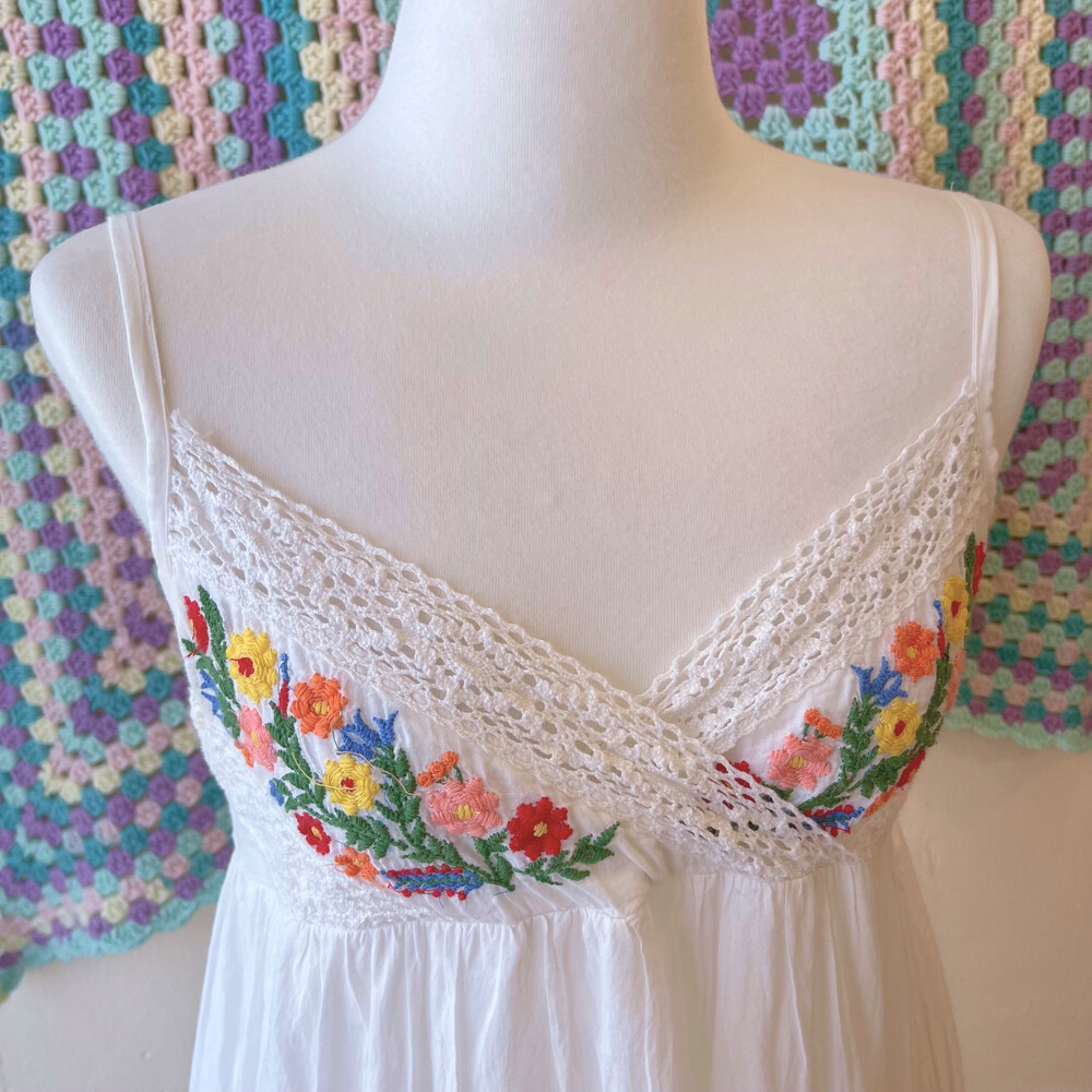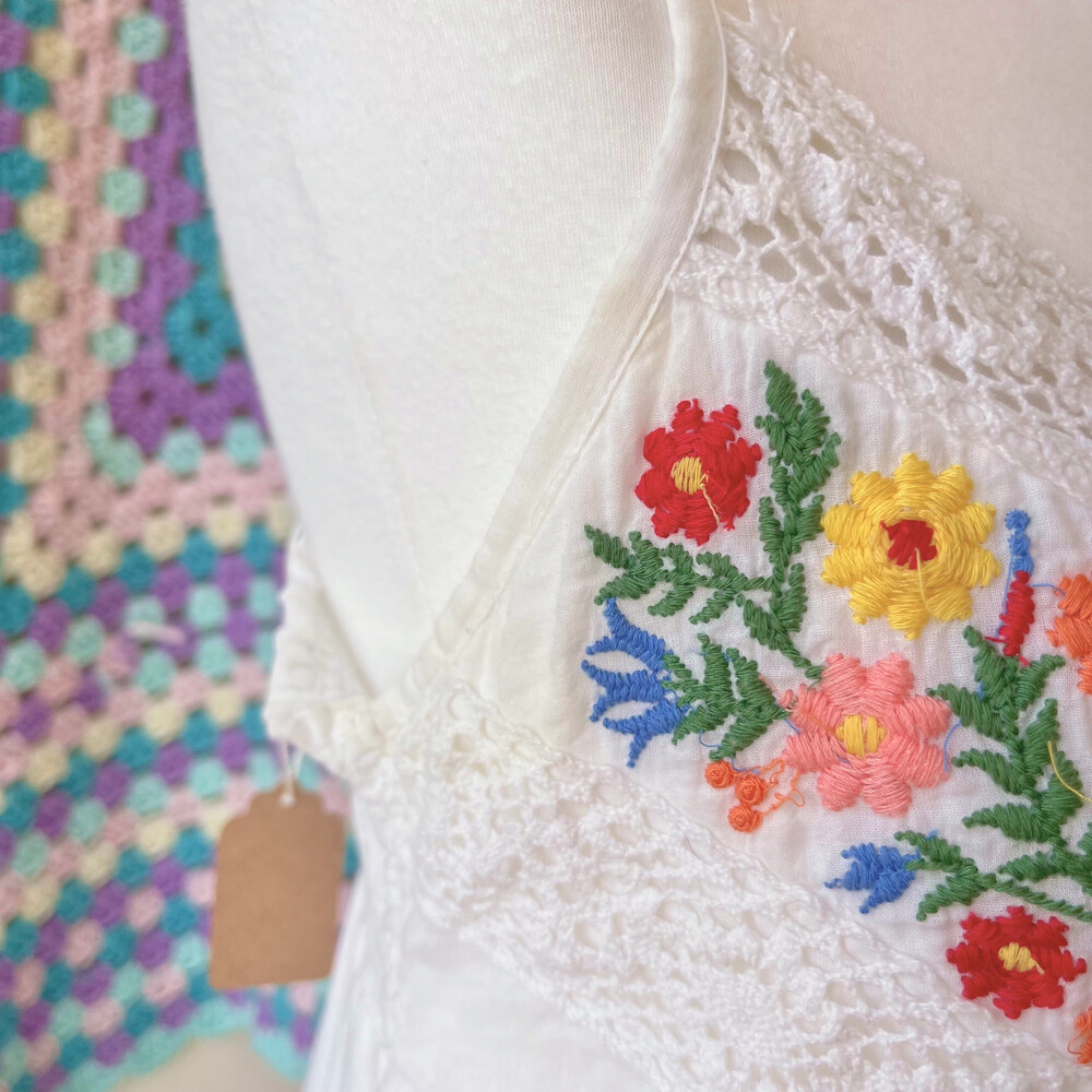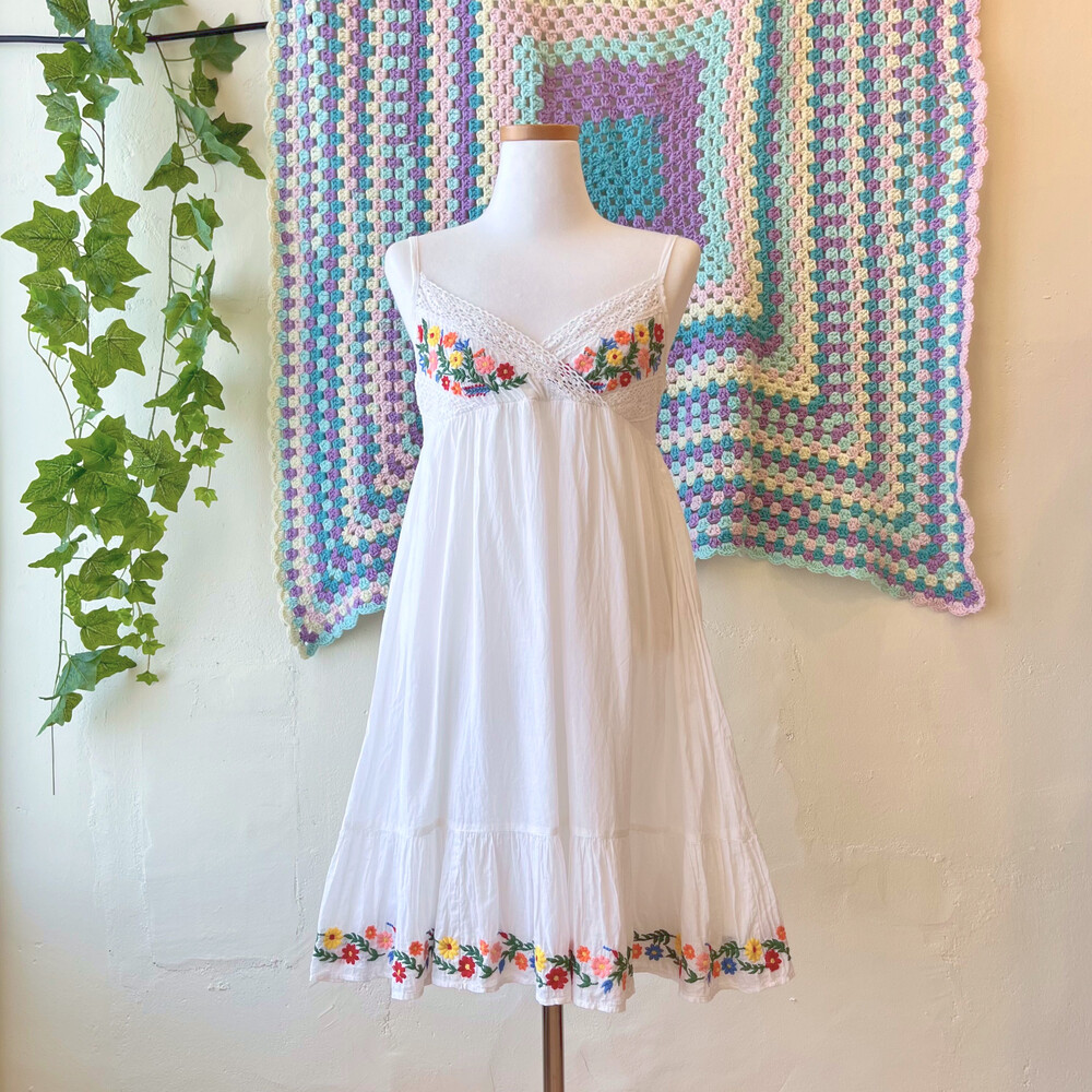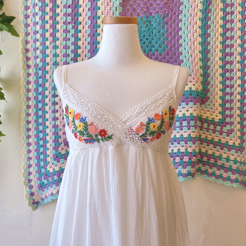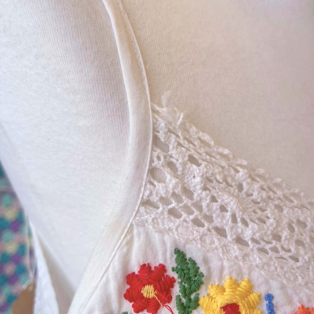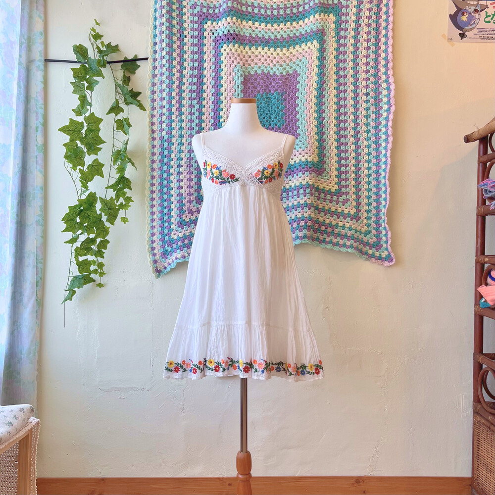 코튼 소재구요! 가슴과 밑단 자수가 너무나 귀여워요