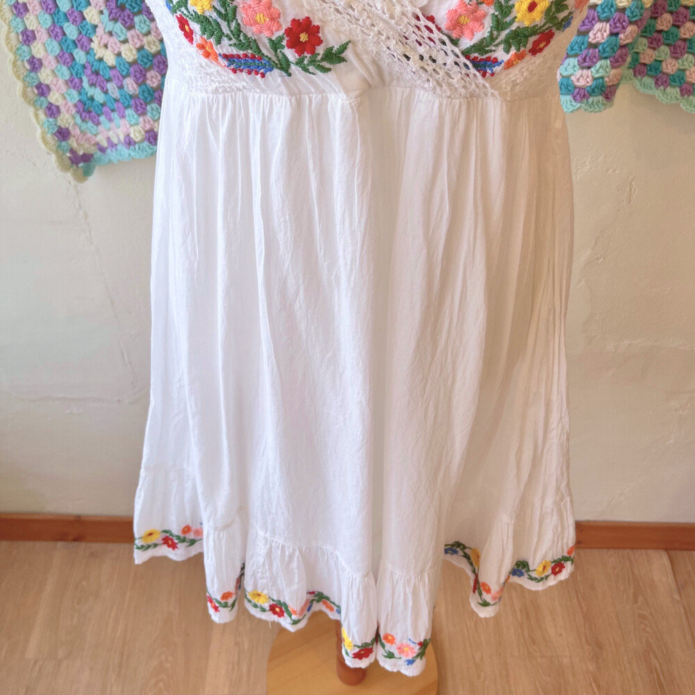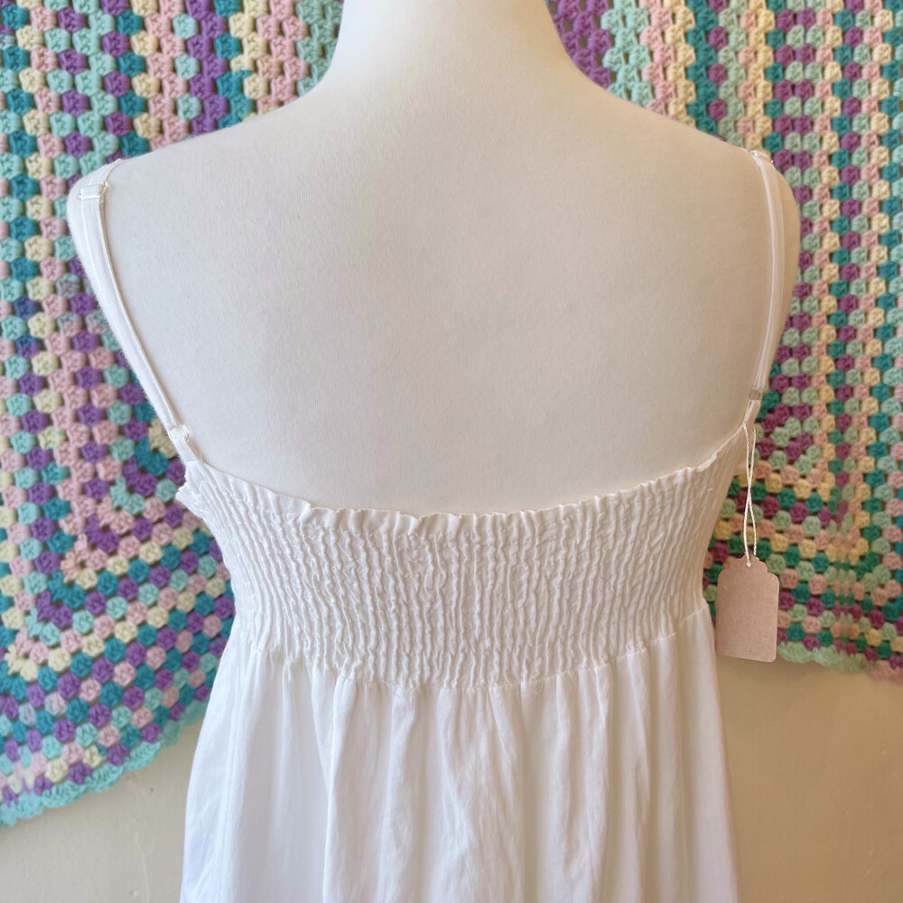 화이트 색감의 브이넥 자수 끈원피스예요