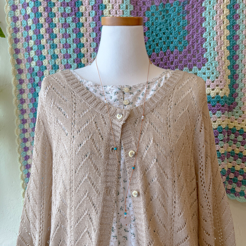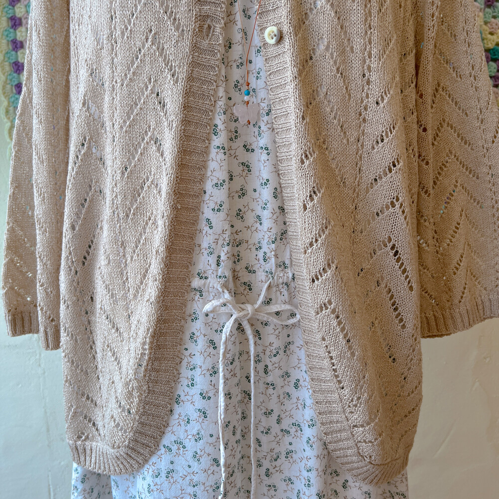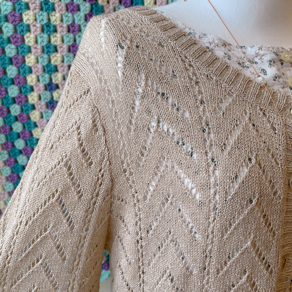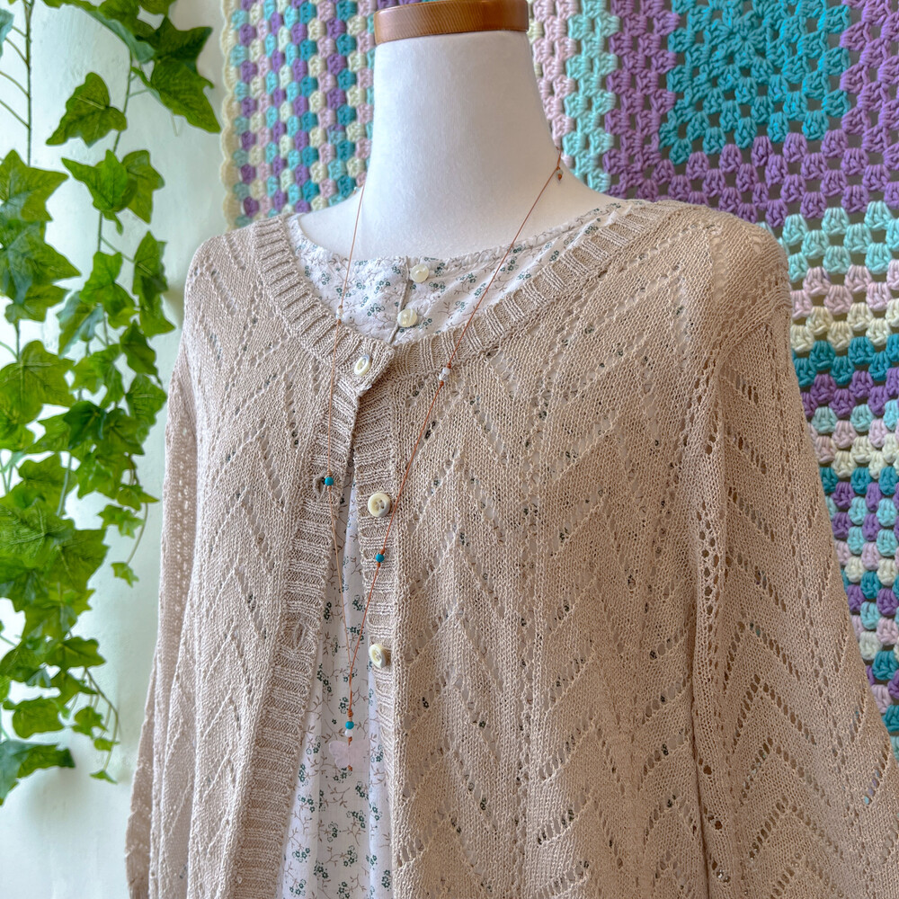베이지 색감의 펀칭 크로셰 가디건이에요