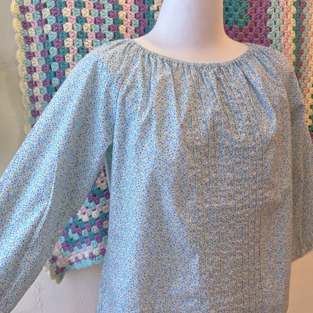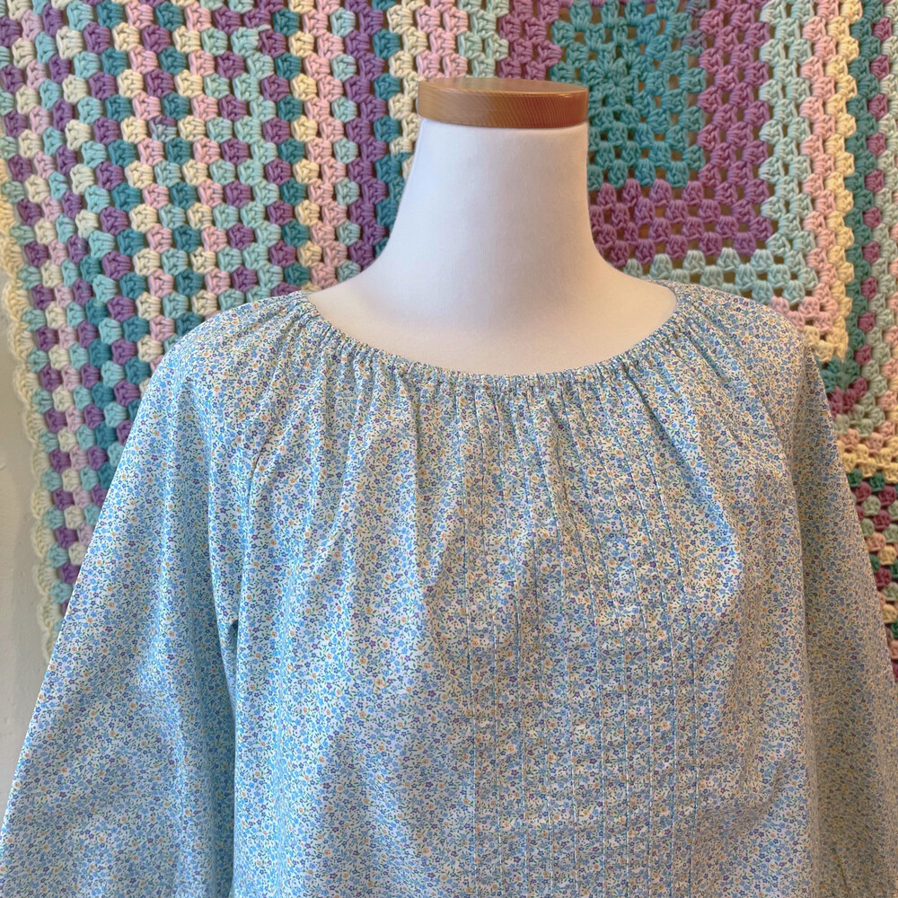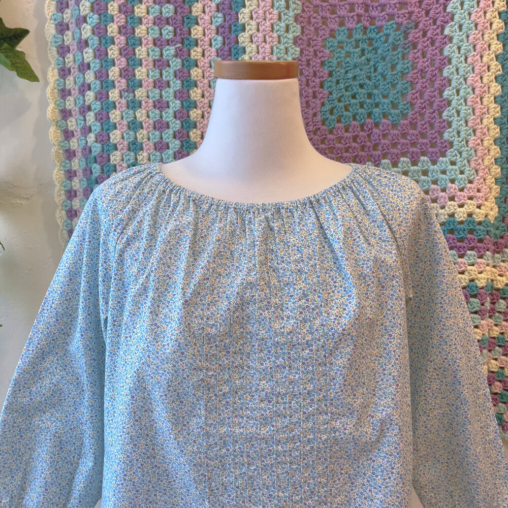 sky blue&purple mini flower pintuck bl