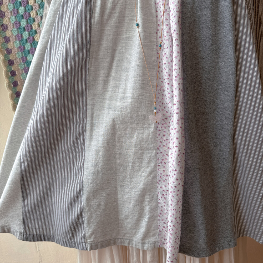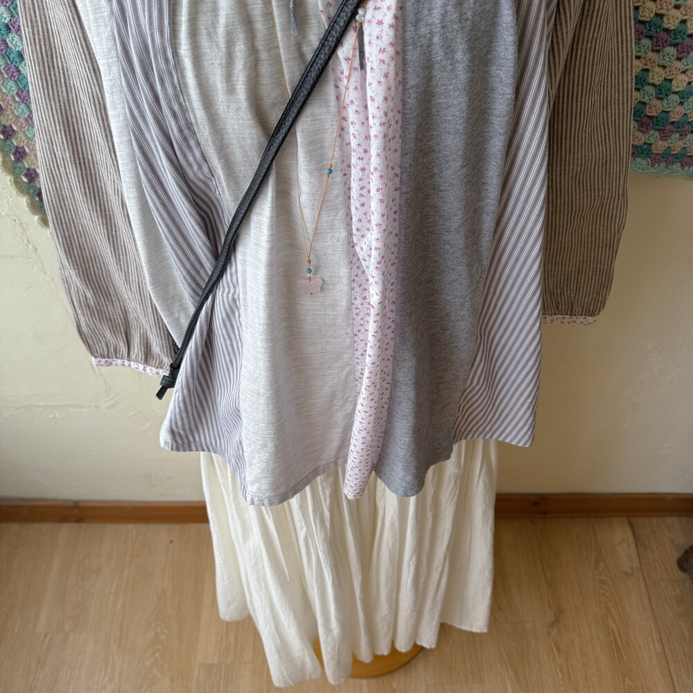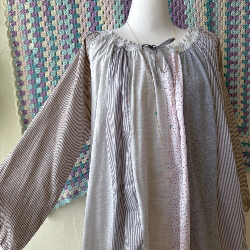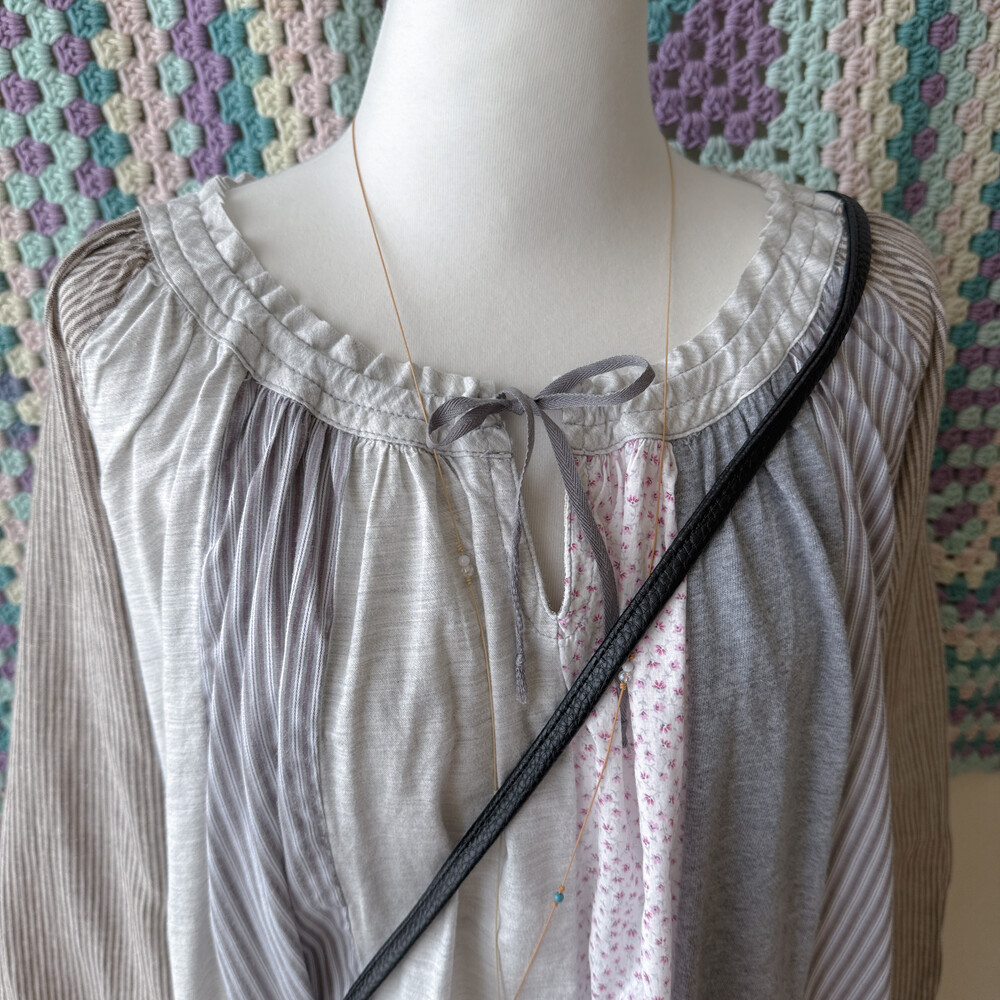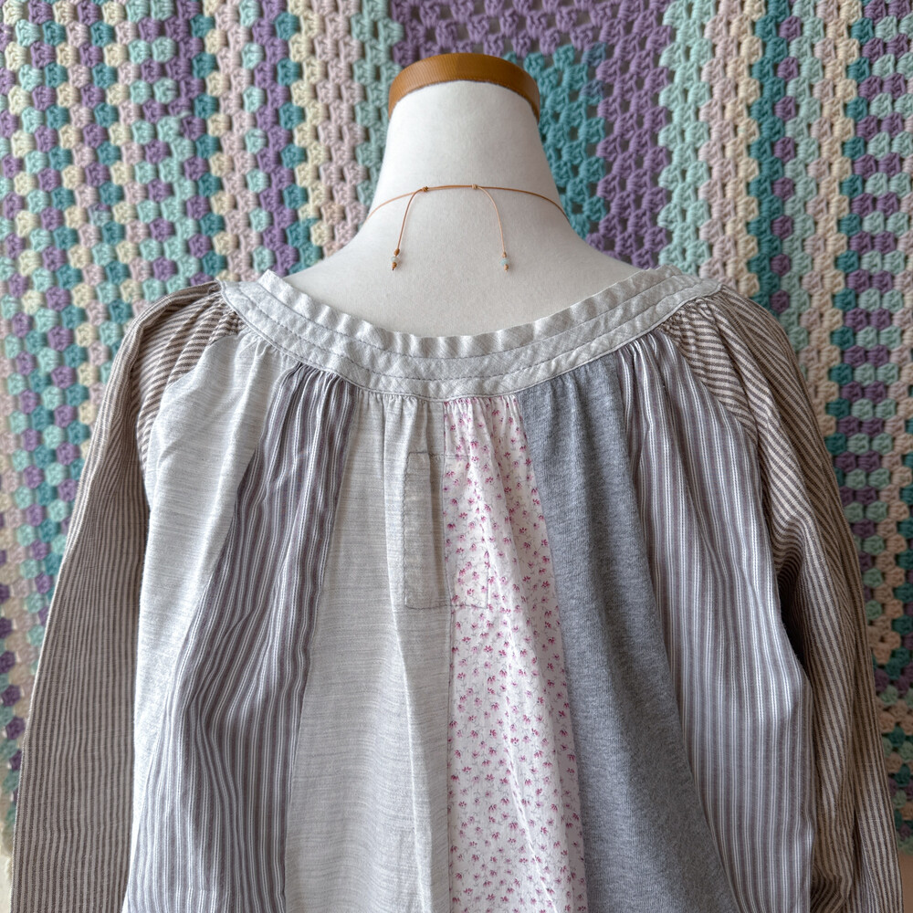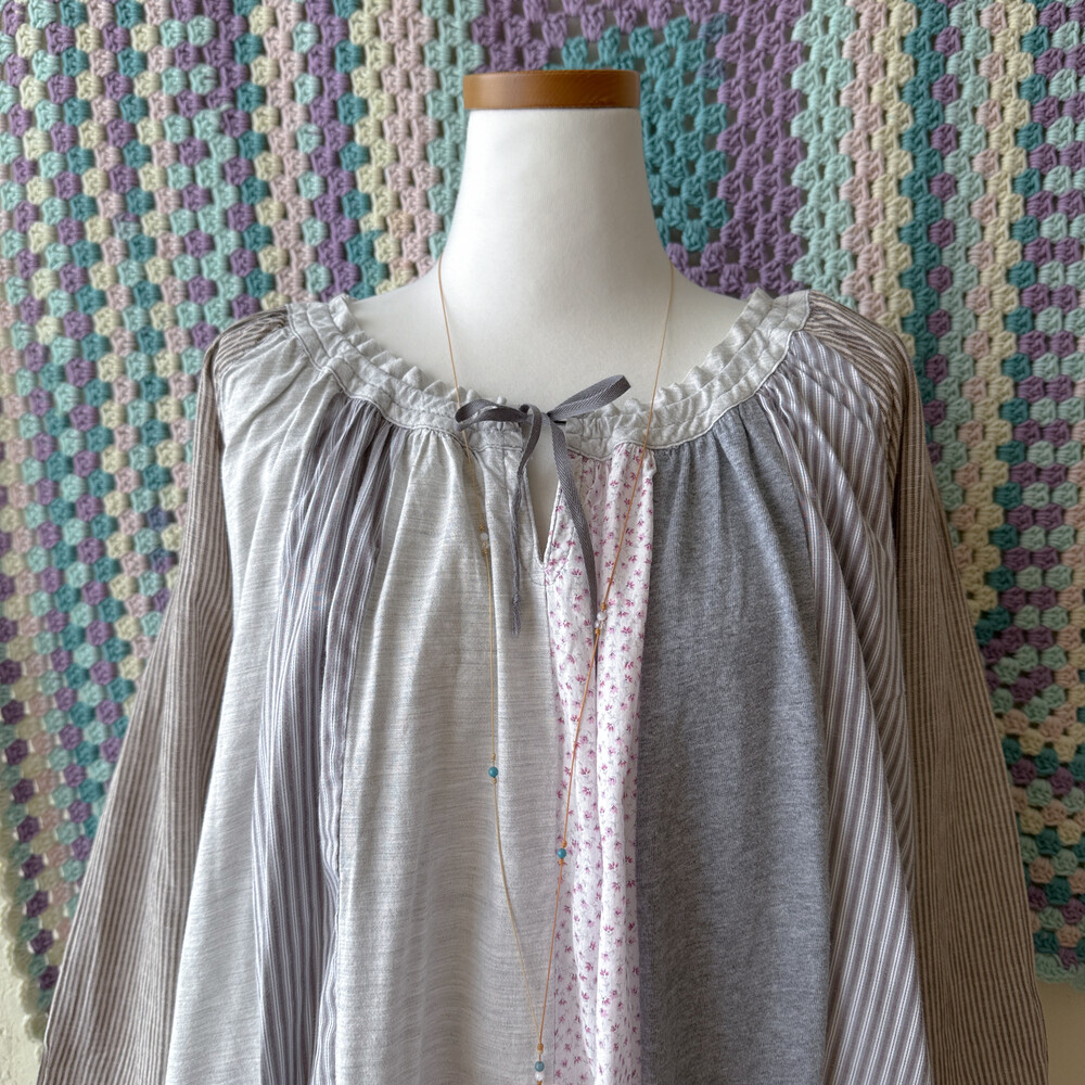 코지한 분위기의 세로 패치워크 블라우스예요