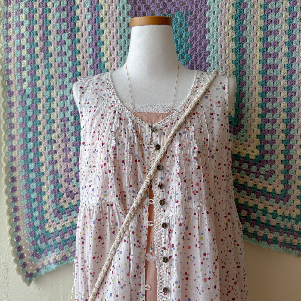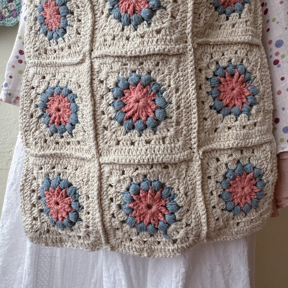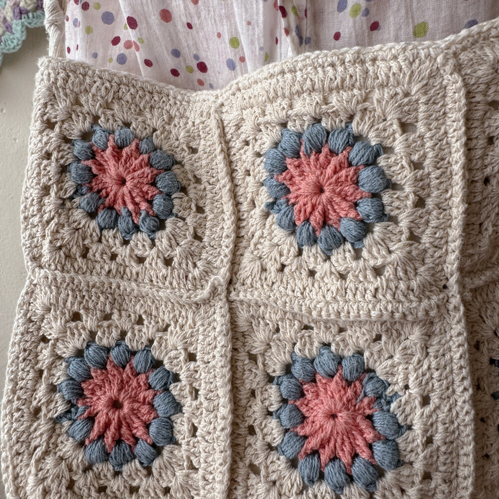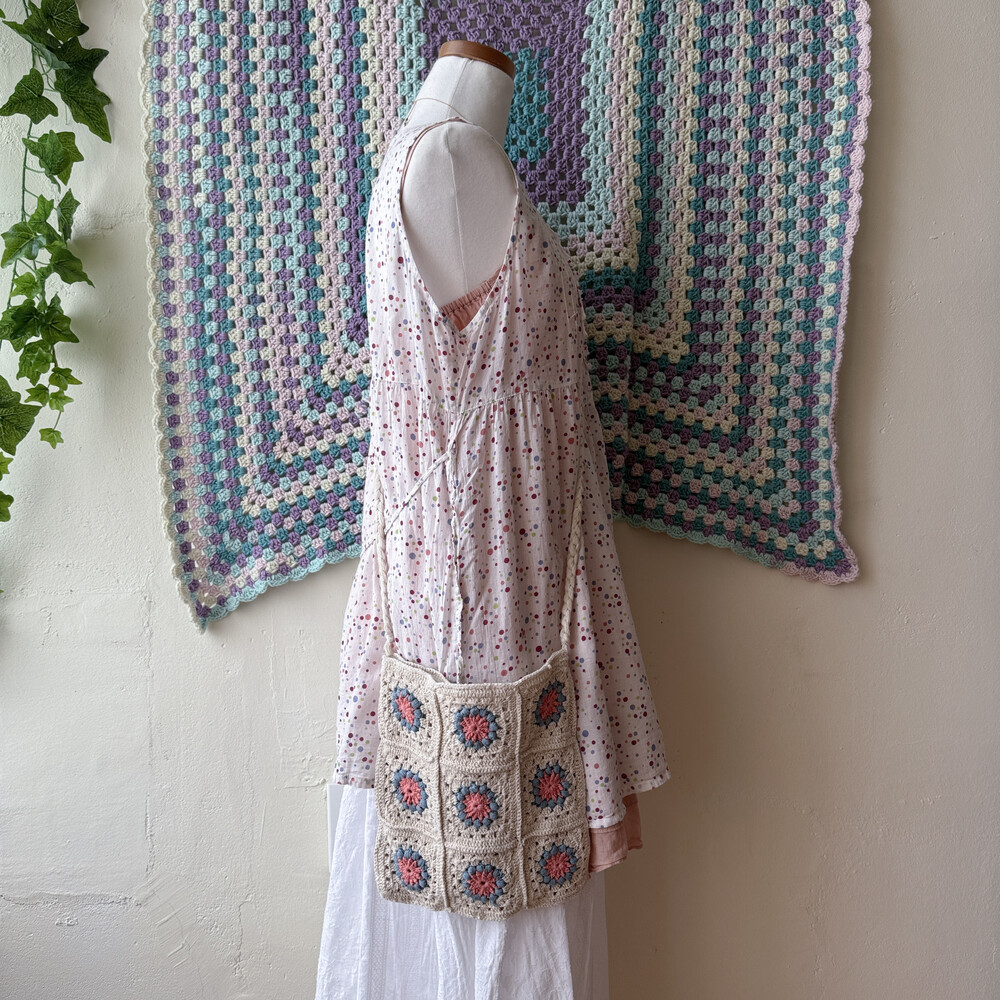 blue&pink flower granny square cross bag
