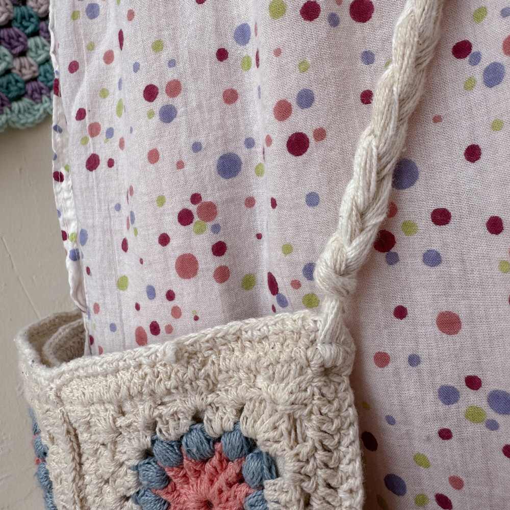 파스텔 색감의 그래니스퀘어 뜨개 크로스백이에요