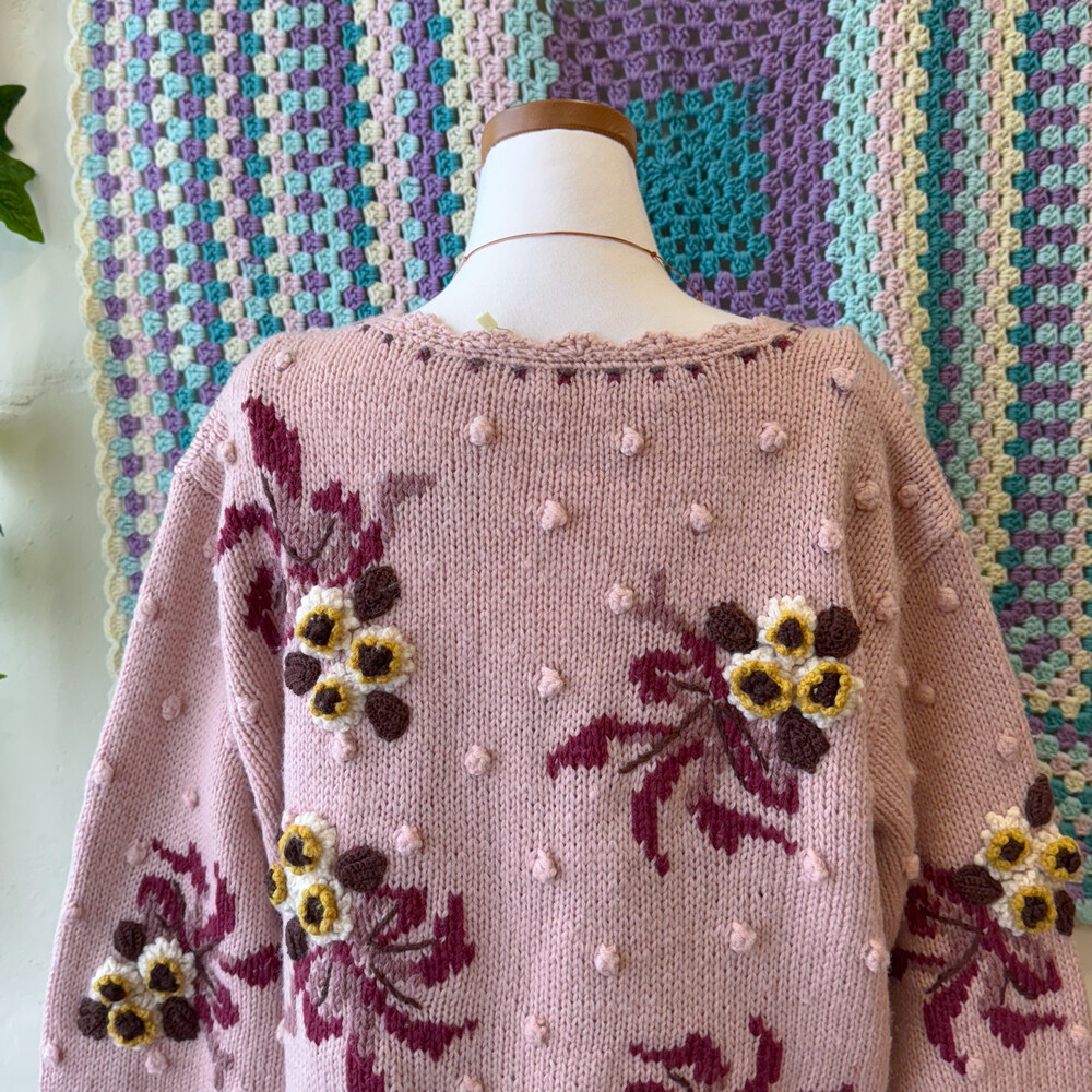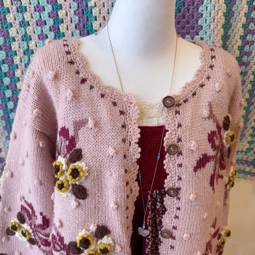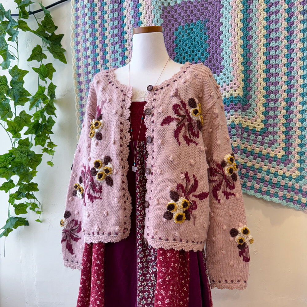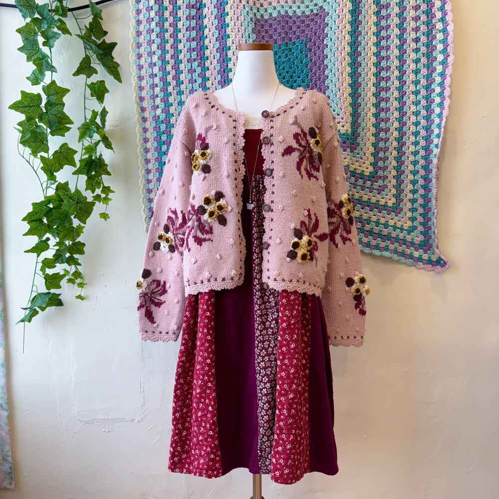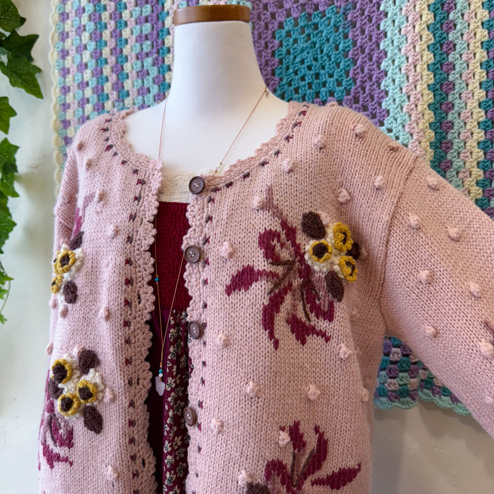 꽃모티브와 폼폼이 가득 들어가 있는 사랑스러운 가디건이에요
