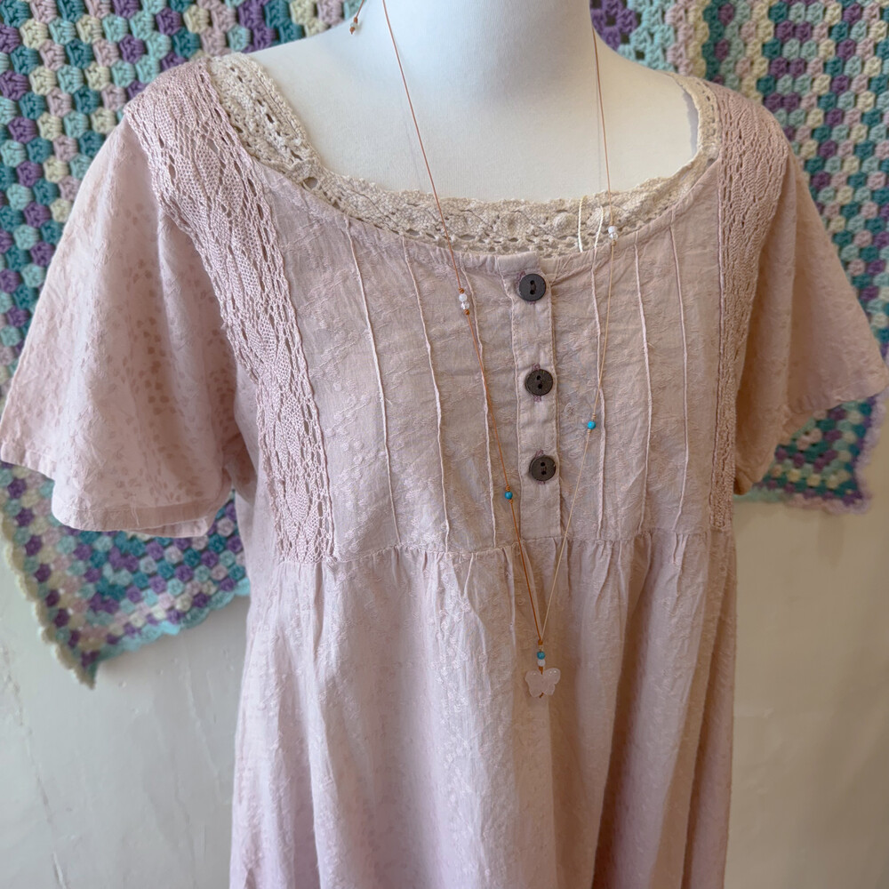 퍼플 그라데이션 디자인의 코튼 원피스예요