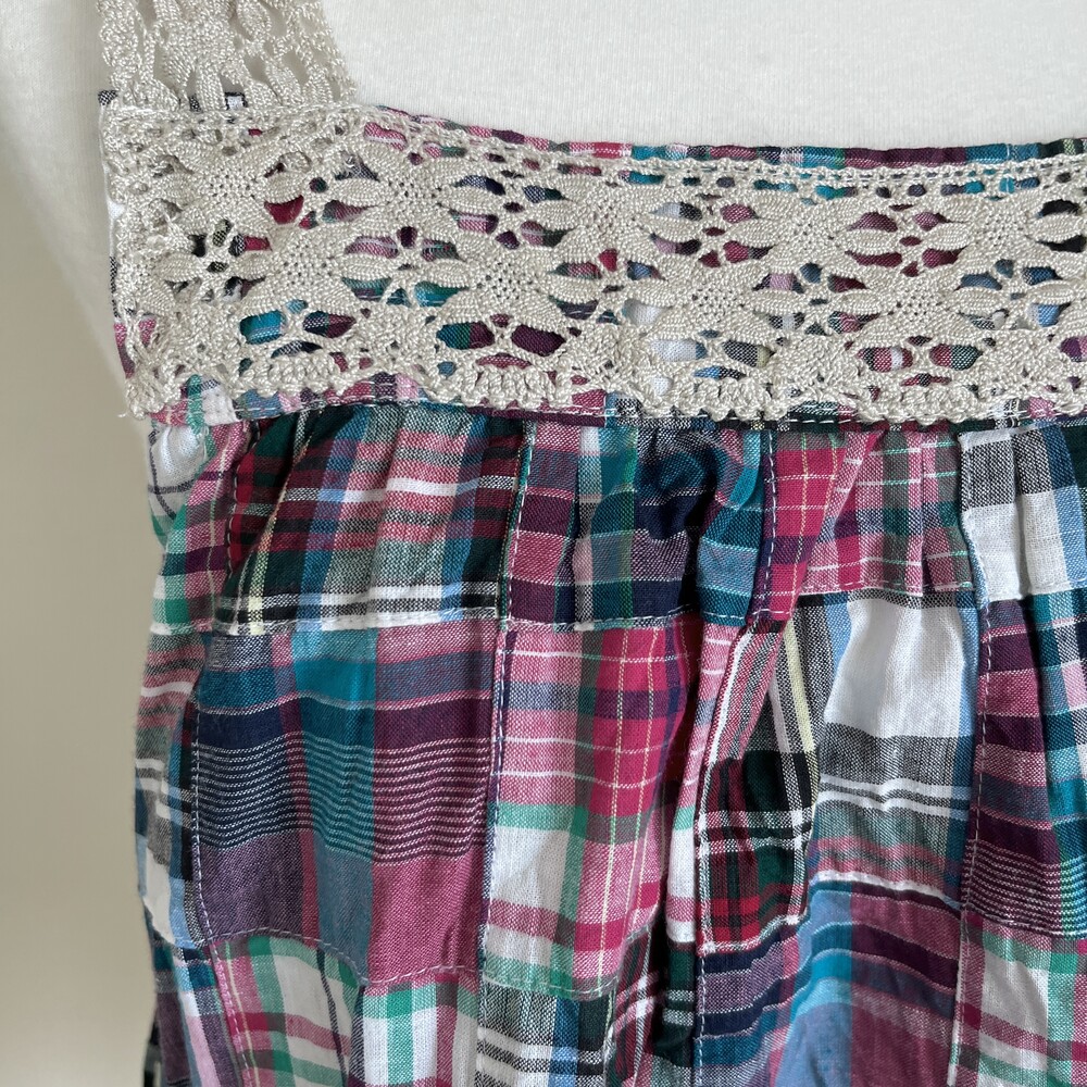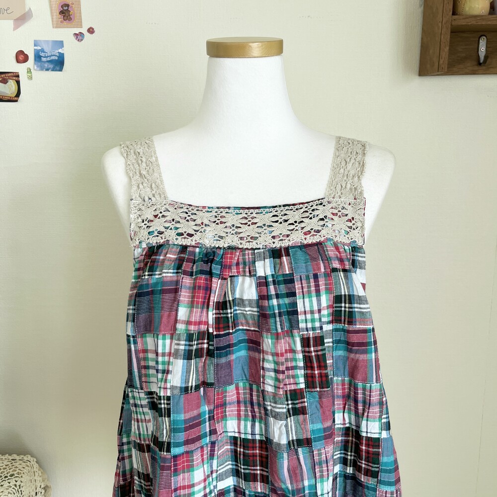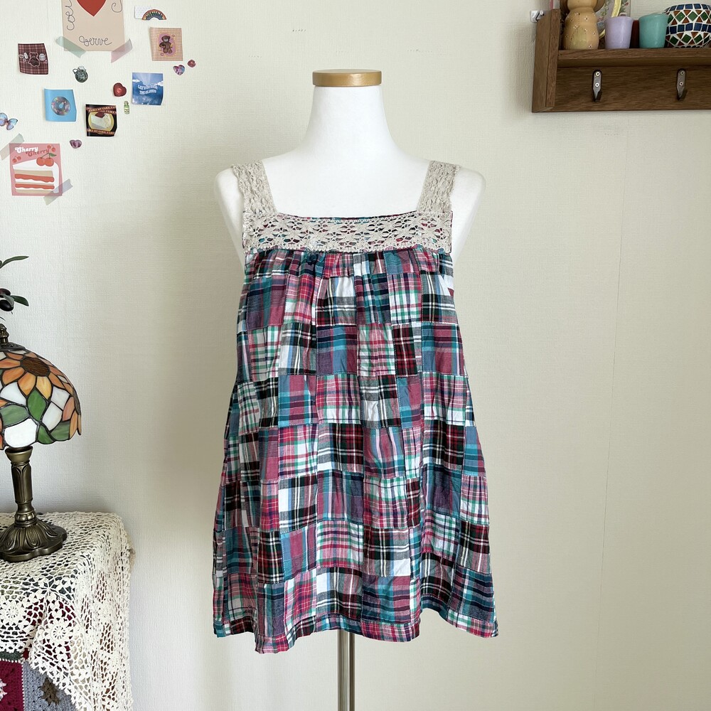 bluish green&pink check patch bl