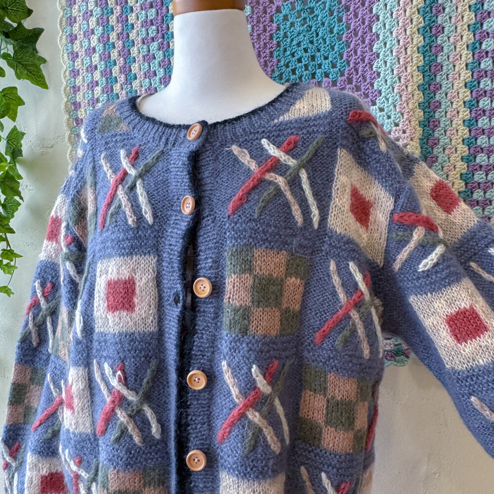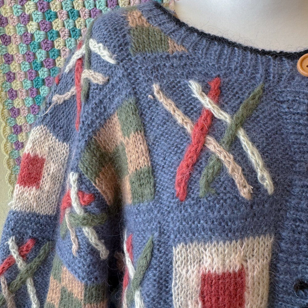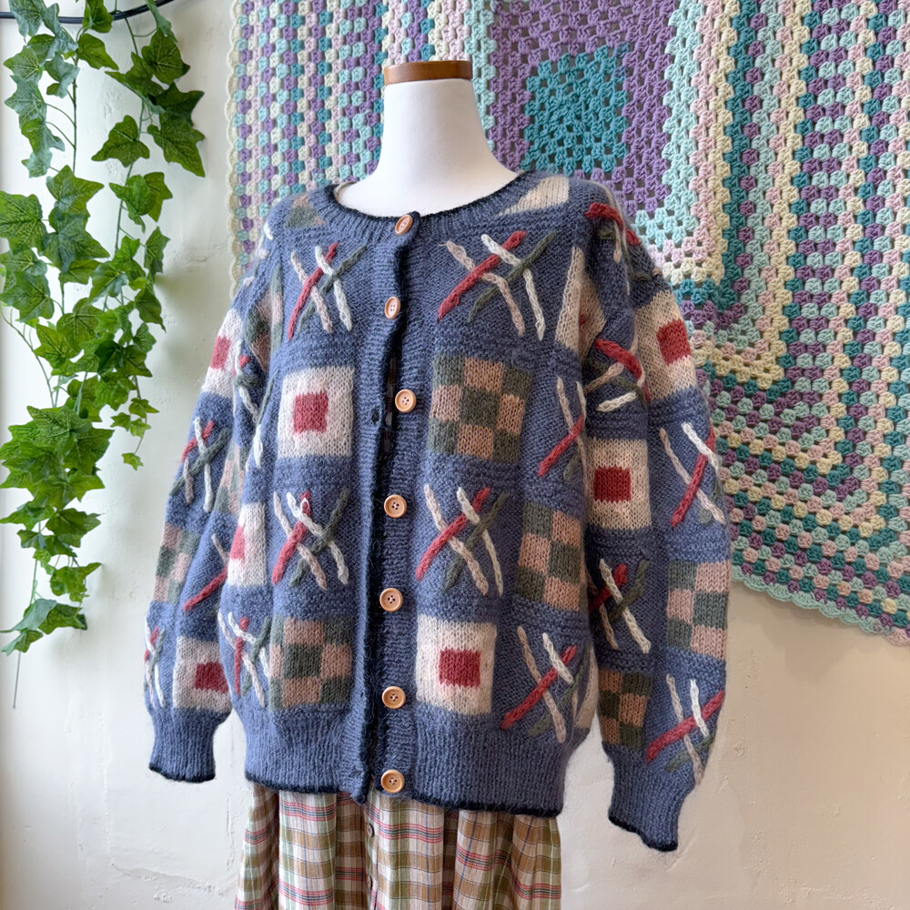 웜한 색감의 패턴들이 들어가 있는 사랑스러운 가디건이에요