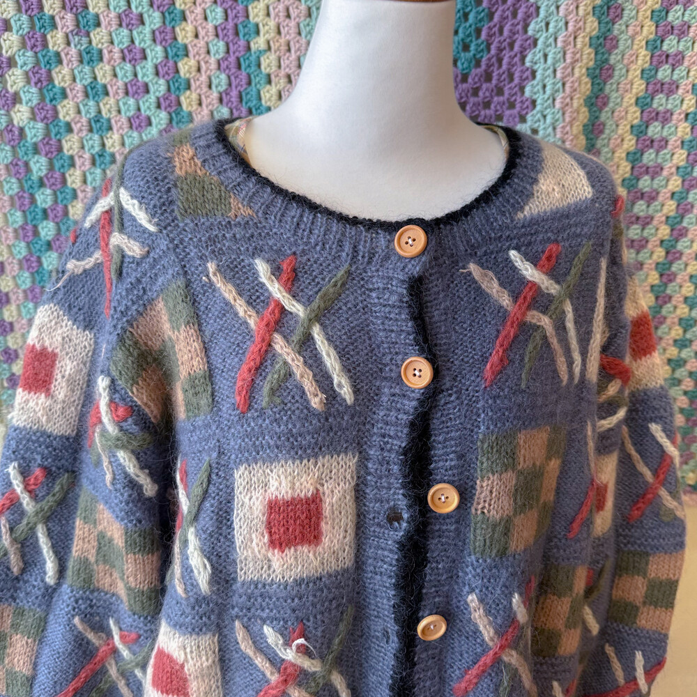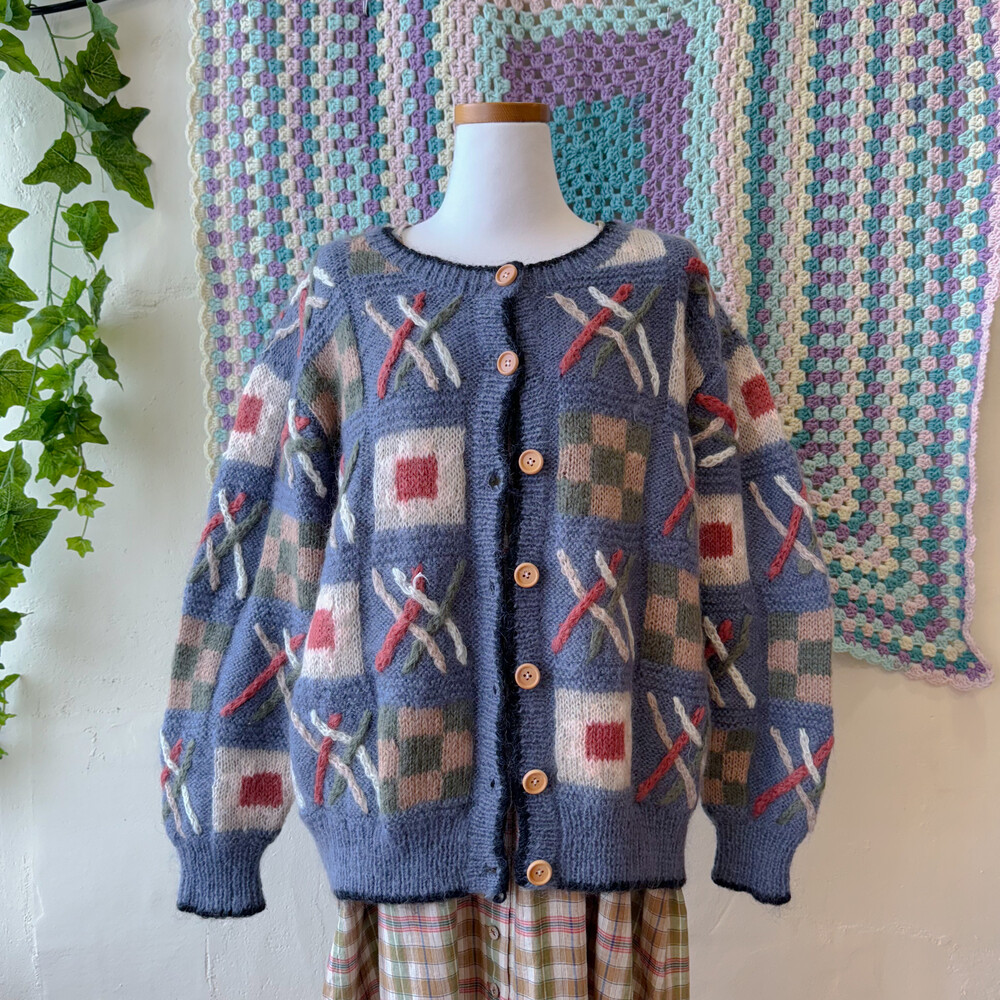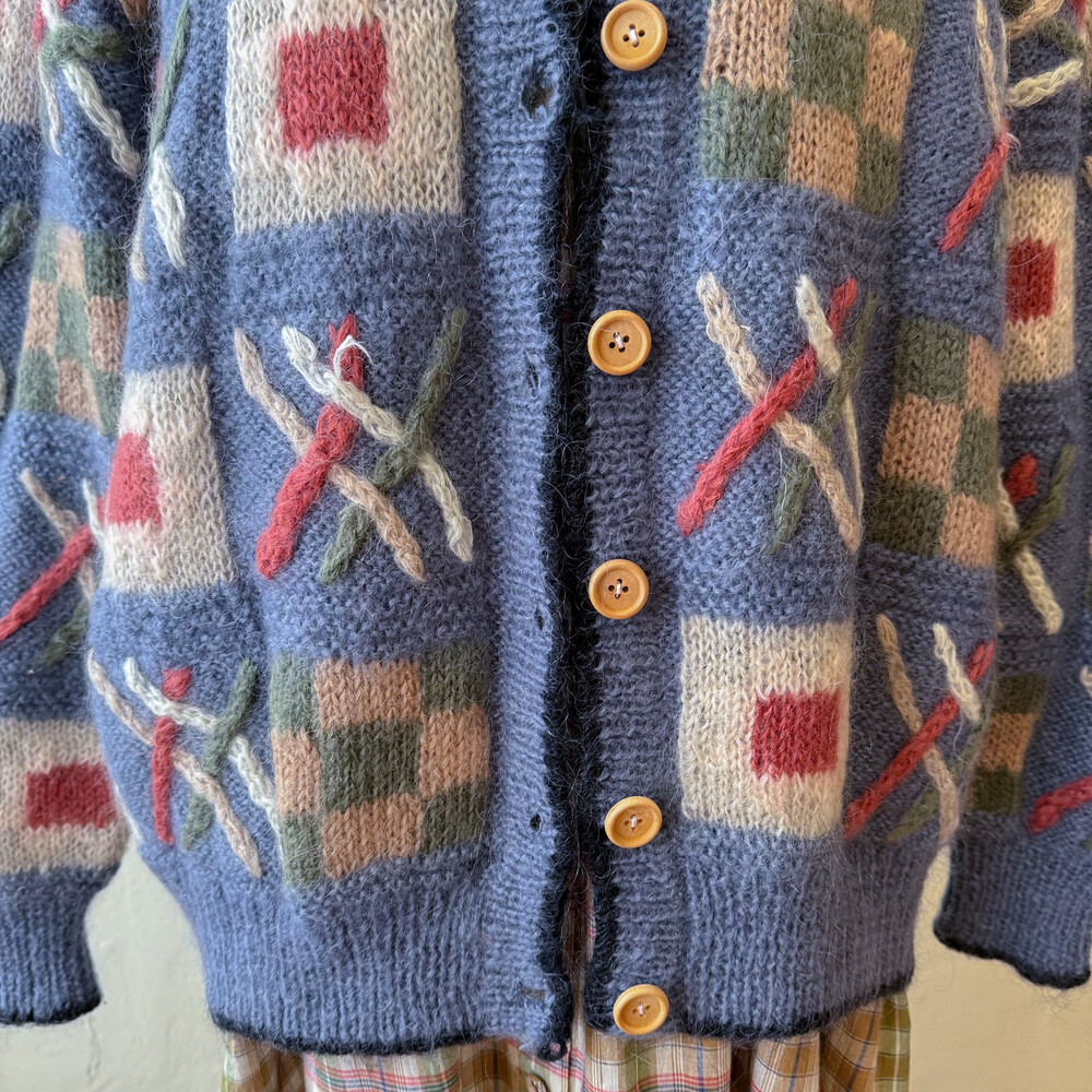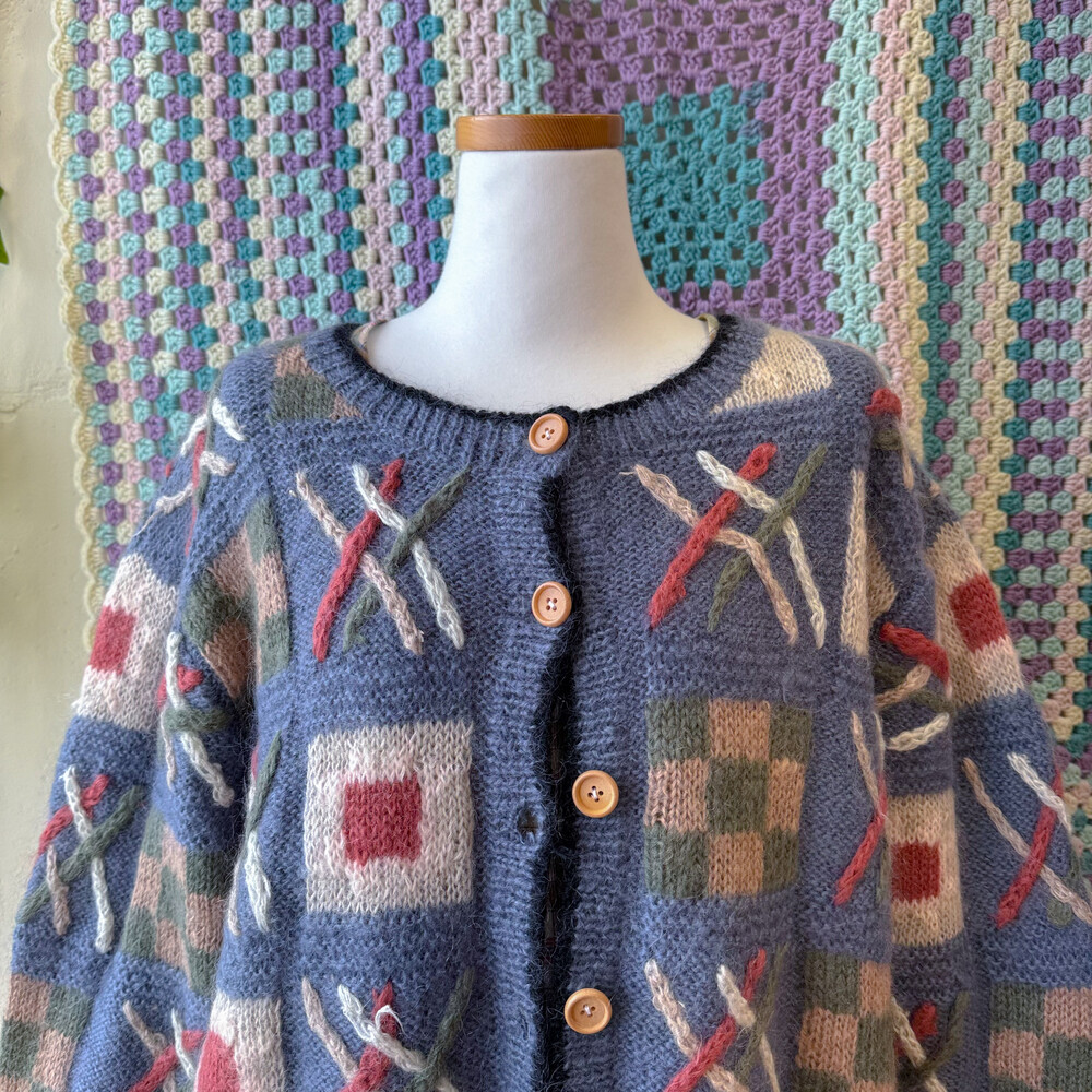 웜한 색감의 패턴들이 들어가 있는 사랑스러운 가디건이에요