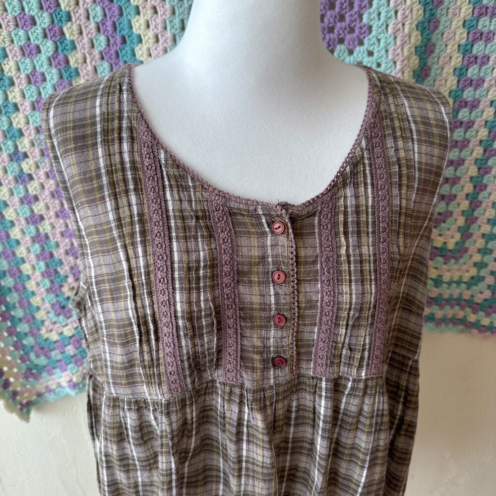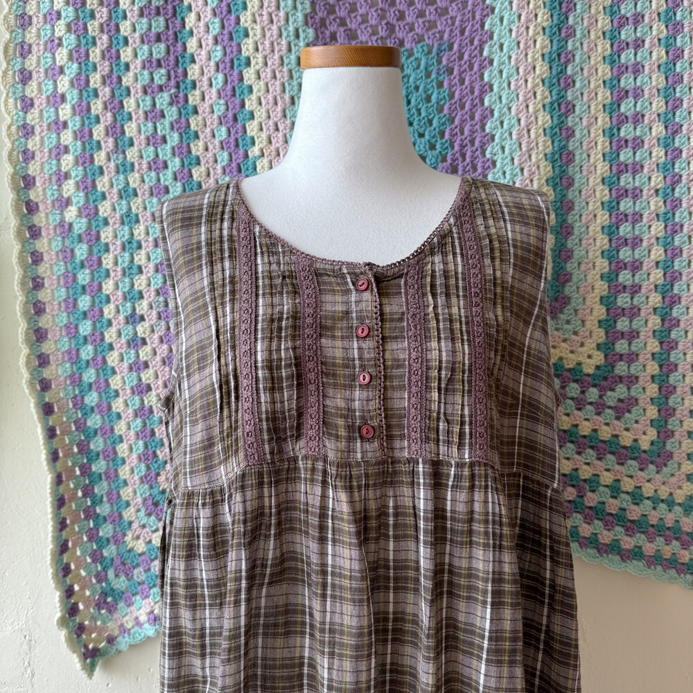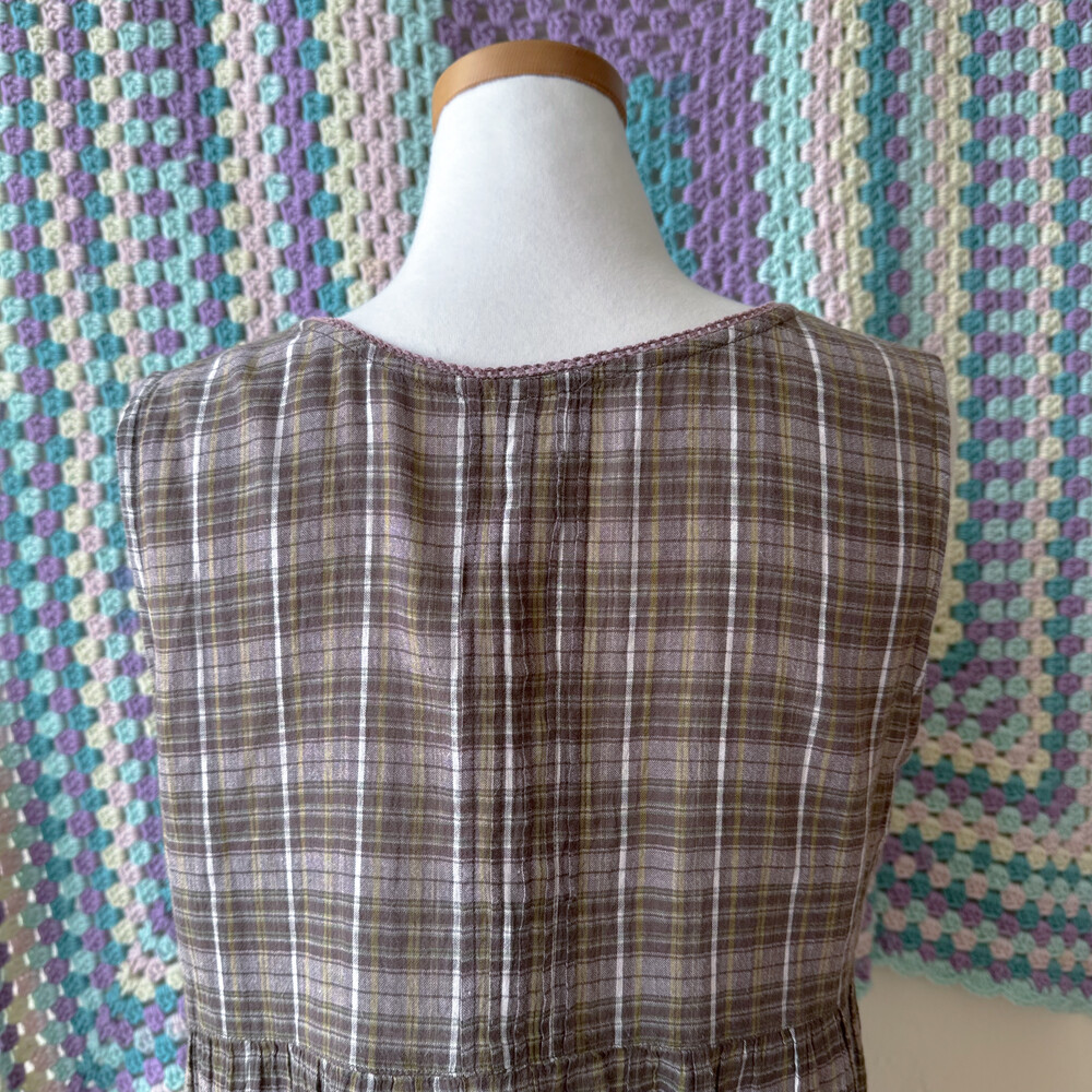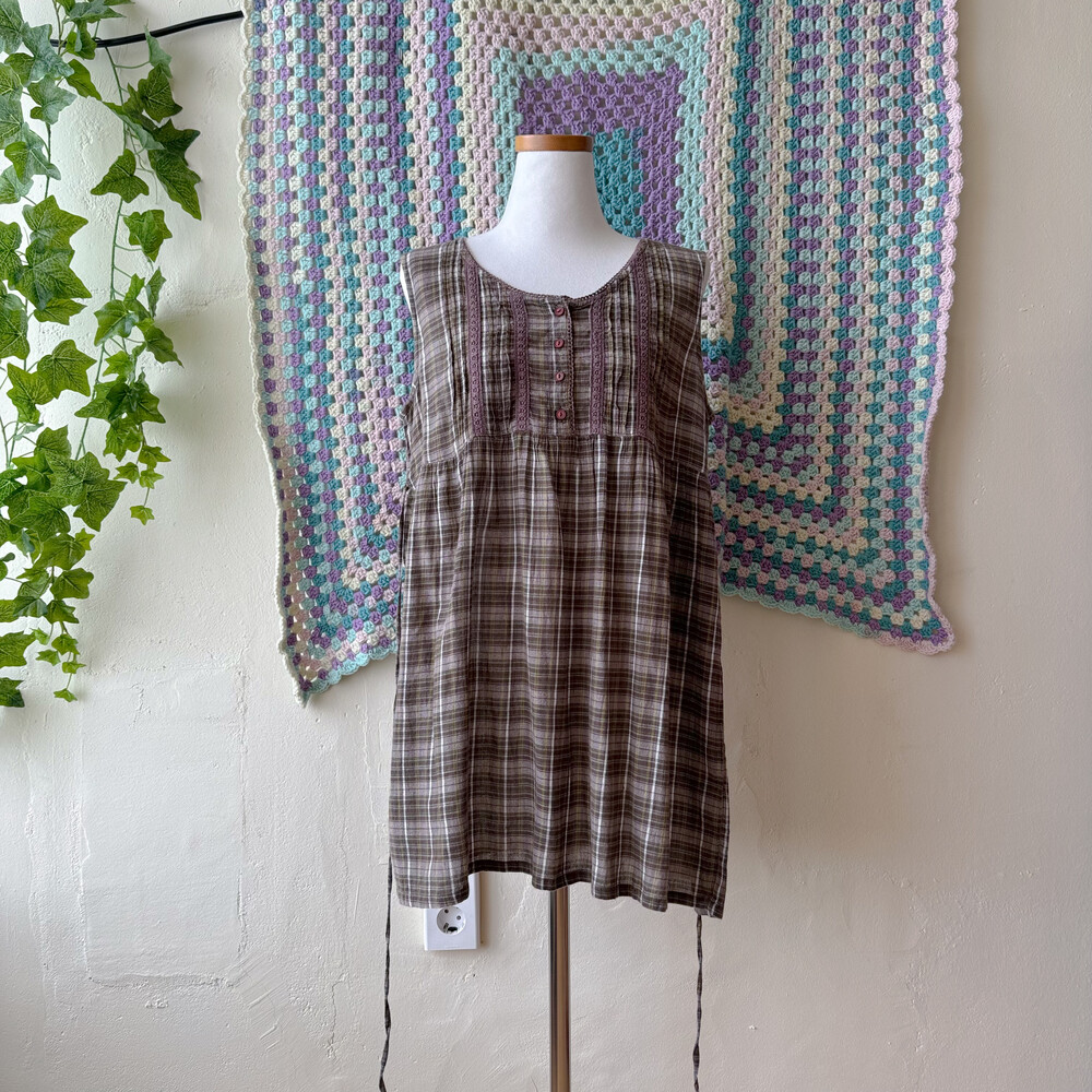 khaki&ash brown check sleeveless bl