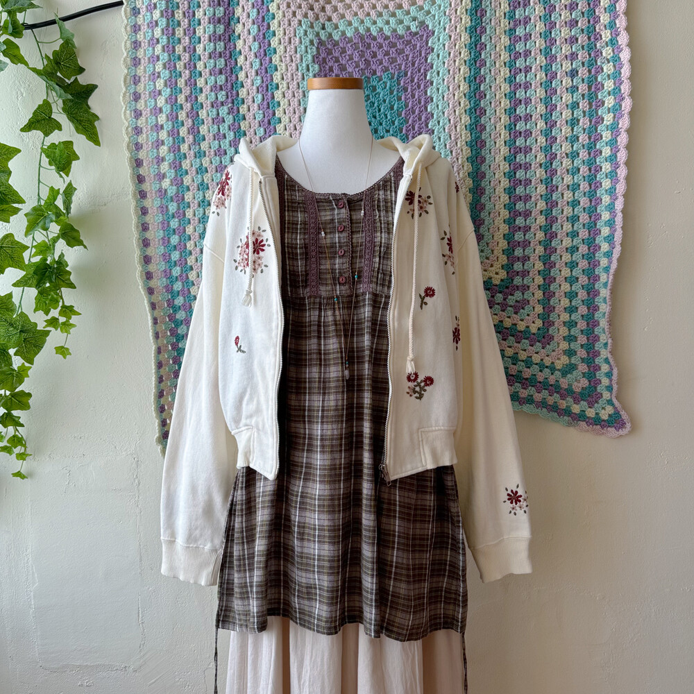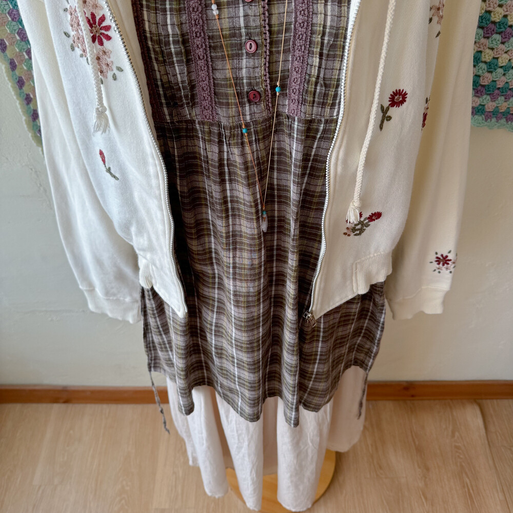 애쉬 브라운 색감 바탕에 브라운+카키색 체크와