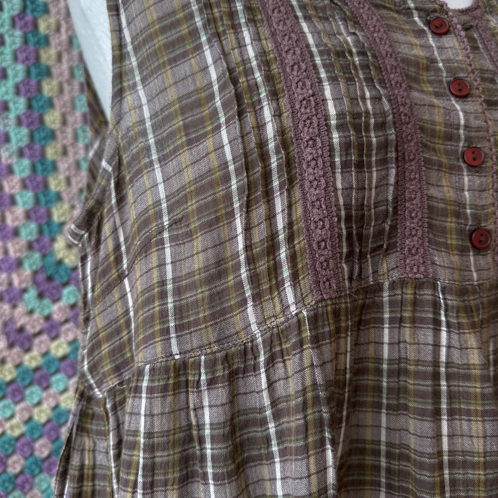 체크 패턴의 민소매 코튼 블라우스예요