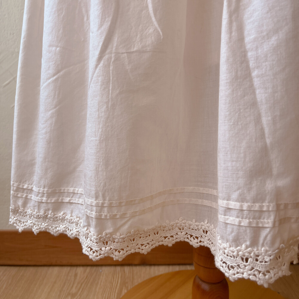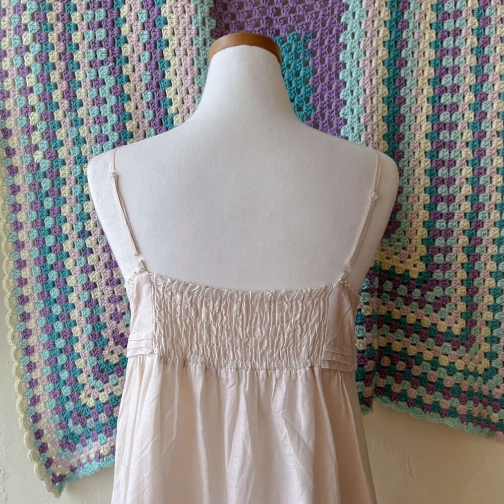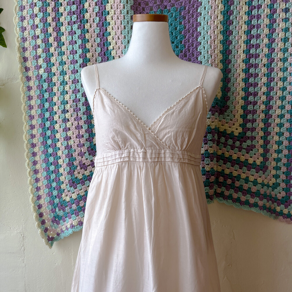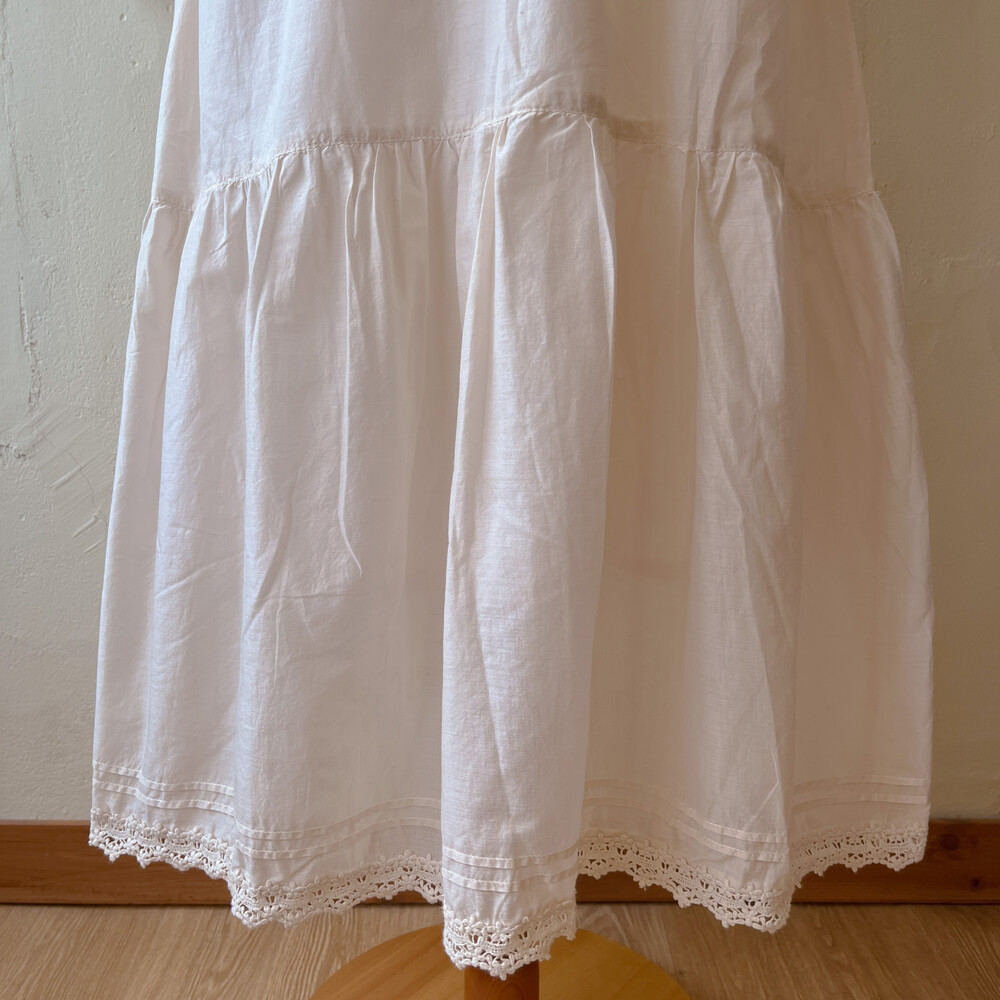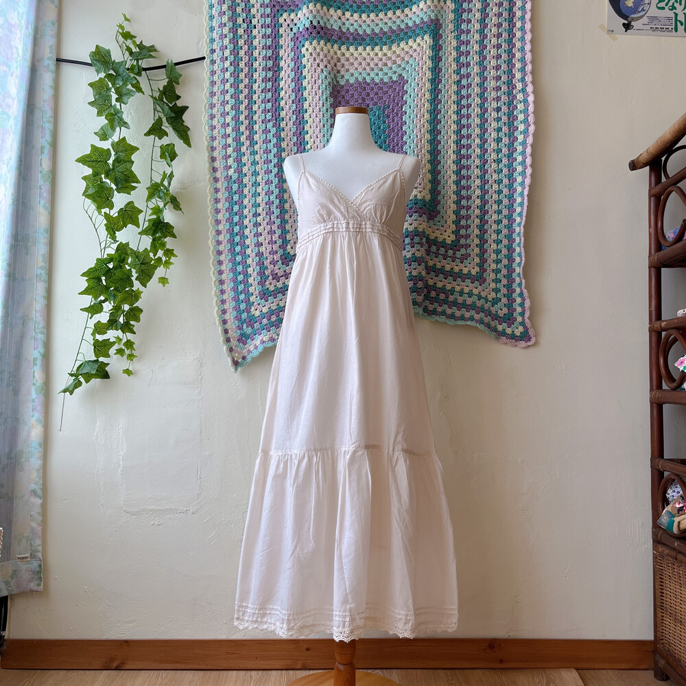 아이보리 색감의 브이넥 코튼 끈원피스예요